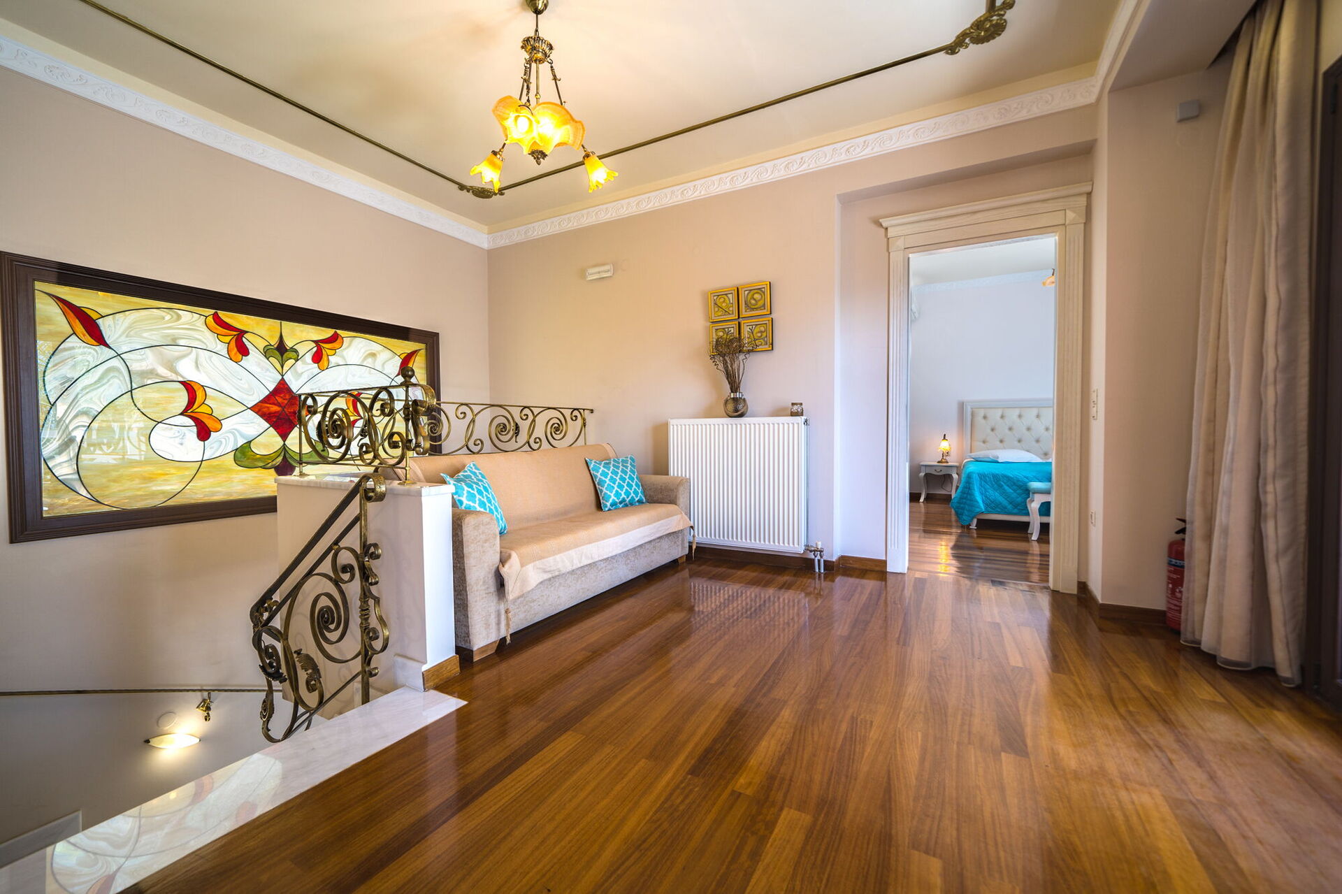 We were very pleased about our stay in Iro Royal Villa. It was super clean and beautifully decorated on the inside and a wonderful pool area and breathtaking views on the outside. It's a bit windy because it's higher up on the mountainside and you will need a car. Supermarkets and restaurants are all within 10 min. drive. There was a nice welcome basket with different foods and drinks. The hosts were very nice and helpful and very responsive. We really highly recommend this place. It's truly a beautiful villa.
