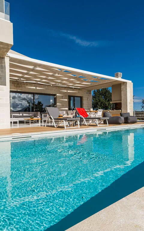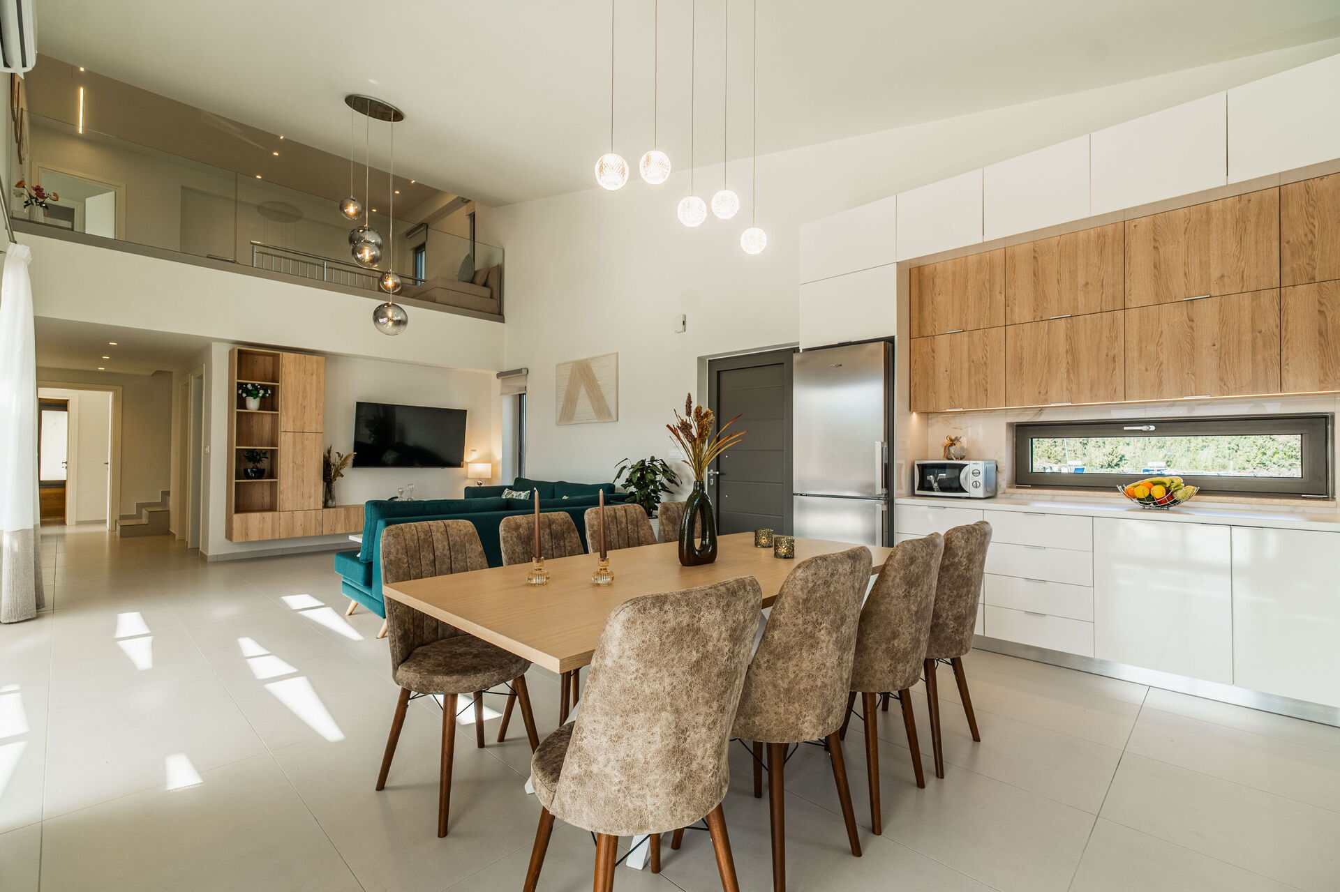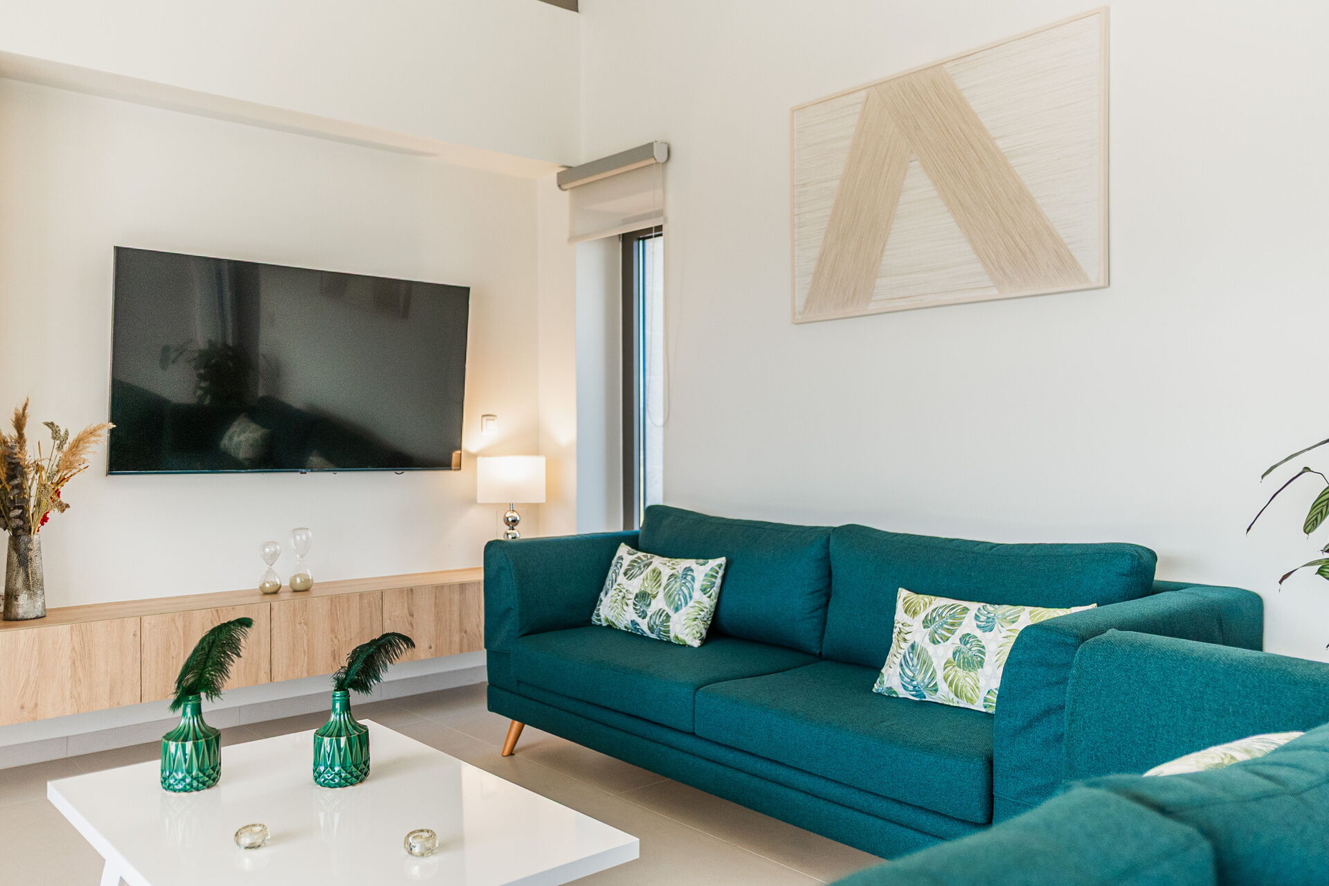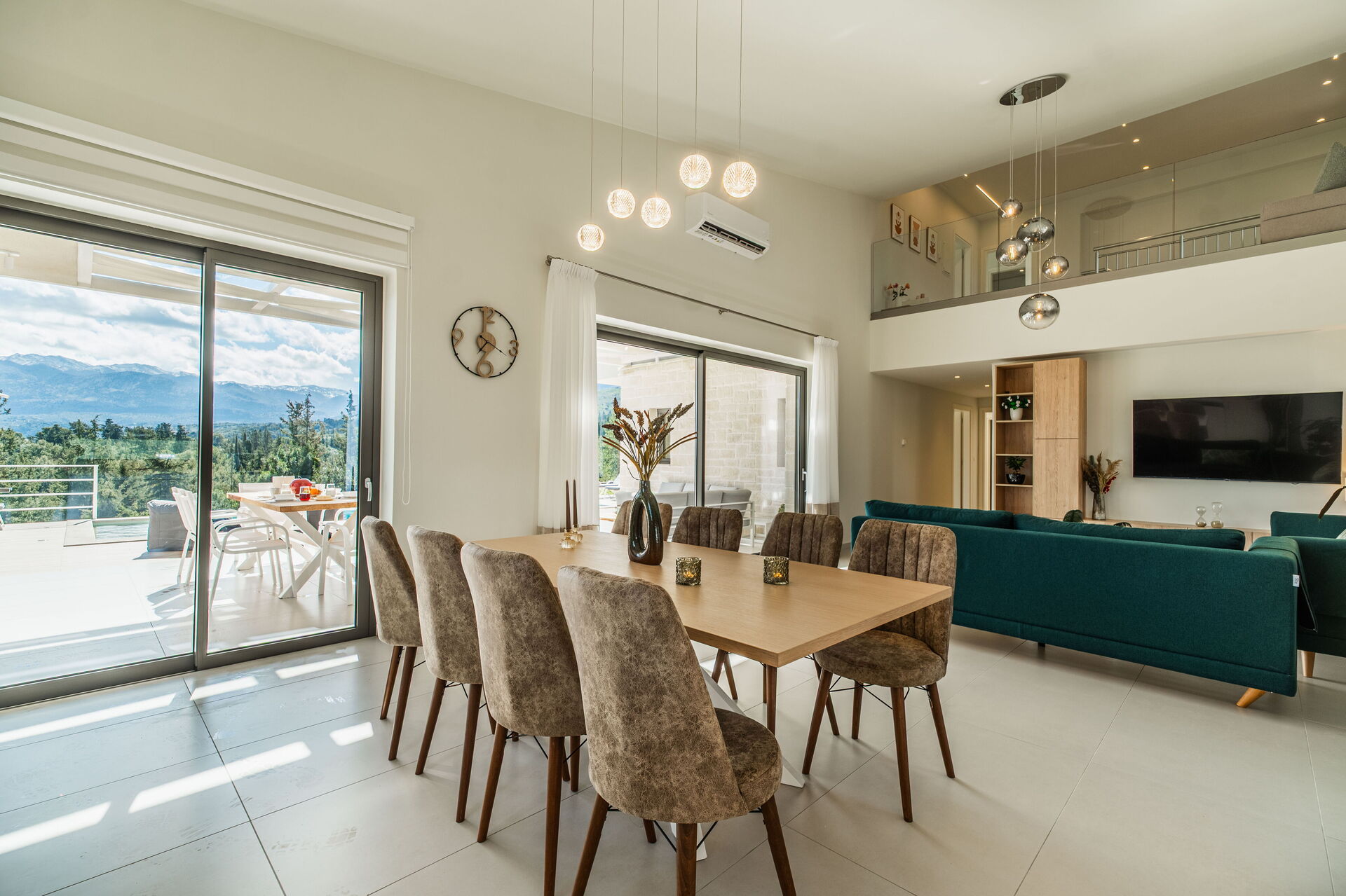 Huset har et innbydende interiør med lyse flater, 4 soverom, en sovesofa, og har plass til 8/10 personer. På eiendommen har gjestene full tilgang til en nydelig utendørs spiseplass og et stort basseng med panoramautsikt over havet og landskapet rundt.