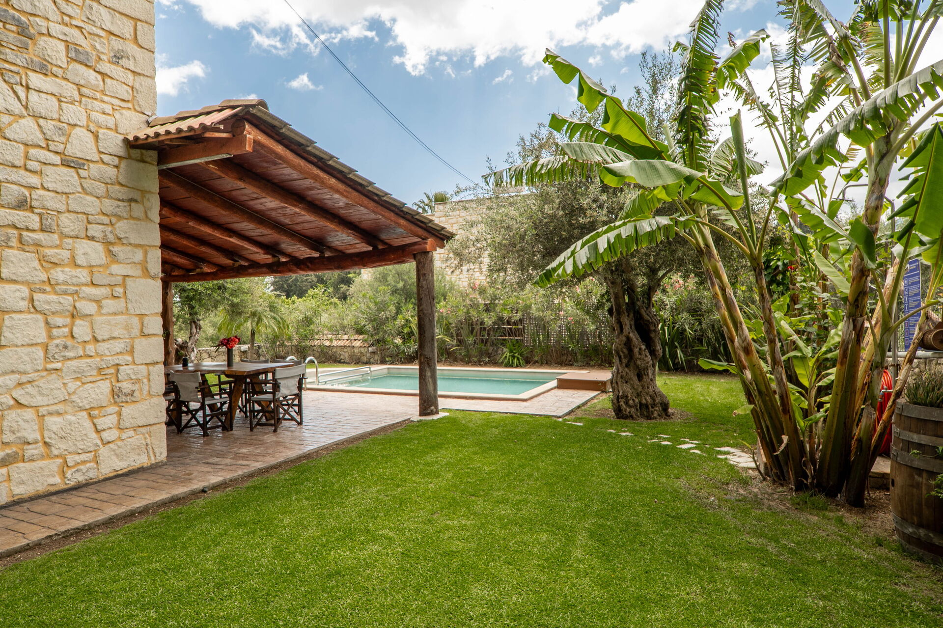 The hosts were very friendly and responsive. Hospitality was great and the cleaning ladies did a very thurough job. The pool was being kept clean during our stay and the property is obviously well cared for and very very charming. There are 2 similar villa's in relative close proximity to each other but the layout ensures that there is a lot of privacy and you hardly notice other occupants. The kitchen is very well utilised, also we made good use of the outdoor kitchen area with an excellent barbeque and a pizza oven! The area is very quiet, the only sounds that surprised us were from a flock of goats that passed by behind the villa once. Getting to the more touristy areas requires some transportation, but the first shops and bars/restaurants in Vryses are doable by foot. All in all we had a great stay (2 old and 3 young adults), this property and this host is highly recommended.