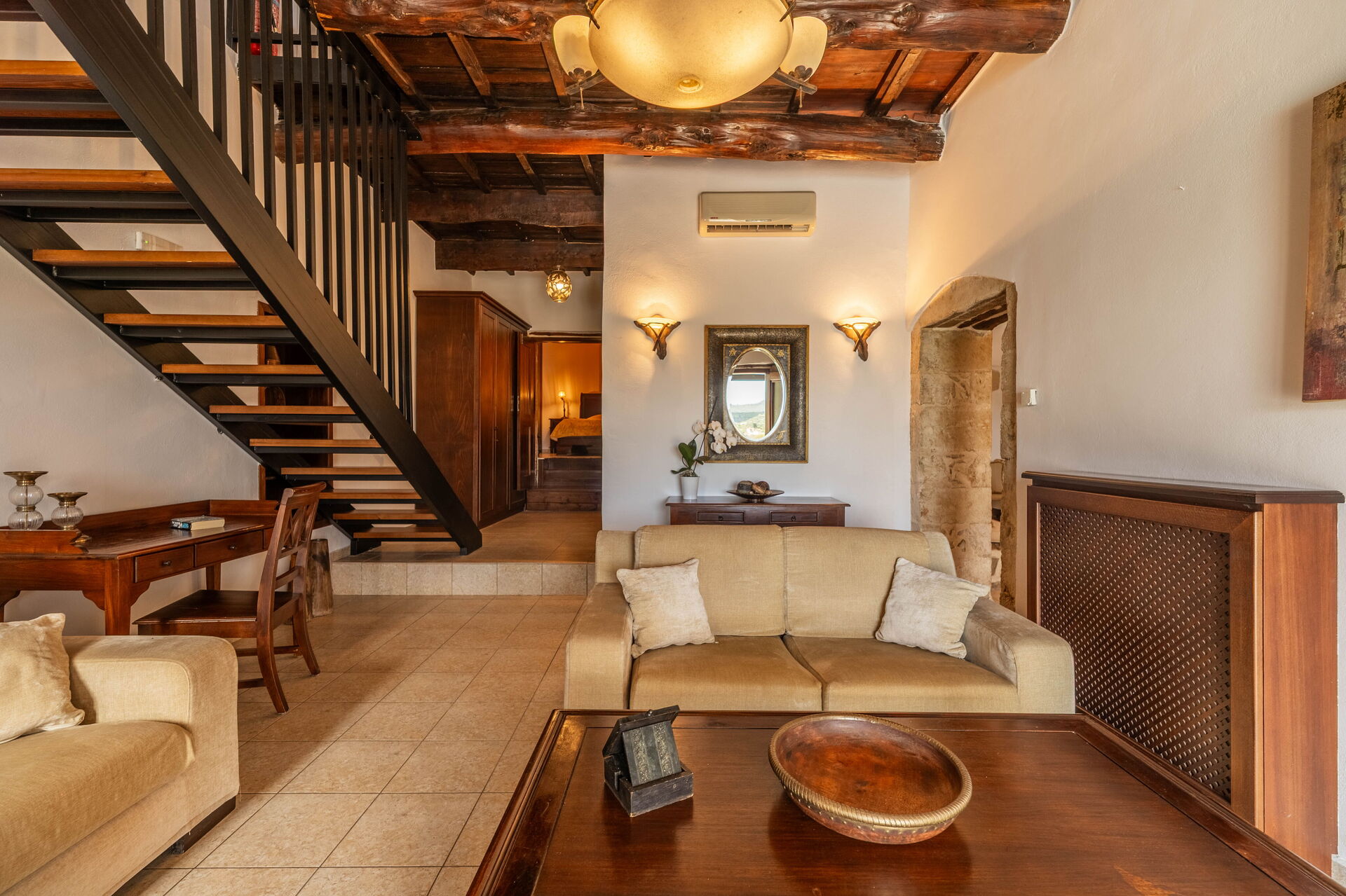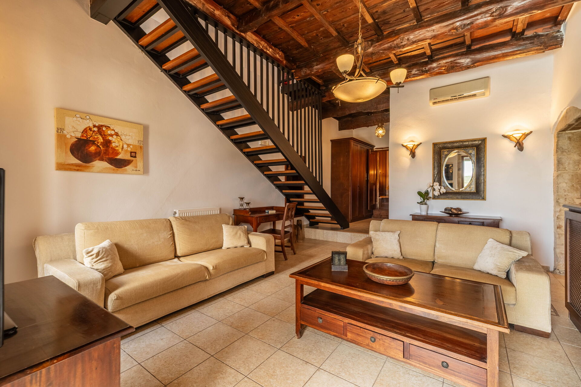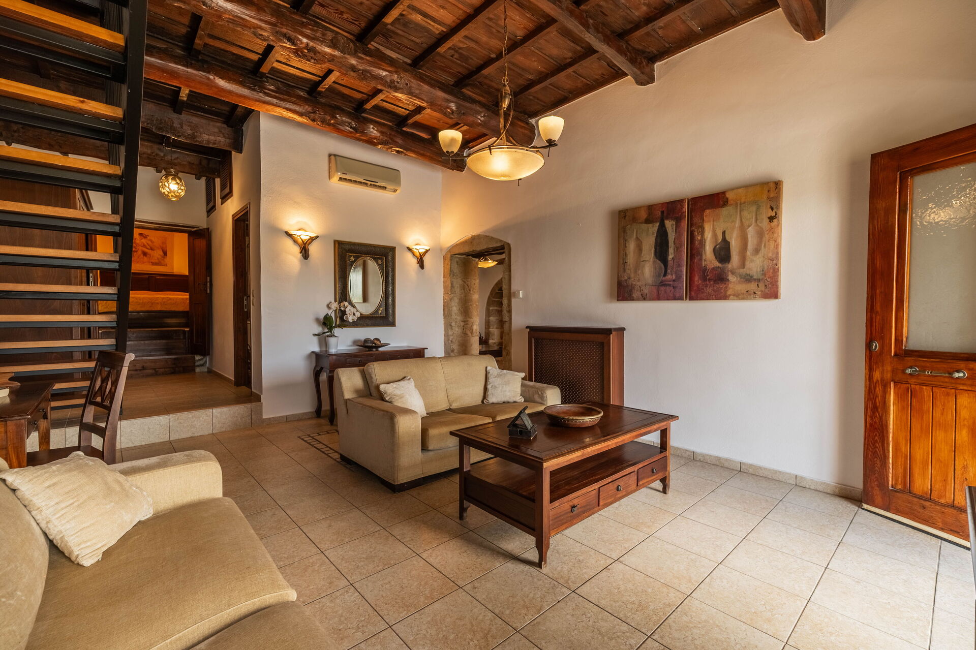 Huset er komfortabelt innredet med et smakfullt interiør, og er utstyrt med alle fasiliteter. Huset er moderne samtidig som de originale arkitektoniske trekkene med lokal stein og tradisjonelle kretiske elementer er bevart. Boligen er over 2 etasjer og har 3 soverom, 2 bad og 2 oppholdsrom, og kan komfortabelt huse opptil 6 personer.