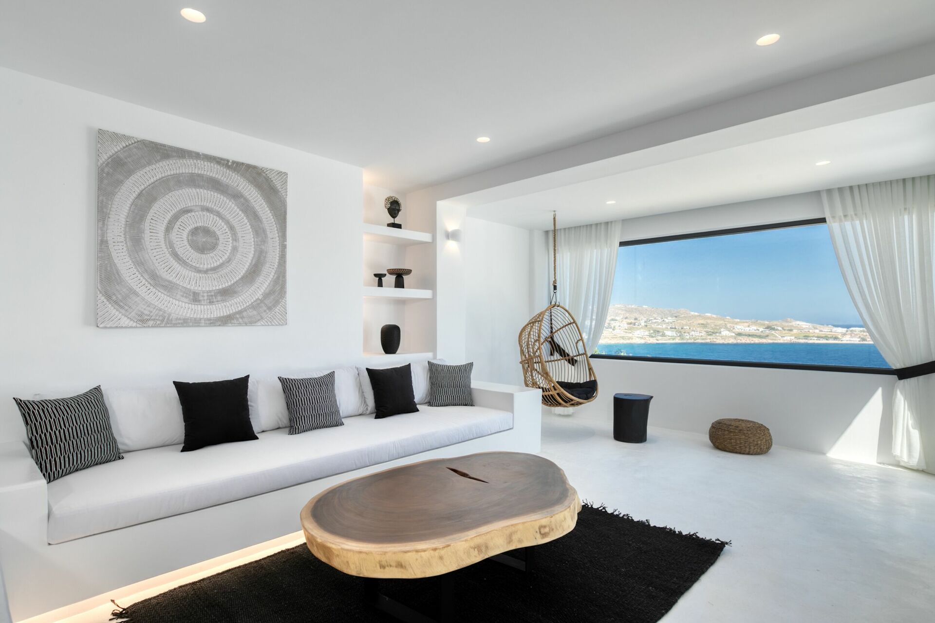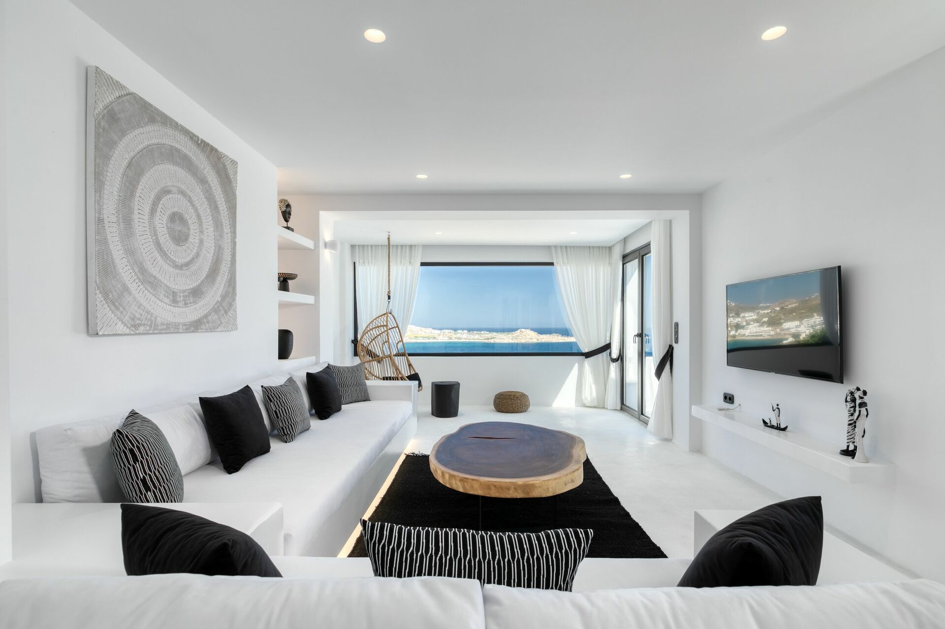 Nyt luksus, store områder innendørs og utendørs, privatliv, fred og ro på Villa Lazaros,. Feriehuset ligger bare 5 km fra Mykonos by.