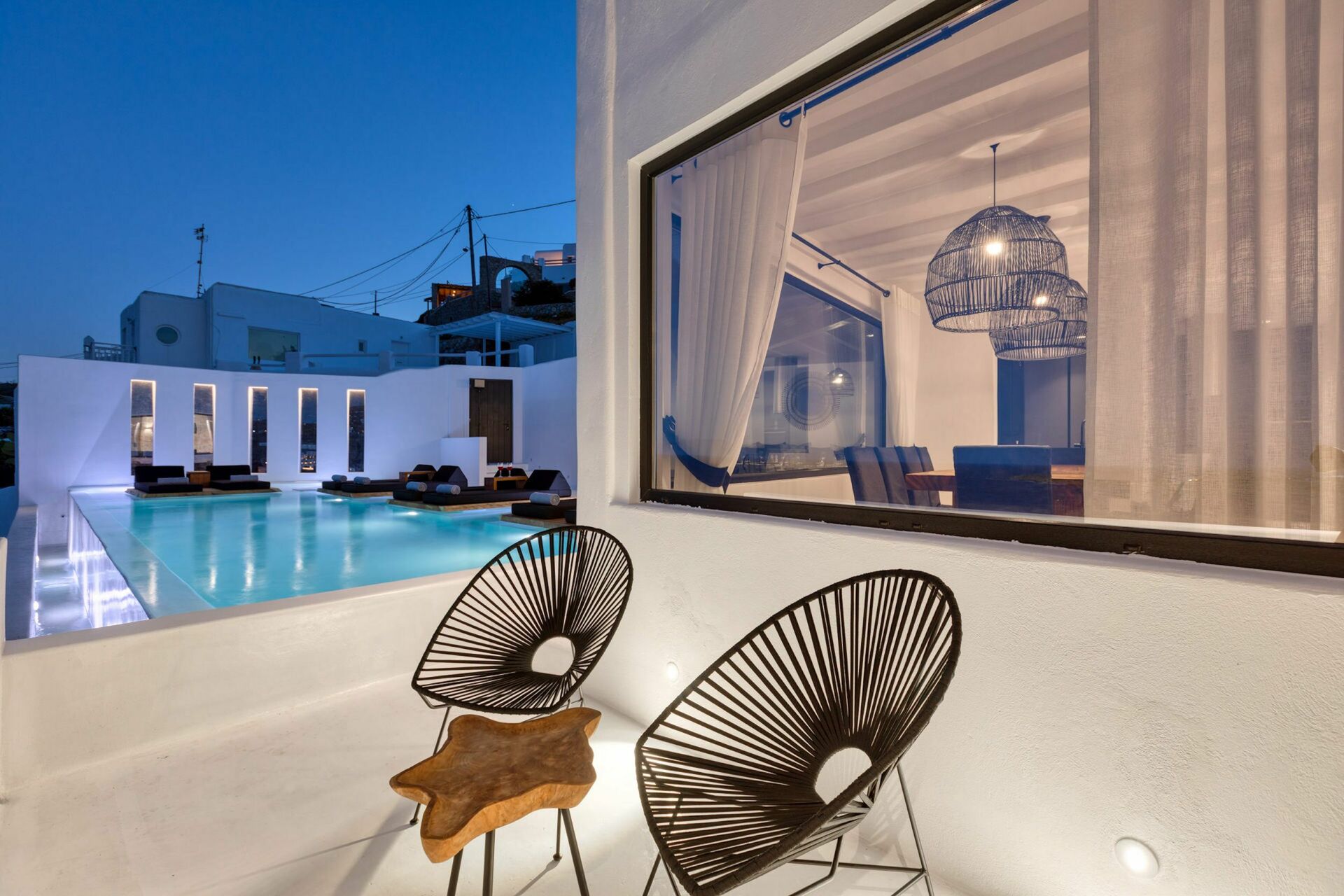 Fantastisk villa med basseng i Agios Lazaros på Mykonos i Hellas: Villa Lazaros byr på fantastisk utsikt over Egeerhavet som strekker seg ut til øyene Paros og Naxos.