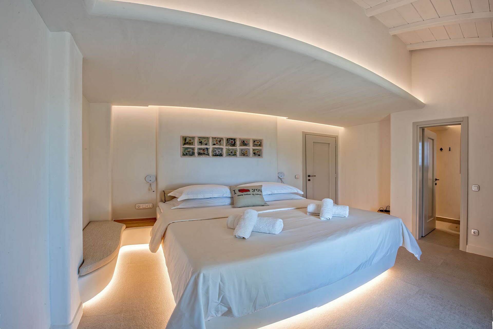Avstander: byen Skopelos (havn, butikker av alle slag) 4 km unna, Limnonari-stranden 6 km, Panormos-stranden 8,5 km, Stafilos-stranden 9 km, Milia-stranden 11 km, Agios Ioannis (kirken i “Mamma Mia!” Som ligger på en klippe over havet) 20 km unna.