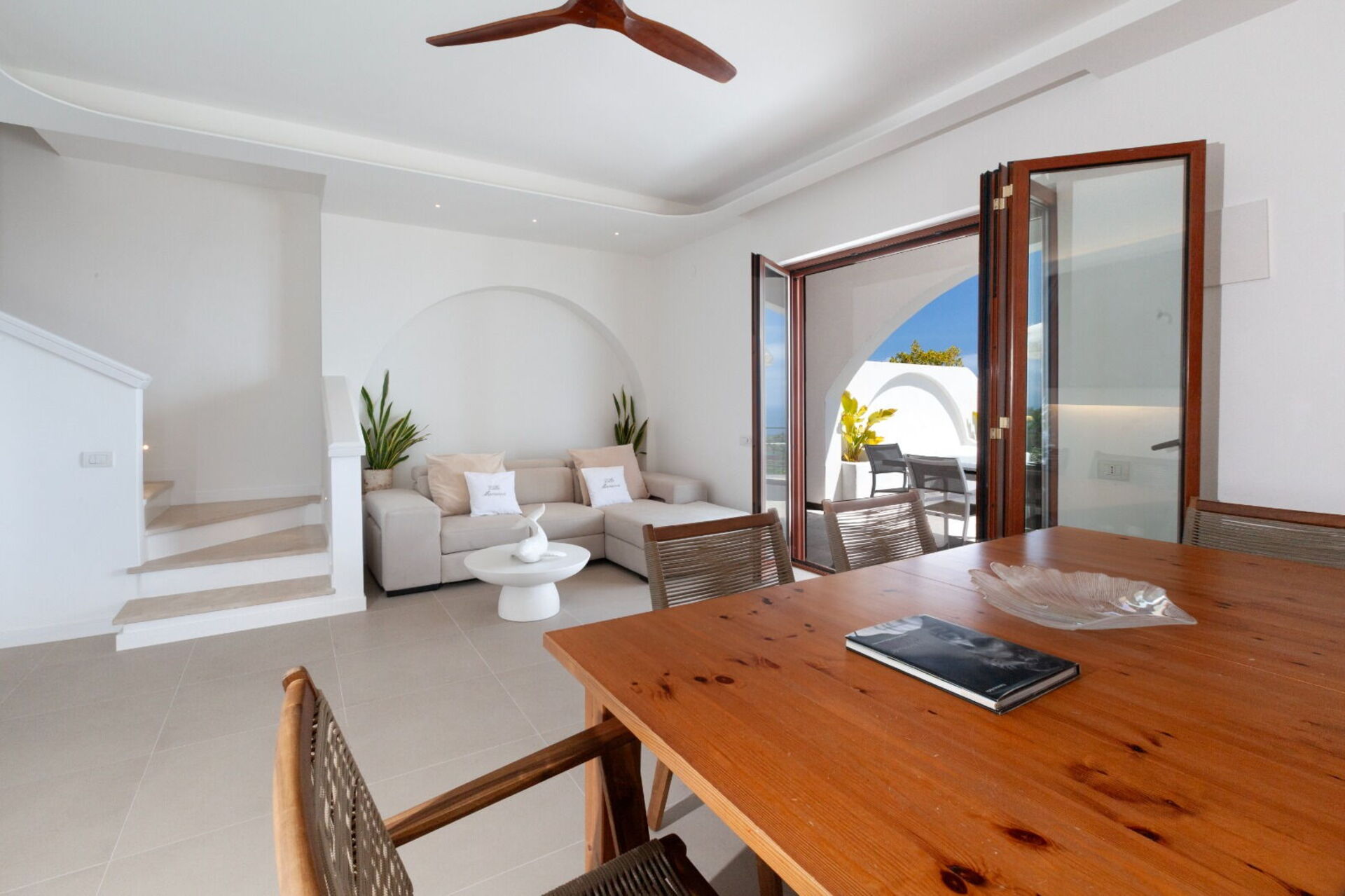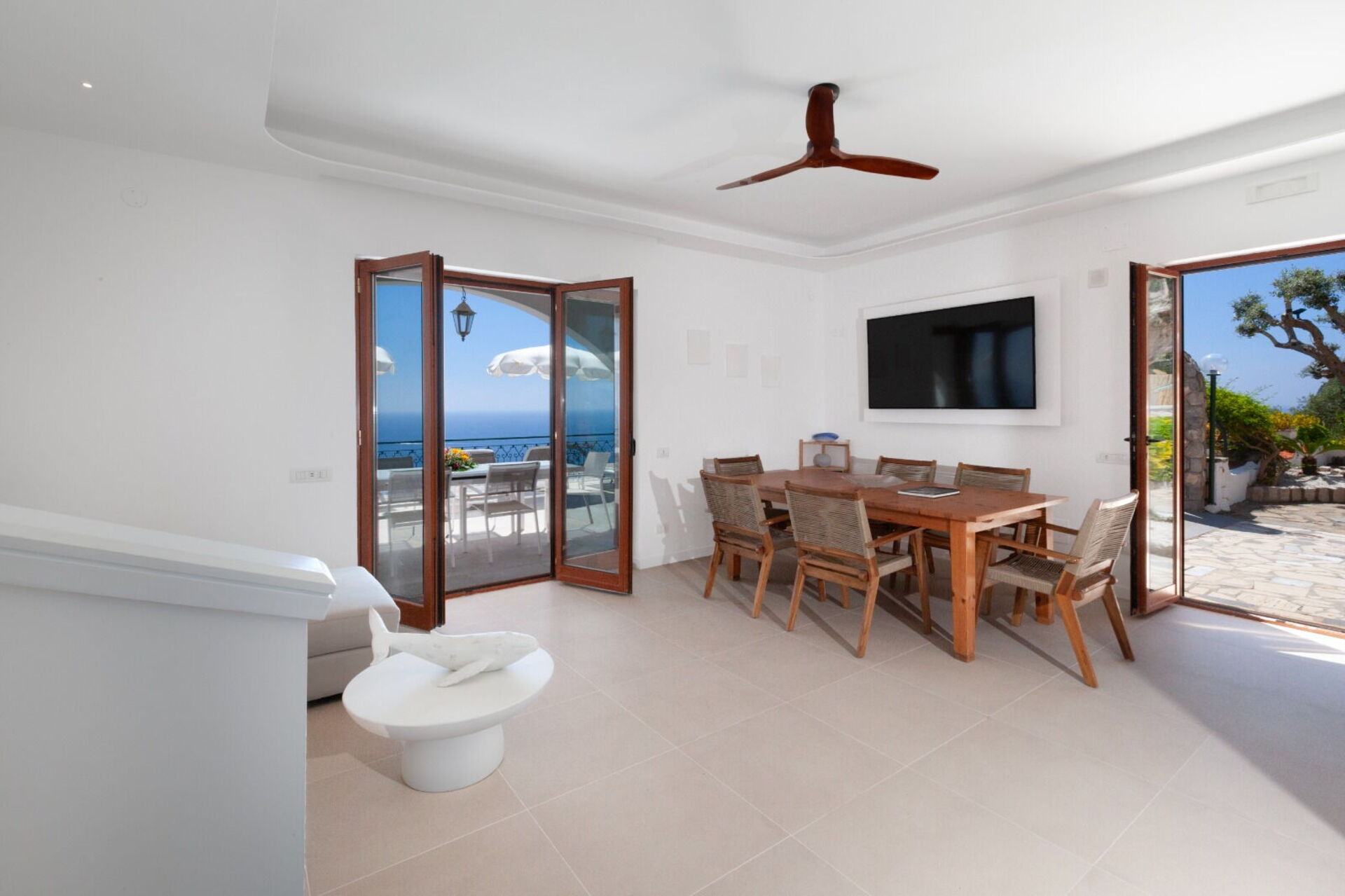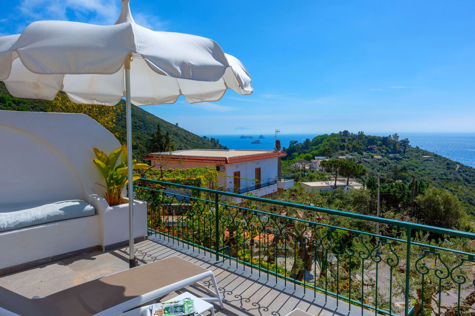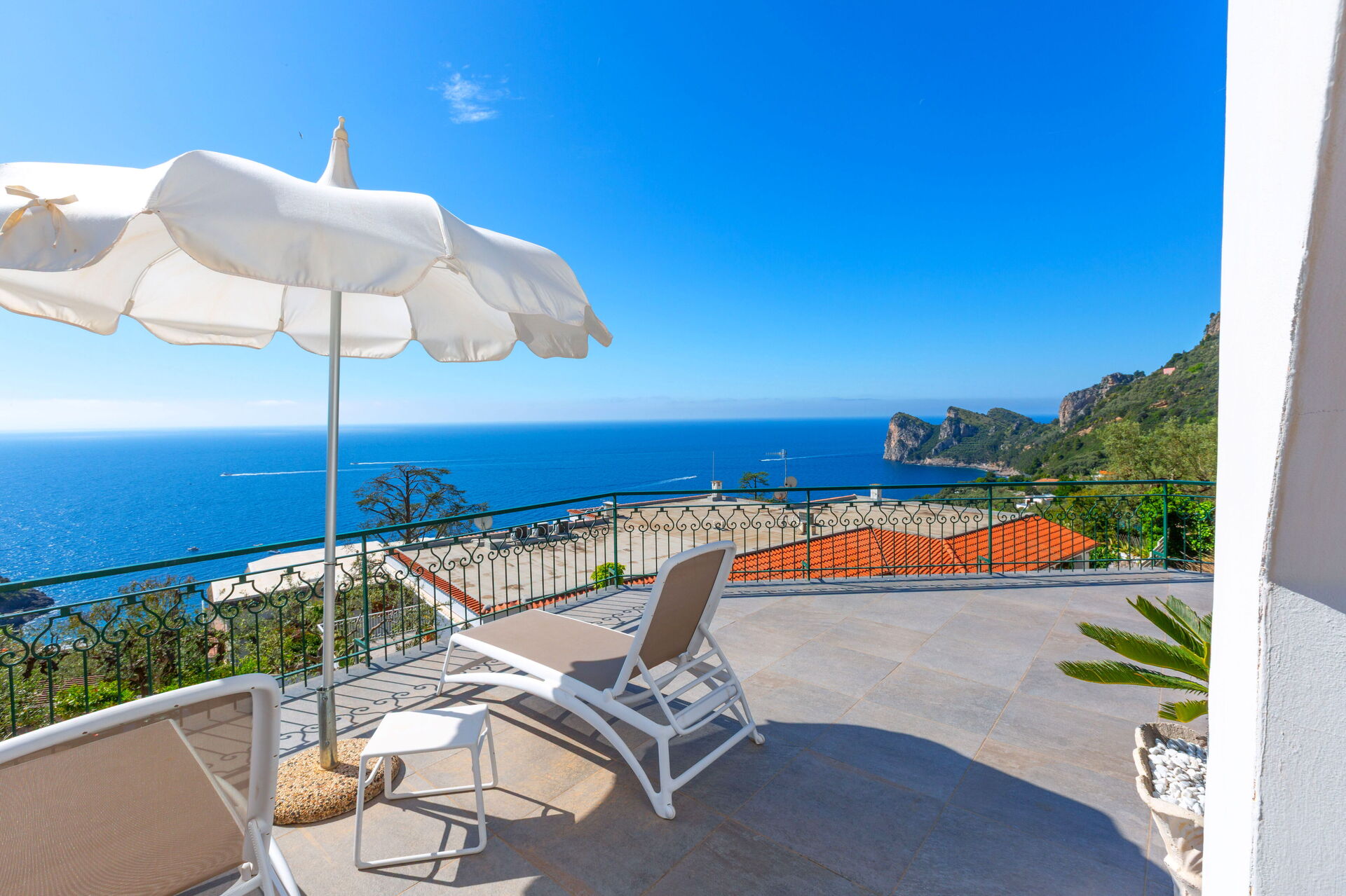 Som alle hus på Amalfikysten er det fordelt over forskjellige nivåer, som hver har fantastisk panoramautsikt mot havet: det velstelte uterommet (med steinlagte terrasser) byr på et basseng som er forbeholdt gjestene, og steder med solsenger og utemøbler slik at man kan nyte utendørs måltider.
