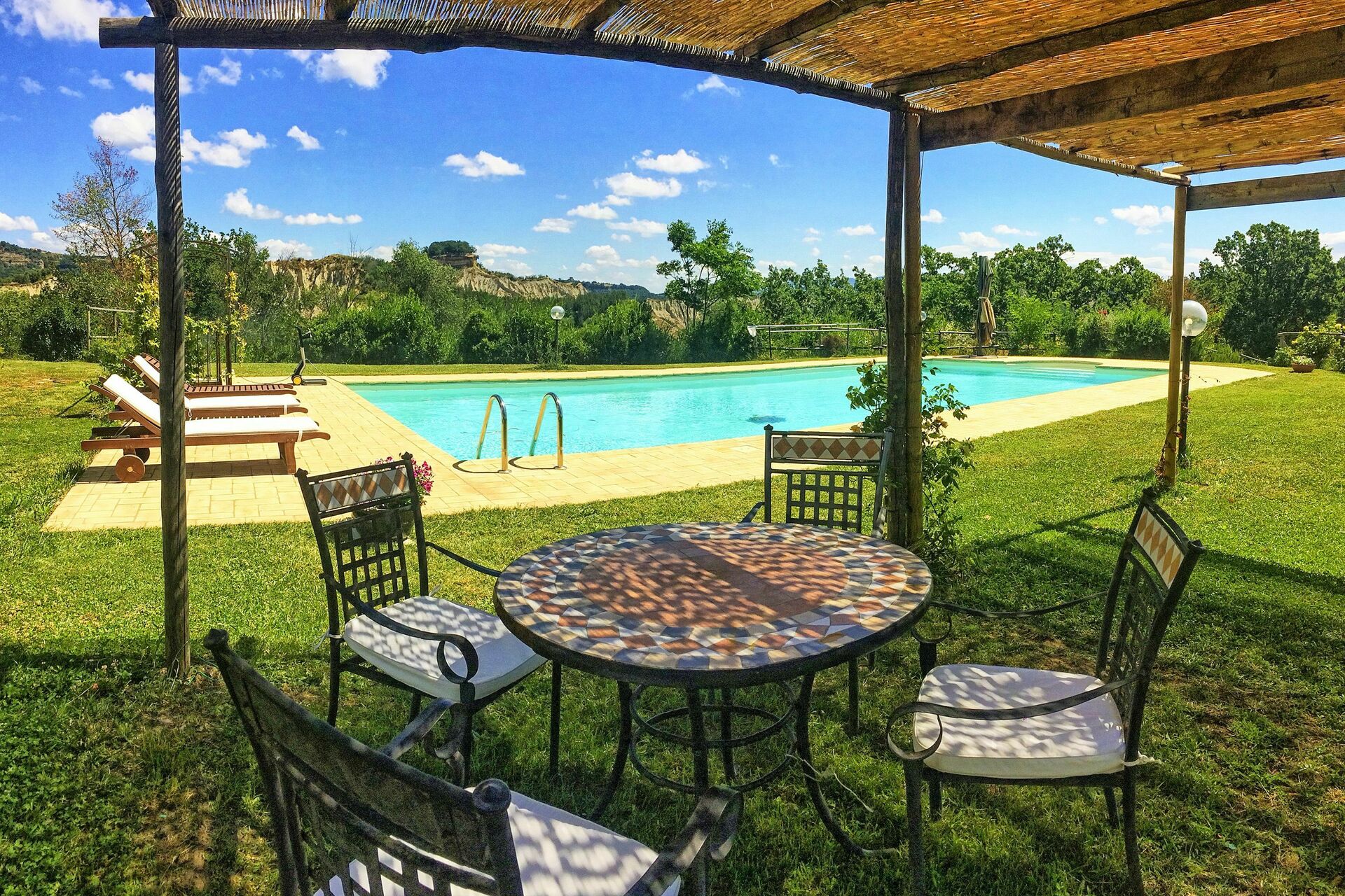 Its location is stunning, very private, huge clean pool. Views over the valley and of the Civita are just as in the photos. Hosts were also very nice, we loved their homemade olive oil. We will be back.