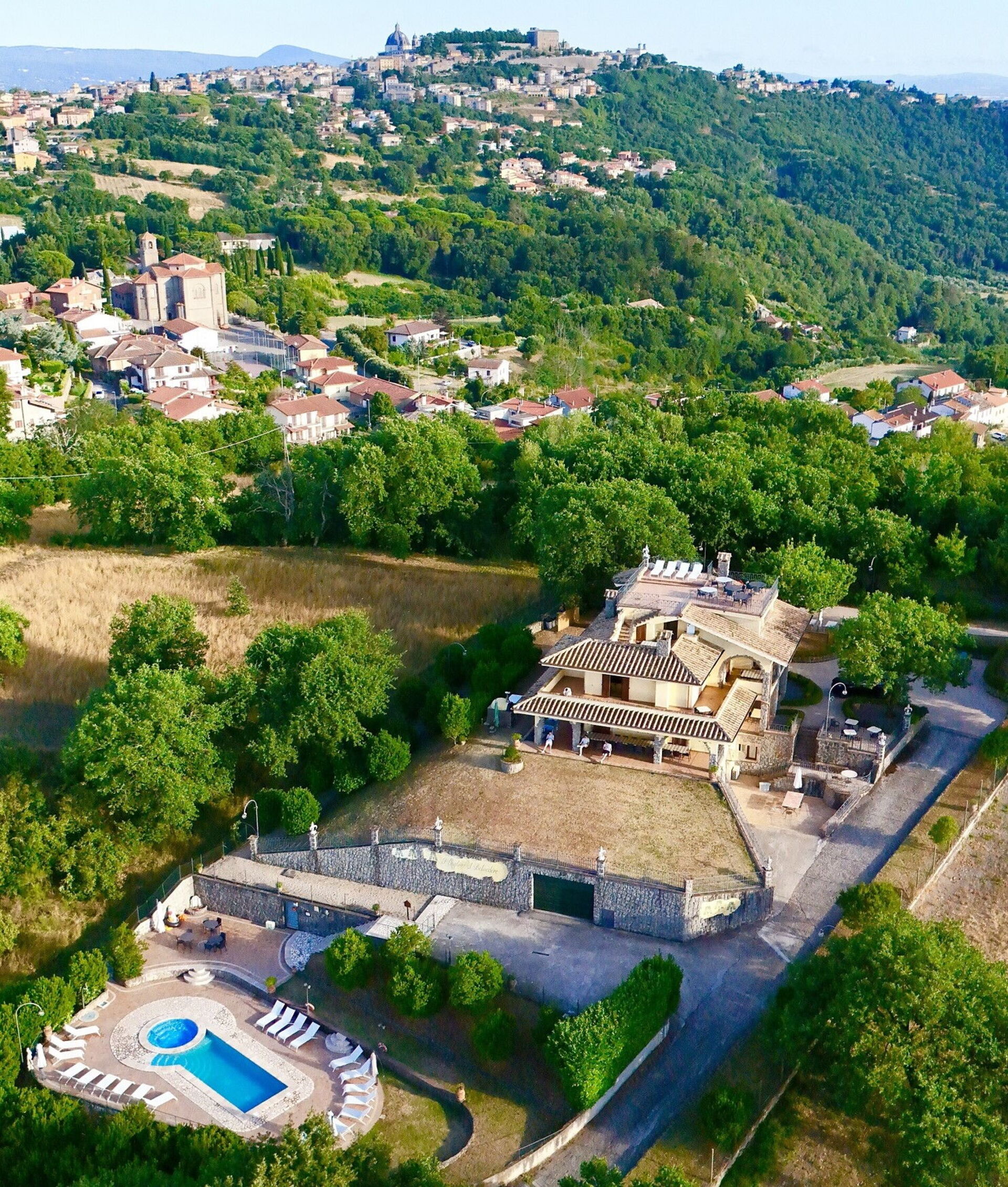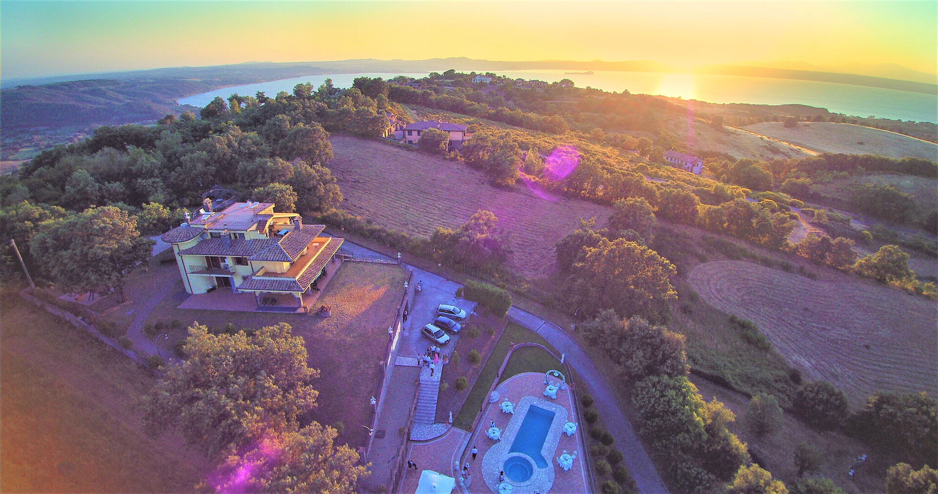 Eksklusiv villa med privat basseng på en høyde med panoramautsikt over Bolsena-sjøen i Lazio. Feriehuset ligger nær Montefiascone som er en av landsbyene ved denne vakre innsjøen i Italia