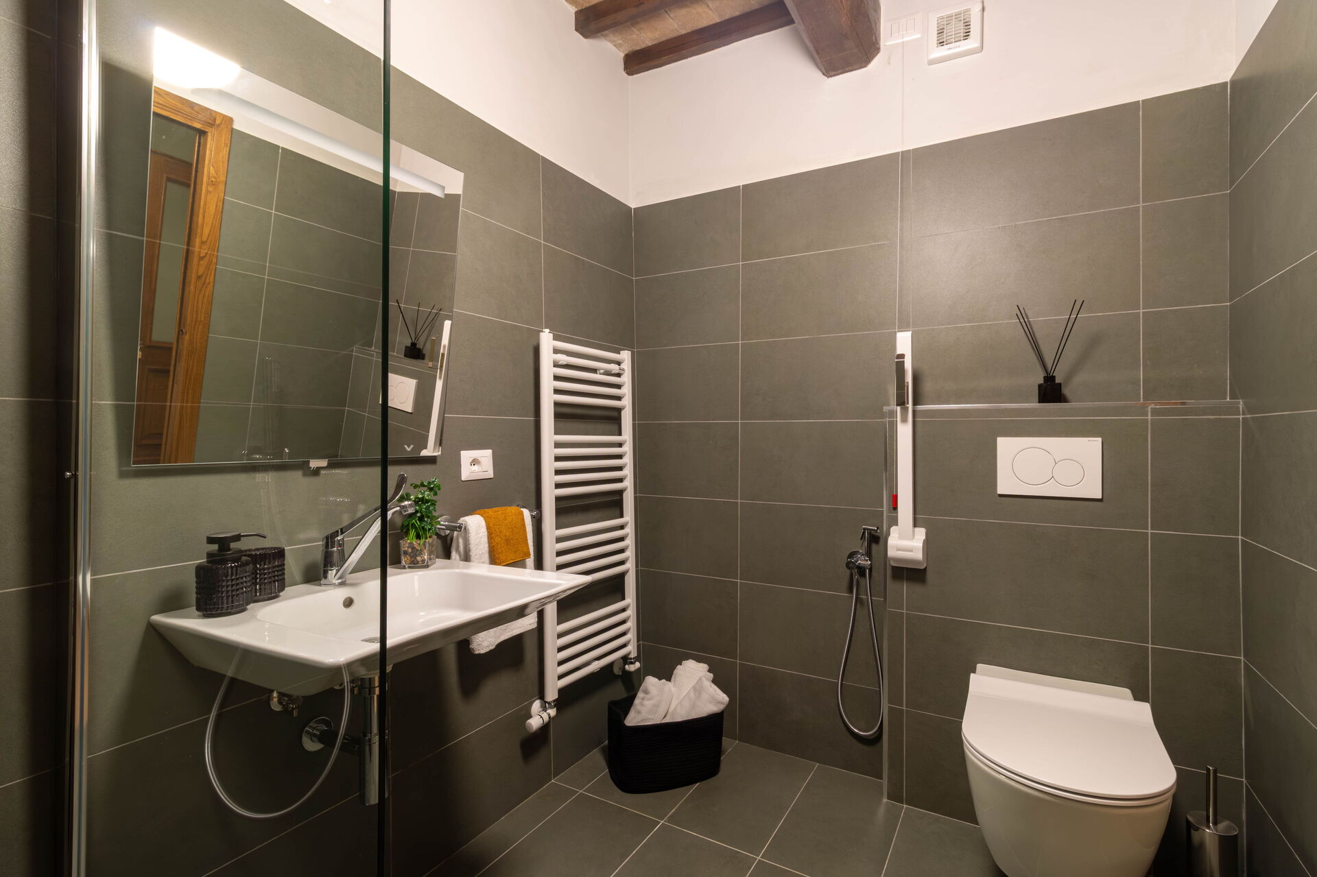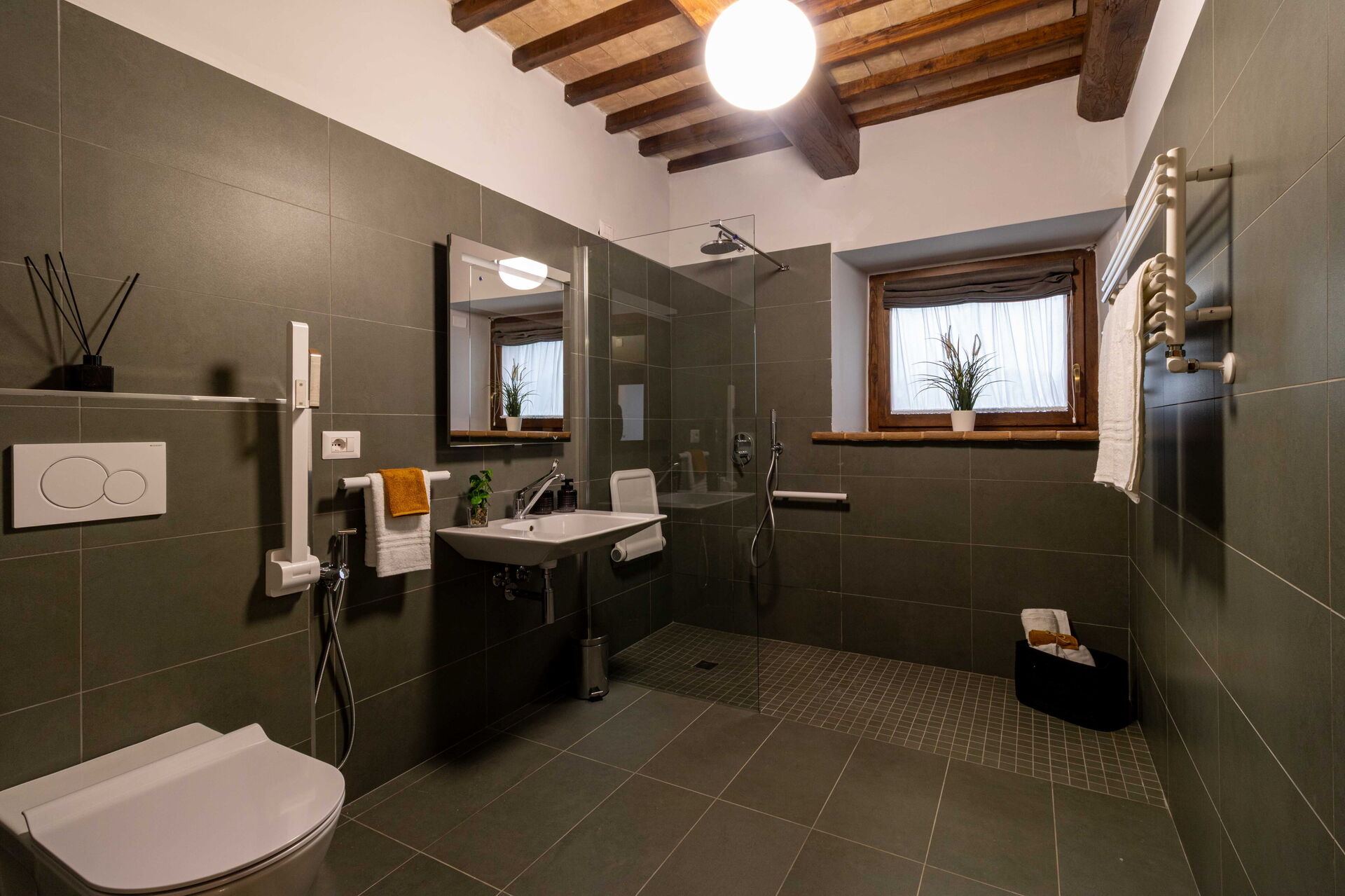 Første etasje (ikke innvendig forbundet med de andre enhetene): dobbeltrom (på forespørsel kan king-size-sengen deles i 2 enkeltsenger) med eget bad med terskelfri dusj (ideell for personer med redusert mobilitet eller funksjonsnedsettelser).