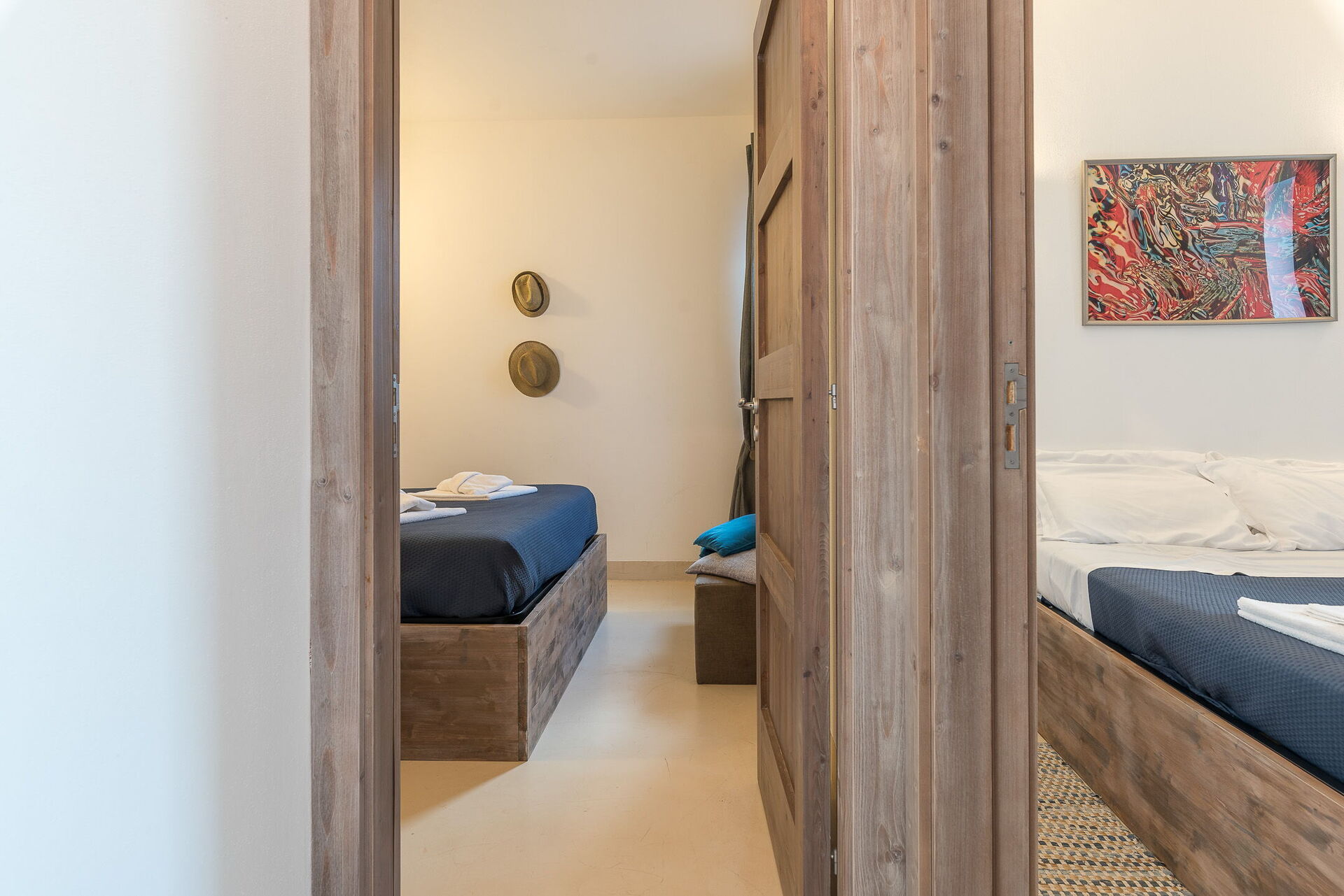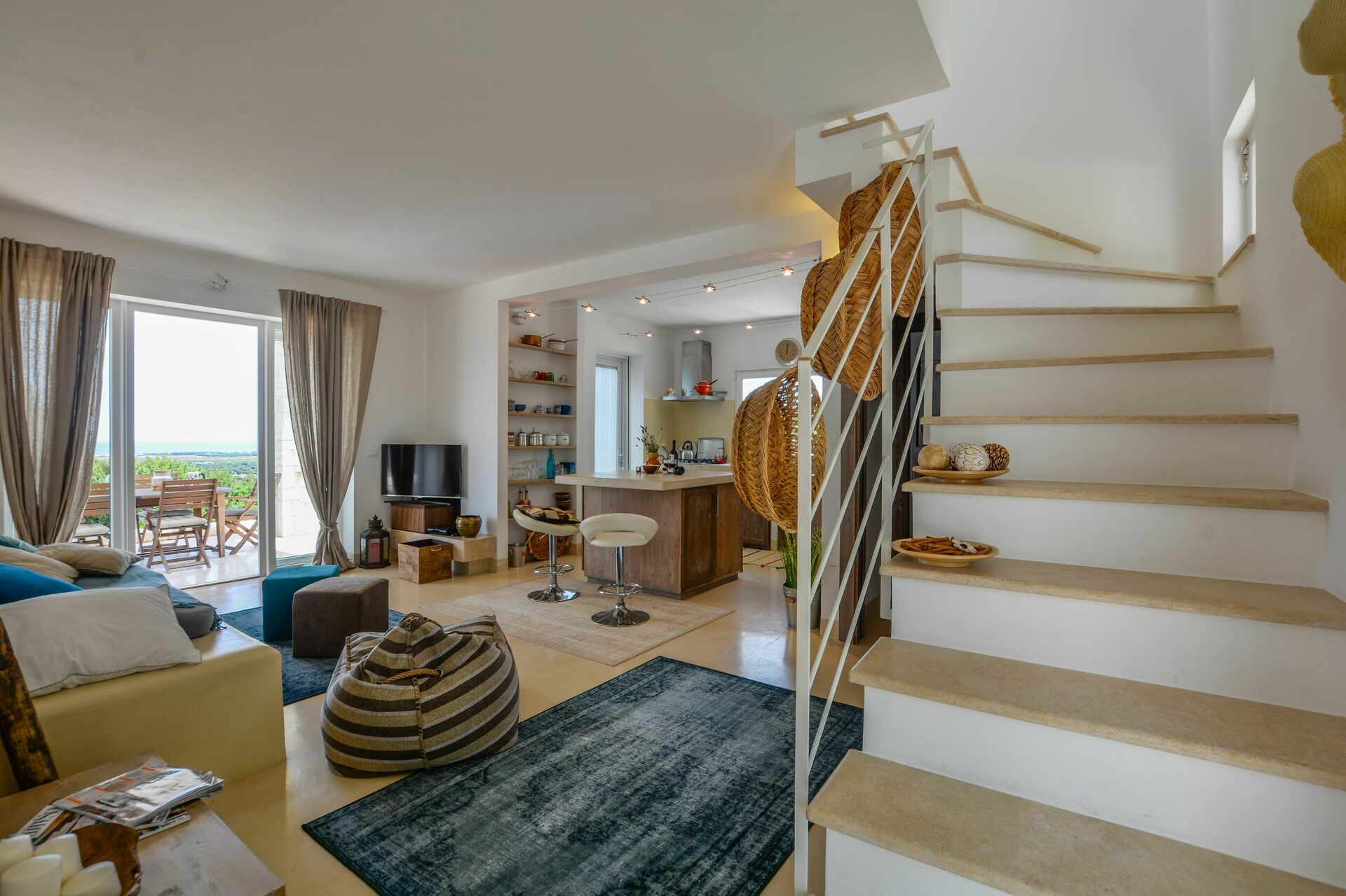 I tillegg til alle uteplasser, er det to terrasser i andre etasje med tilgang fra det romantiske dobbeltrommet, hvor solnedgangen ned i havet blir en del av din hverdag.