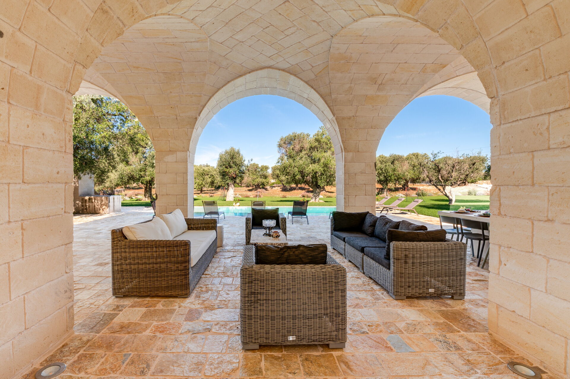 I den store hagen med flere hundre år gamle oliventrær kan du slappe av ved infinitybassenget eller nyte hyggelige stunder i den elegante loggiaen som vender mot bassenget og grillplassen i nærheten.