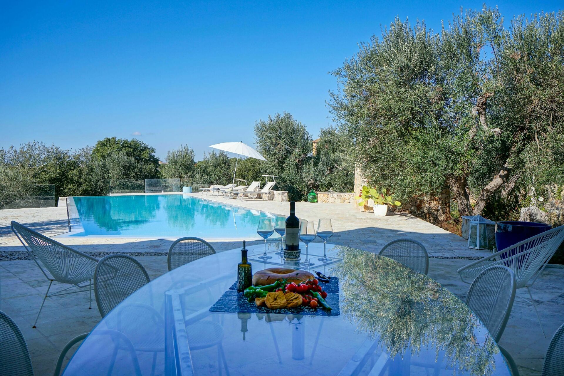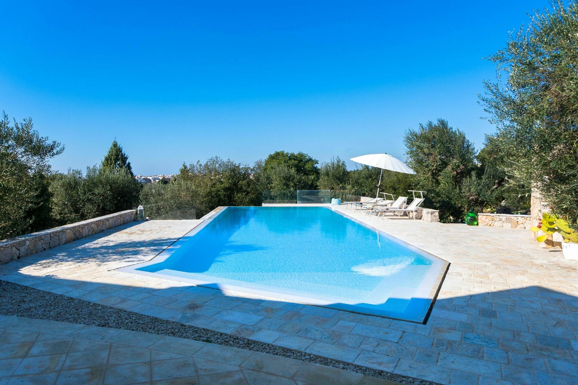 Avstander: Butikker og restauranter 1,5 km, strand 15 km, Gallipoli 21 km, Torre Mozza 25 km, Lecce 32 km, Otranto 40 km, Brindisi flyplass 100 km.