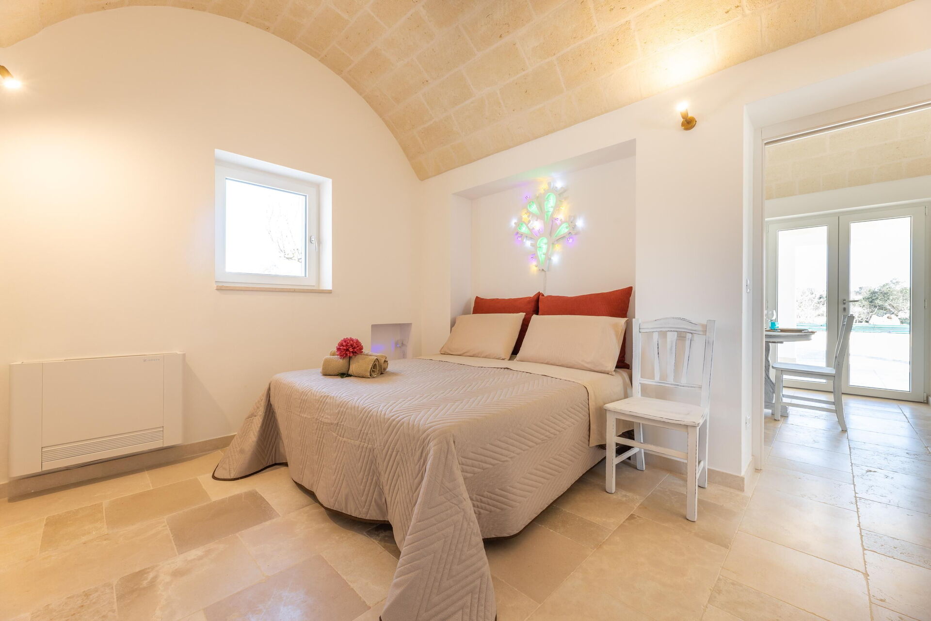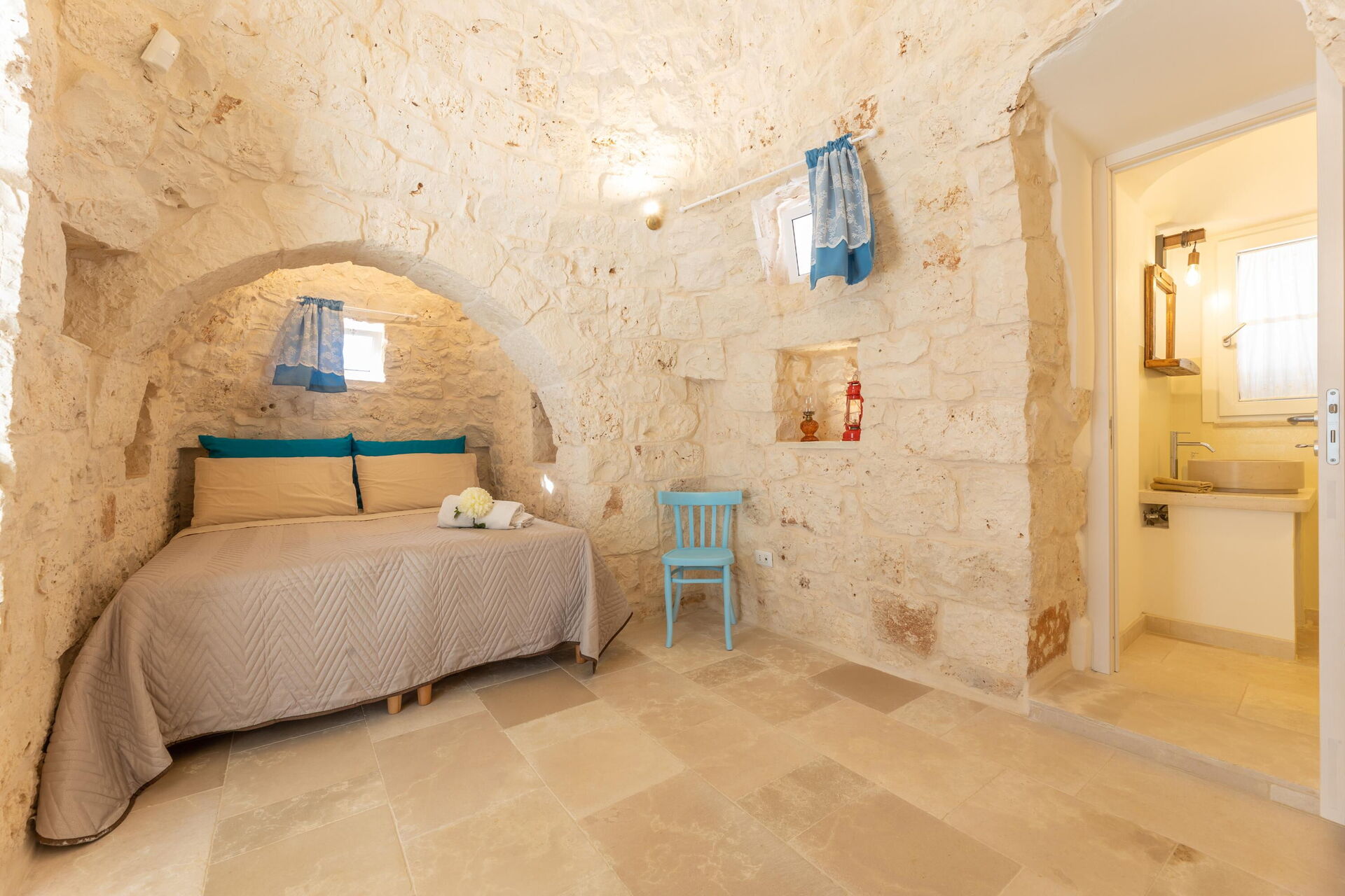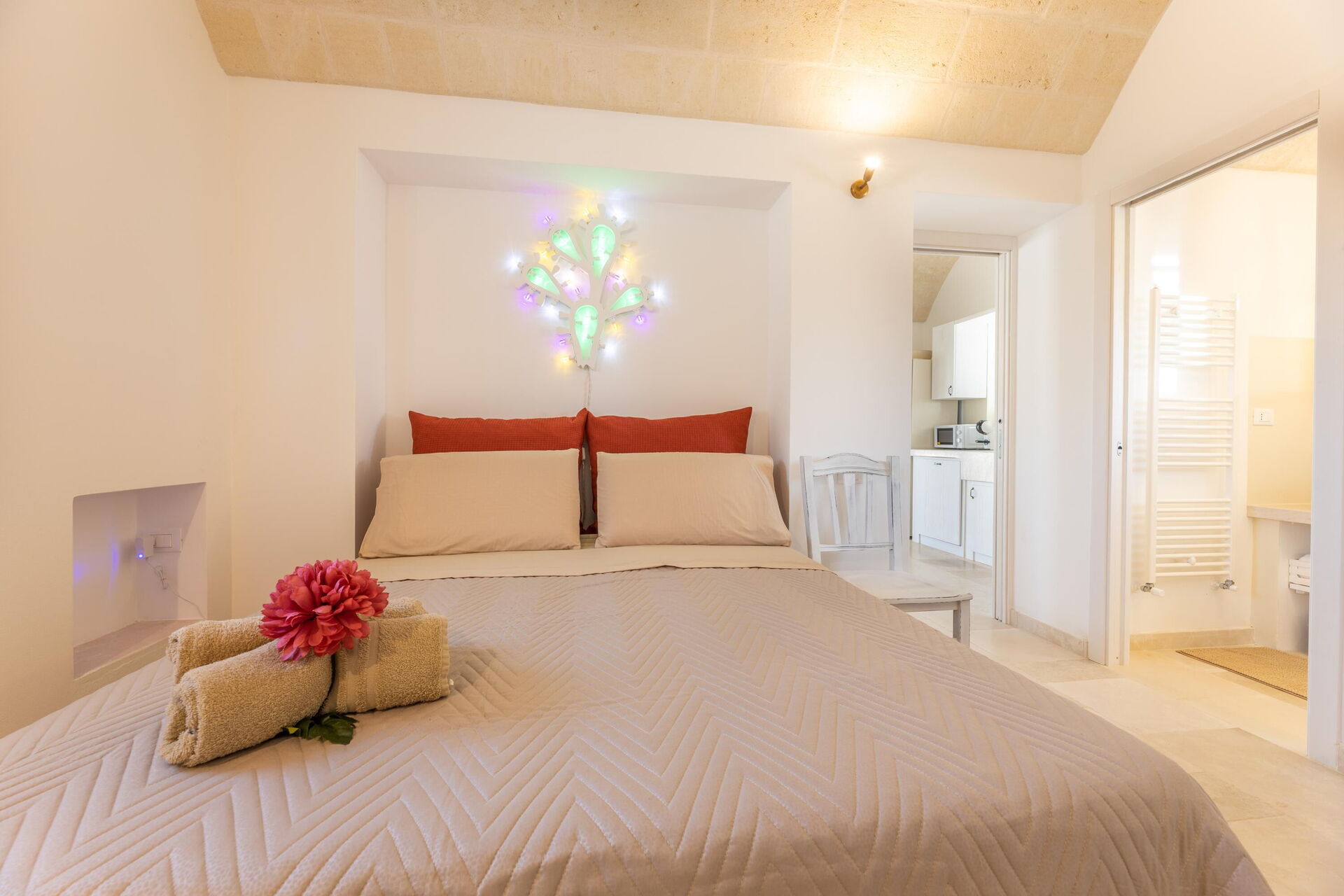Trulloen med 4 kjegler er tradisjonell, nylig renovert og hvis du leter etter et rolig og typisk sted i Salento, er Trullo Adea den ideelle løsningen for deg. Med 2 soverom og en dobbel sovesofa (tilgjengelig på forespørsel og mot betaling), så er det plass til 4 til 6 personer i denne fantastiske trulloen.
