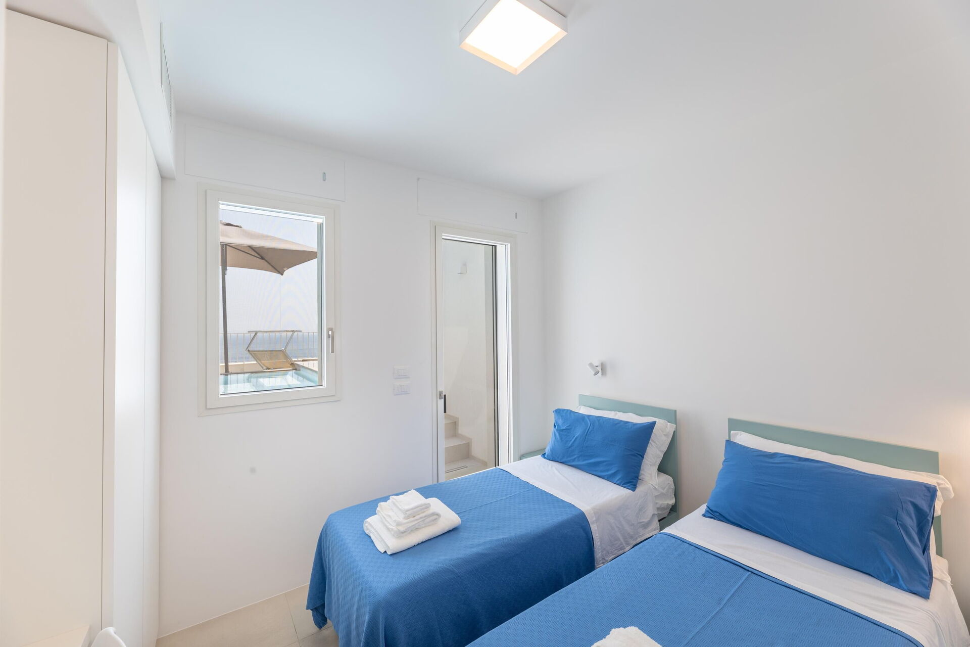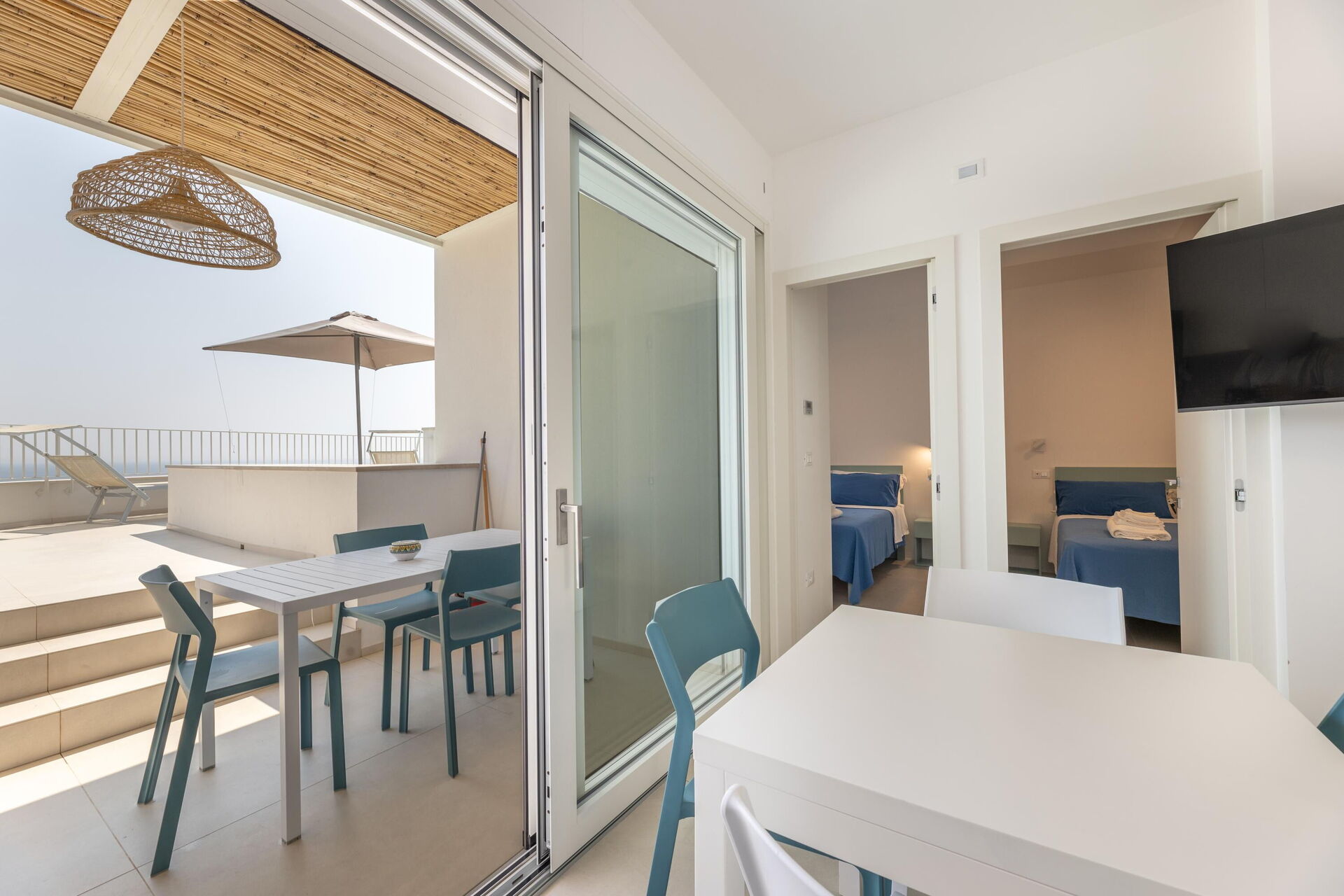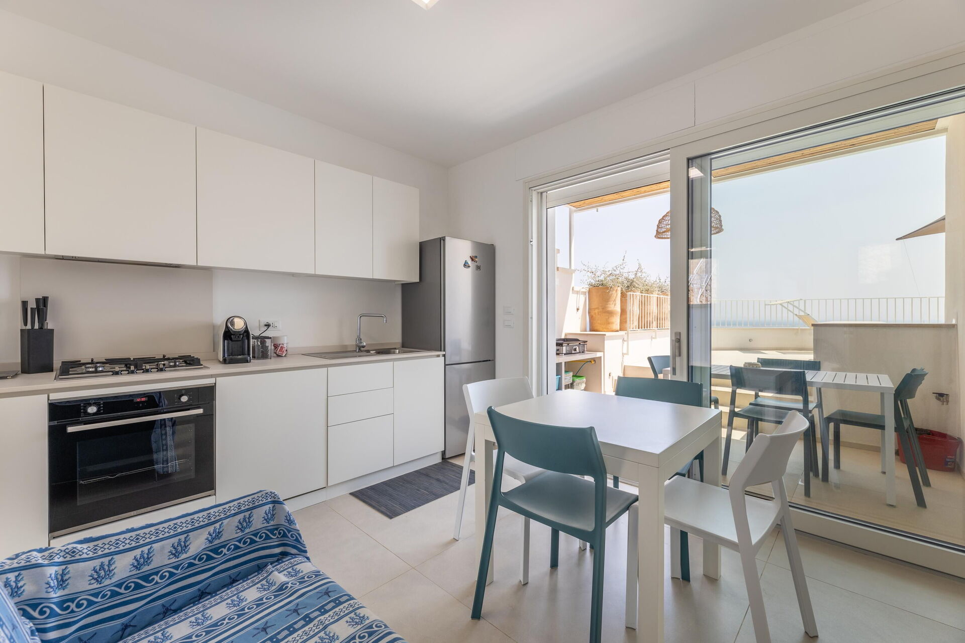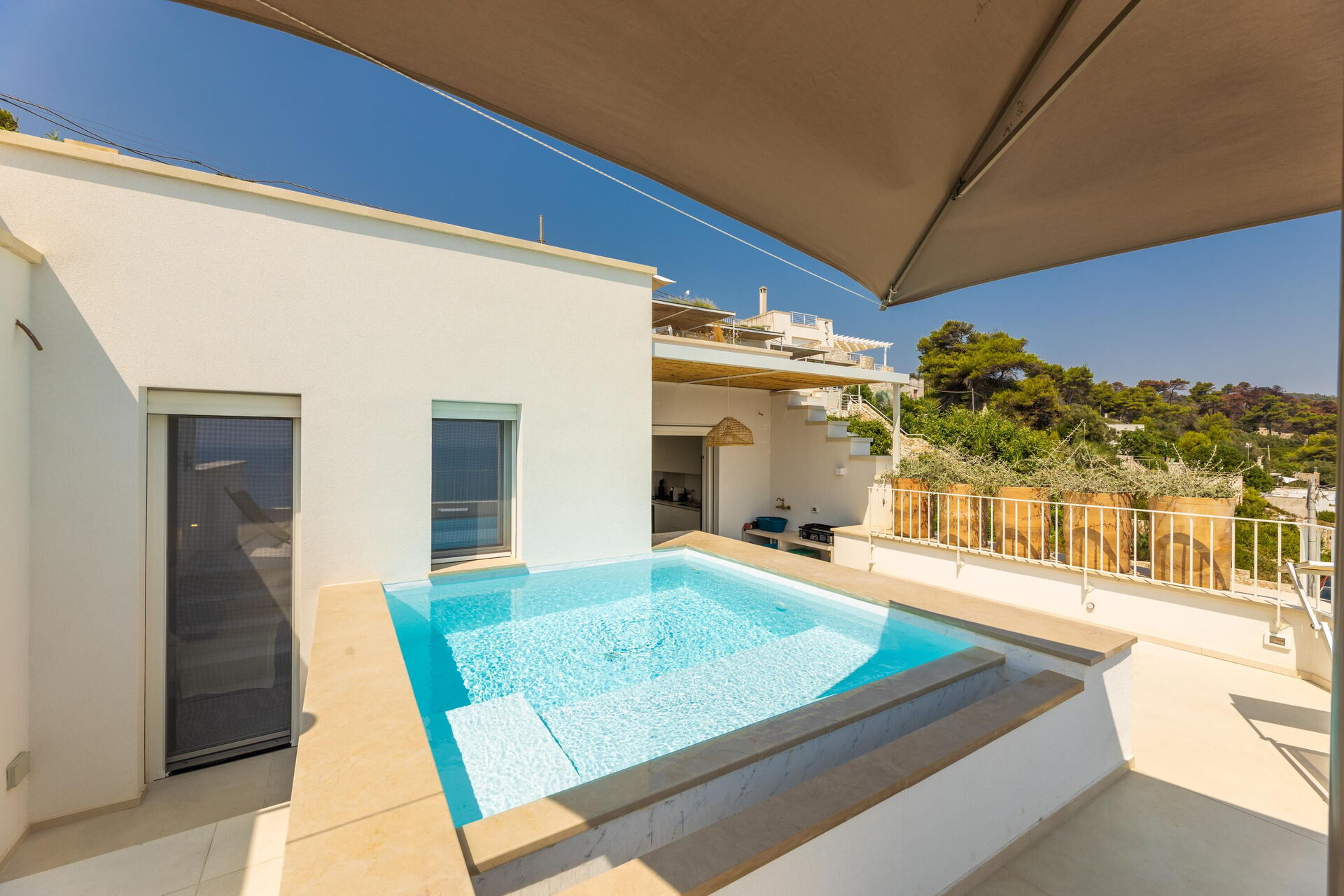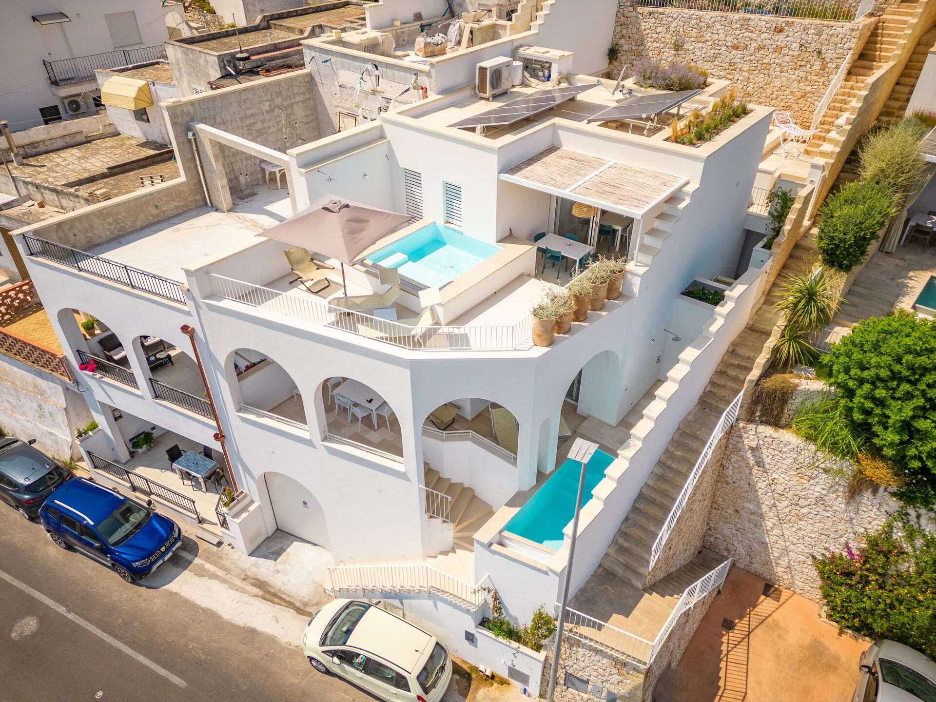 Leiligheten er i andre etasje og har plass til 4/6 personer takket være 2 soverom og en dobbel sovesofa. På terrassen er det oppvarmede svømmebassenget med utsikt over det blå puglianske havet.