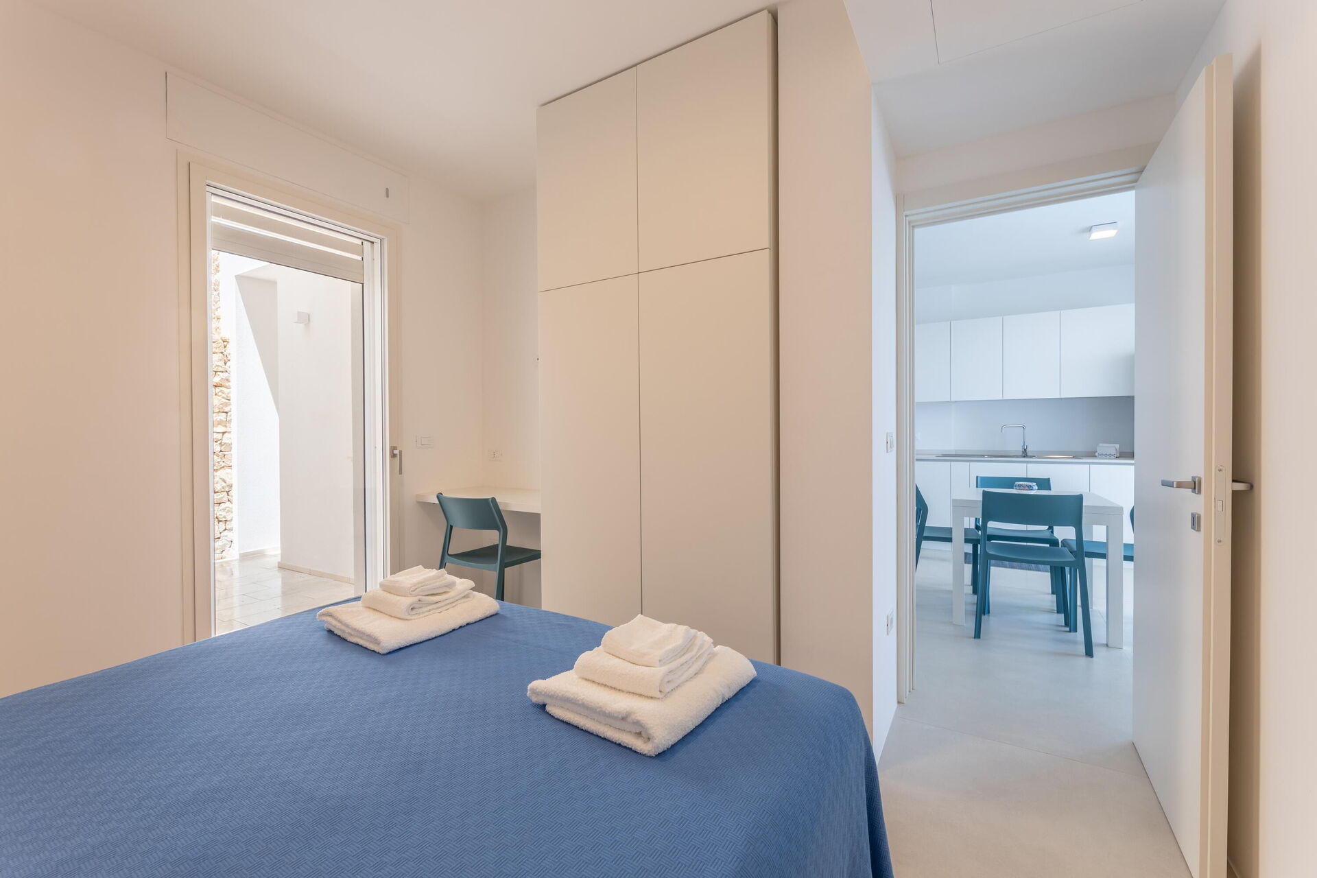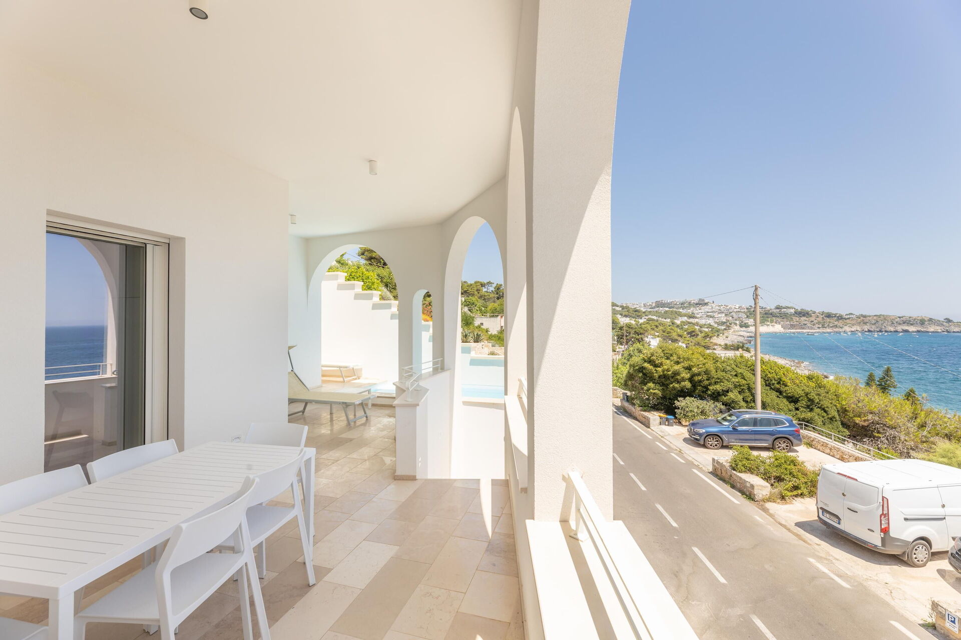 Marinaia Archi ble nylig renovert, og takket være 2 soverom og en dobbel sovesofa, har den plass til 4/6 personer. Leiligheten er lys og innbydende, innredet i en enkel og funksjonell stil og utstyrt med alle moderne bekvemmeligheter. Den har en overbygd panoramaterrasse med store buede åpninger, utstyrt med bord og stoler for uteservering, og et privat svømmebasseng (som kan varmes opp om våren og høsten) med flott utsikt over Puglias blå hav.