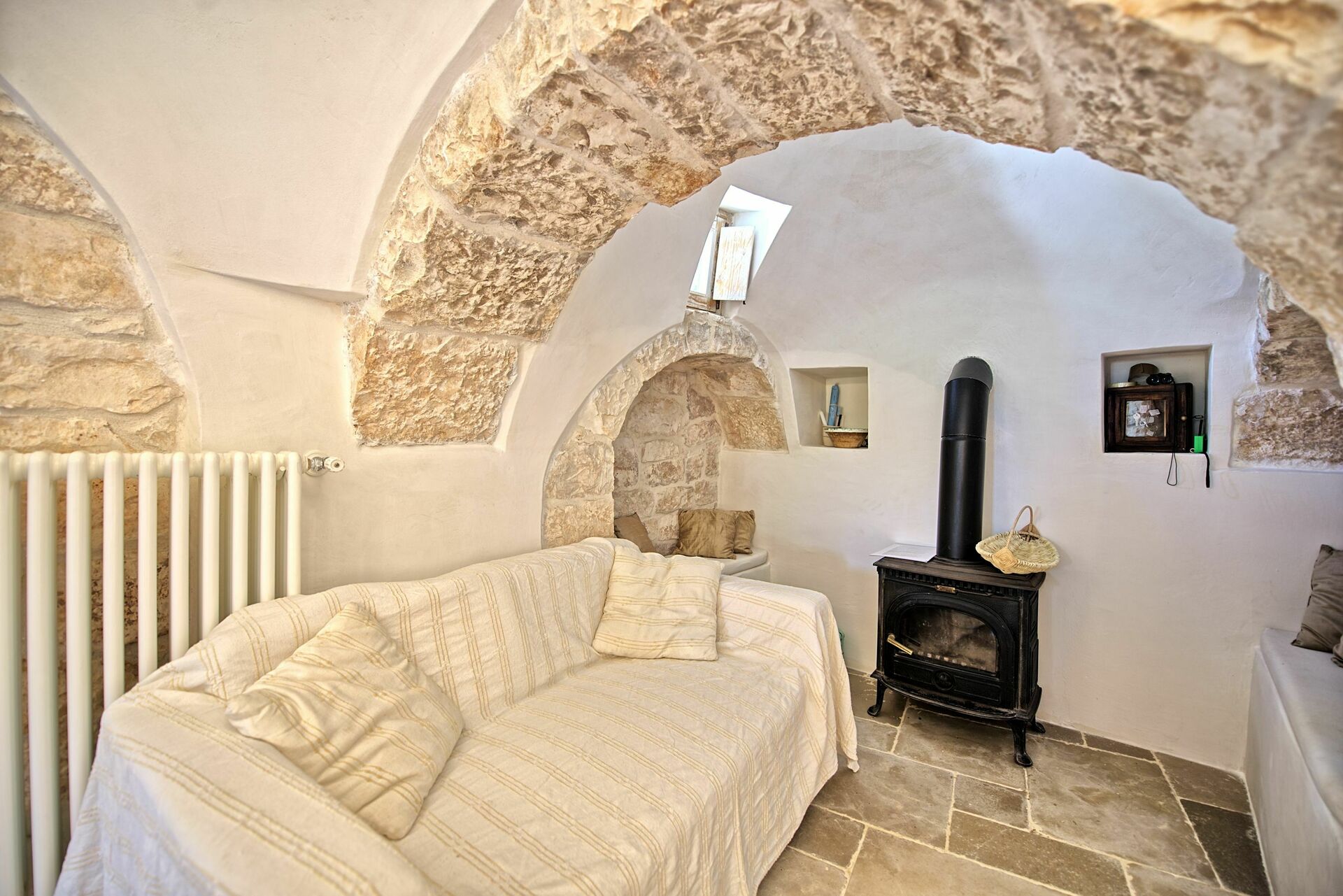 I kaldere måneder varmes trulloen opp med en vedovn, mens i varmere måneder sørger de tykke veggene for at temperaturen inne i trulloen holdes behagelig.