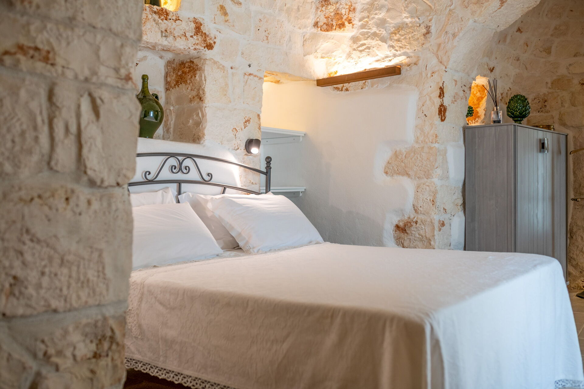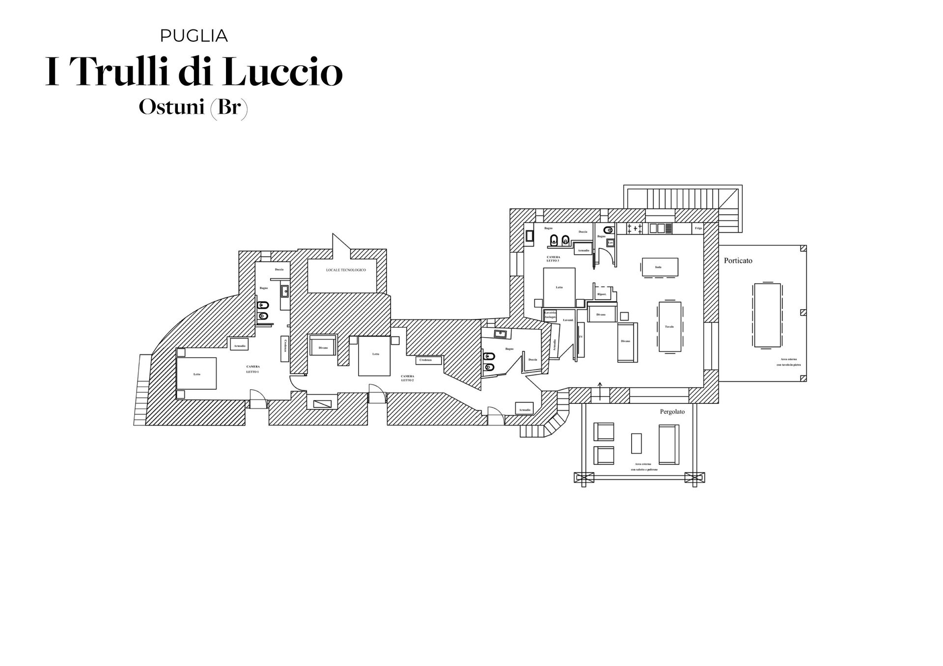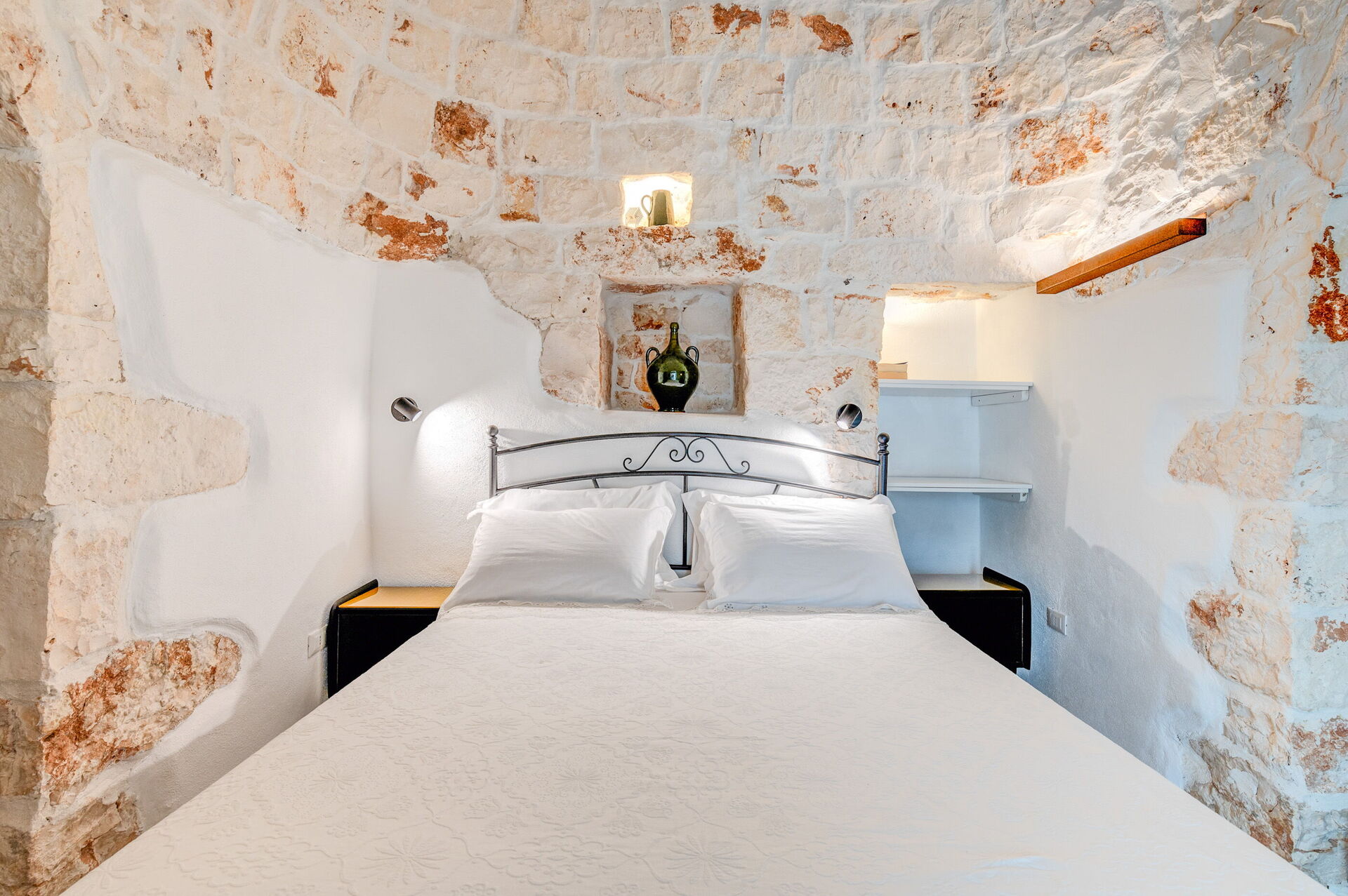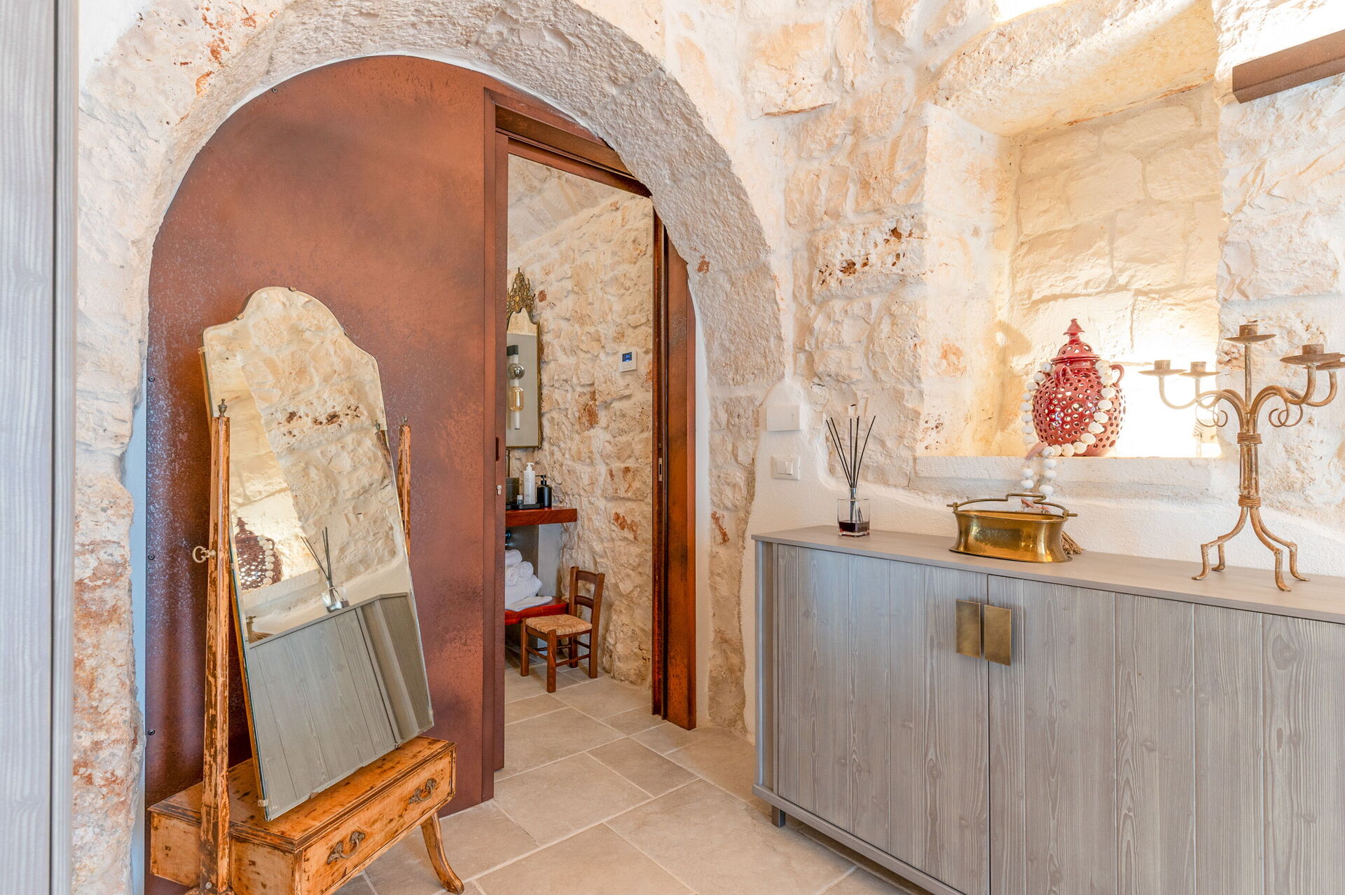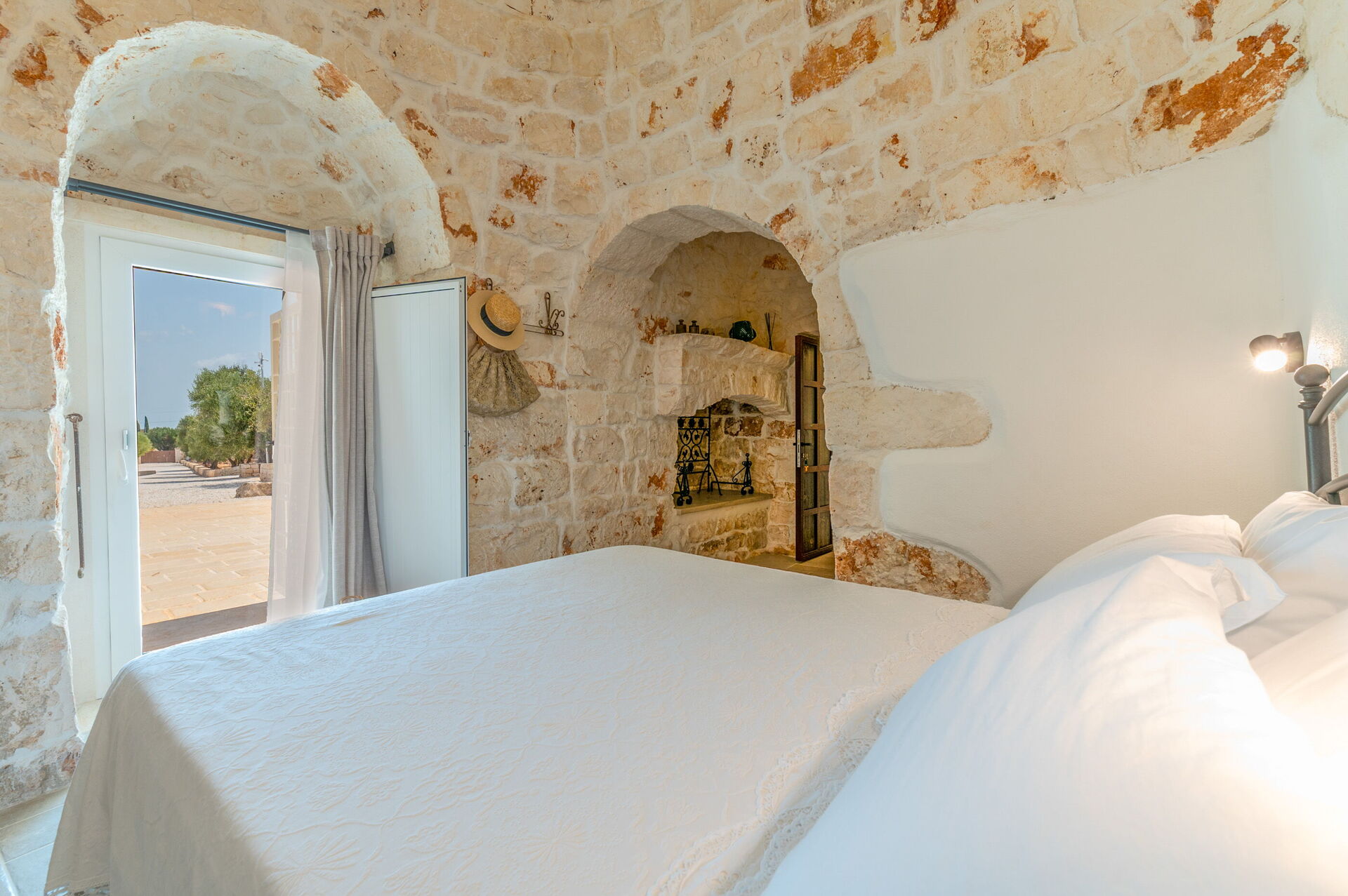 Trulli di Luccio er en trullo med privat basseng til leie for ferie i Puglia, på landsbygda ved den berømte "hvite byen" Ostuni. Denne karakteristiske tradisjonelle apuliske boligen ligger i en flott landlig kontekst omgitt av hundre år gamle oliventrær. Hvis du leter etter en ferie preget av ro og natur, er denne eiendommen perfekt for dine behov. Innvendig er den smakfullt og enkelt innredet, med en kontrast mellom klassisk stil og tradisjonelle materialer som lokal stein og tre. De koselige rommene er utstyrt med alle fasiliteter og har plass til opptil 6 personer fordelt på 3 soverom. Ute har eiendommen, i tillegg til et flott basseng til eksklusiv bruk for gjestene, store områder for å nyte ferien utendørs: en stor veranda nær bassenget med utekjøkken, grill og et fint avslapningsområde står til gjestenes disposisjon. Trulli di Luccio er strategisk plassert bare 8 km fra den vakre byen Ostuni, og ved å leie denne villaen kan du enkelt utforske de viktigste turistmålene i området: fra strendene i Baia dei Camerini til naturreservatet Torre Guaceto og de berømte historiske sentrene som Alberobello, Locorotondo, Carovigno og Polignano a Mare.