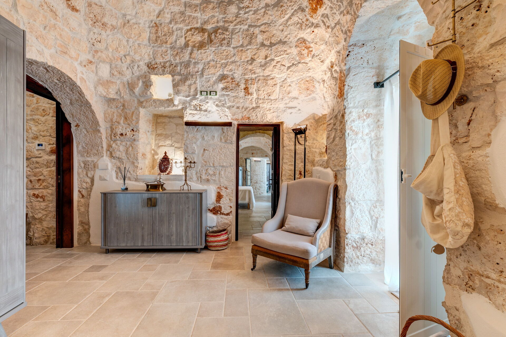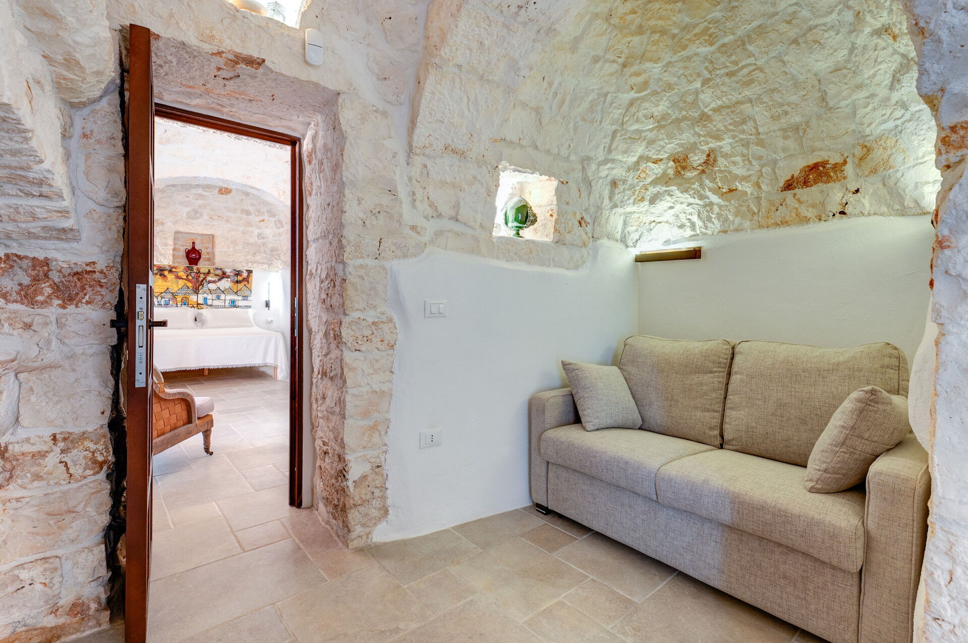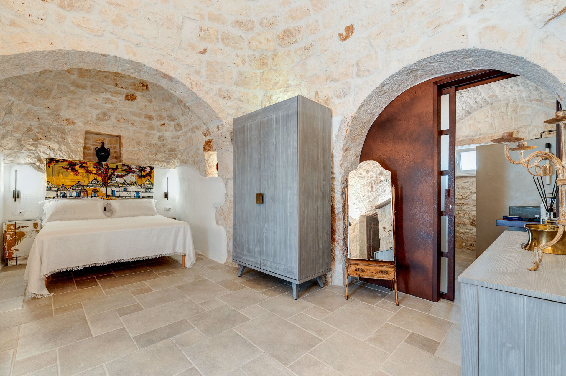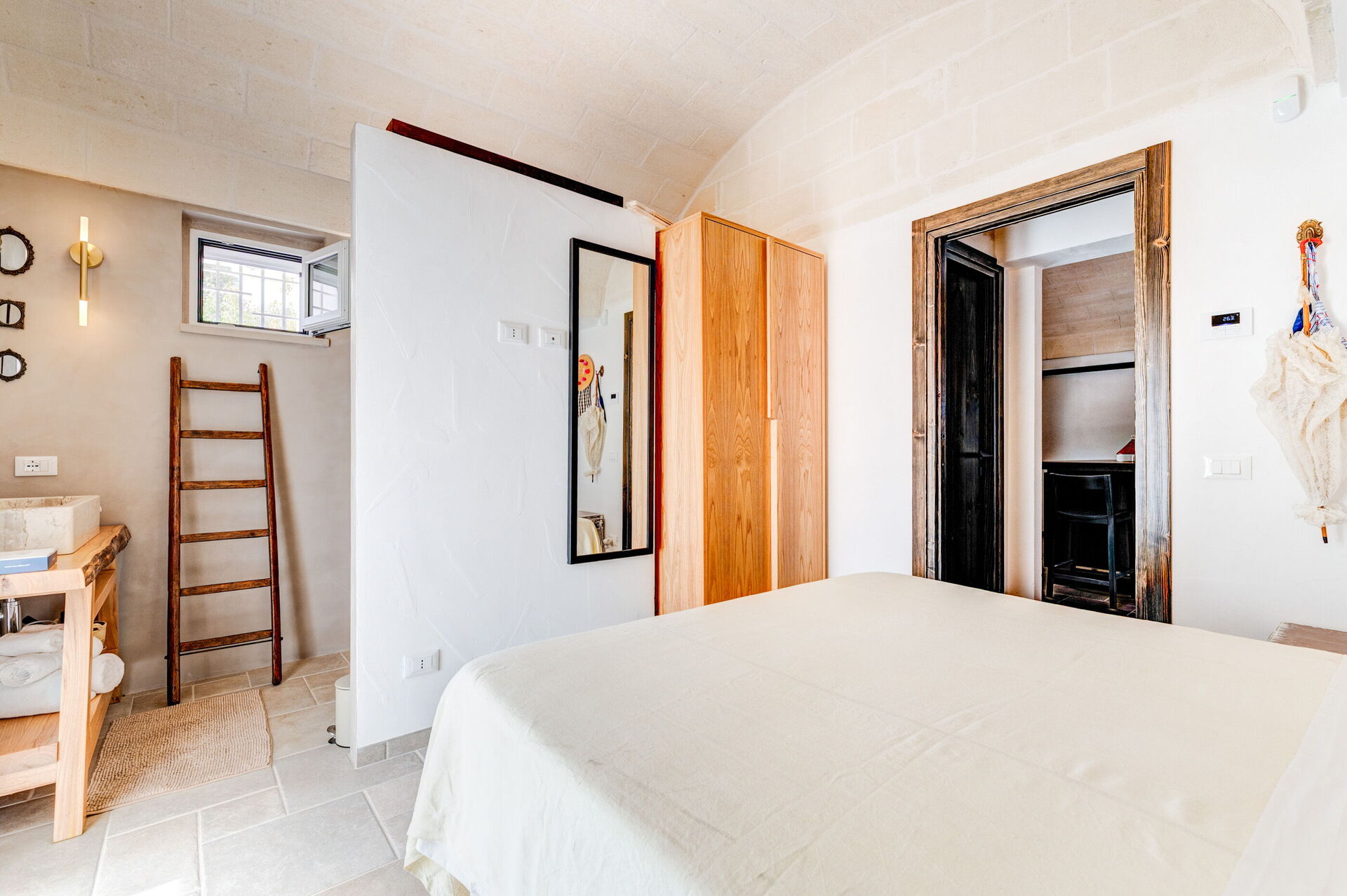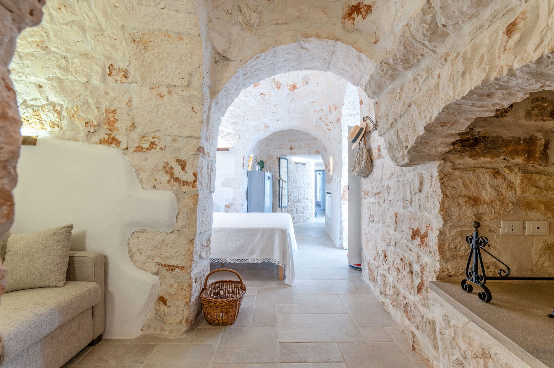 Trulli di Luccio er en trullo med privat basseng til leie for ferie i Puglia, på landsbygda ved den berømte "hvite byen" Ostuni. Denne karakteristiske tradisjonelle apuliske boligen ligger i en flott landlig kontekst omgitt av hundre år gamle oliventrær. Hvis du leter etter en ferie preget av ro og natur, er denne eiendommen perfekt for dine behov. Innvendig er den smakfullt og enkelt innredet, med en kontrast mellom klassisk stil og tradisjonelle materialer som lokal stein og tre. De koselige rommene er utstyrt med alle fasiliteter og har plass til opptil 6 personer fordelt på 3 soverom. Ute har eiendommen, i tillegg til et flott basseng til eksklusiv bruk for gjestene, store områder for å nyte ferien utendørs: en stor veranda nær bassenget med utekjøkken, grill og et fint avslapningsområde står til gjestenes disposisjon. Trulli di Luccio er strategisk plassert bare 8 km fra den vakre byen Ostuni, og ved å leie denne villaen kan du enkelt utforske de viktigste turistmålene i området: fra strendene i Baia dei Camerini til naturreservatet Torre Guaceto og de berømte historiske sentrene som Alberobello, Locorotondo, Carovigno og Polignano a Mare.