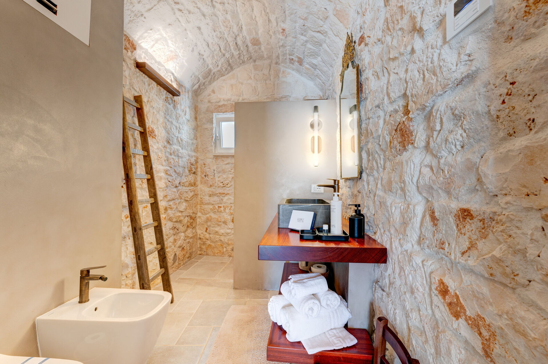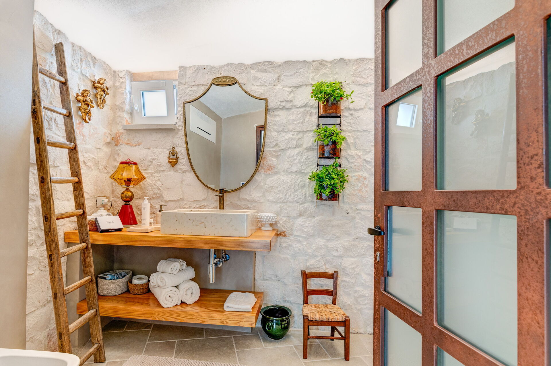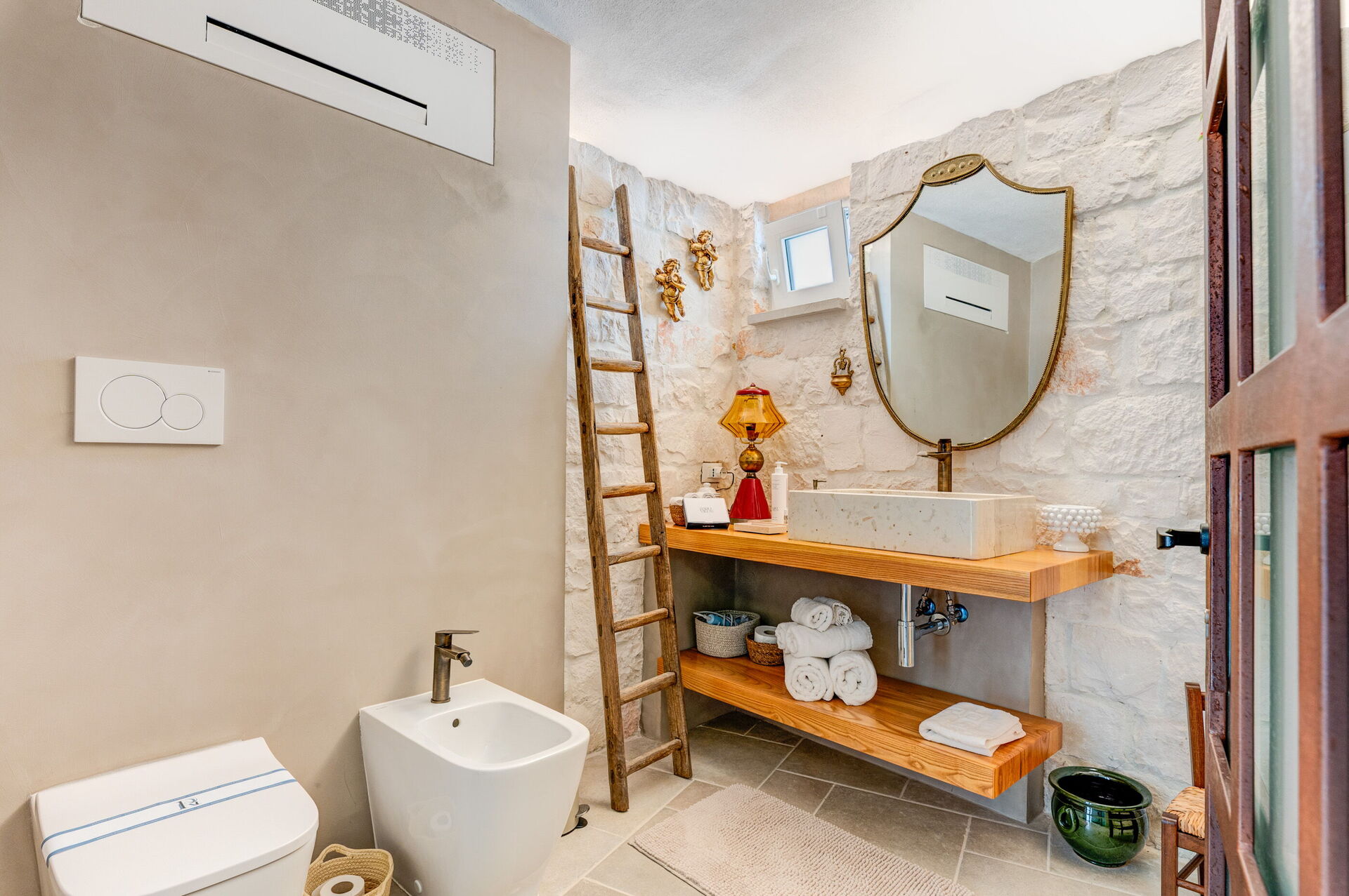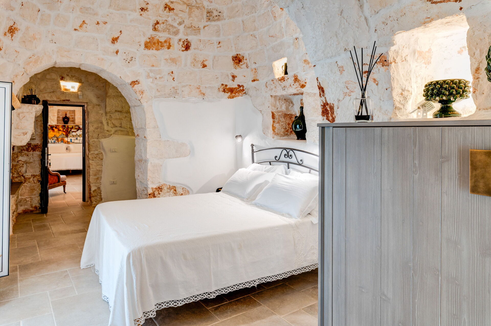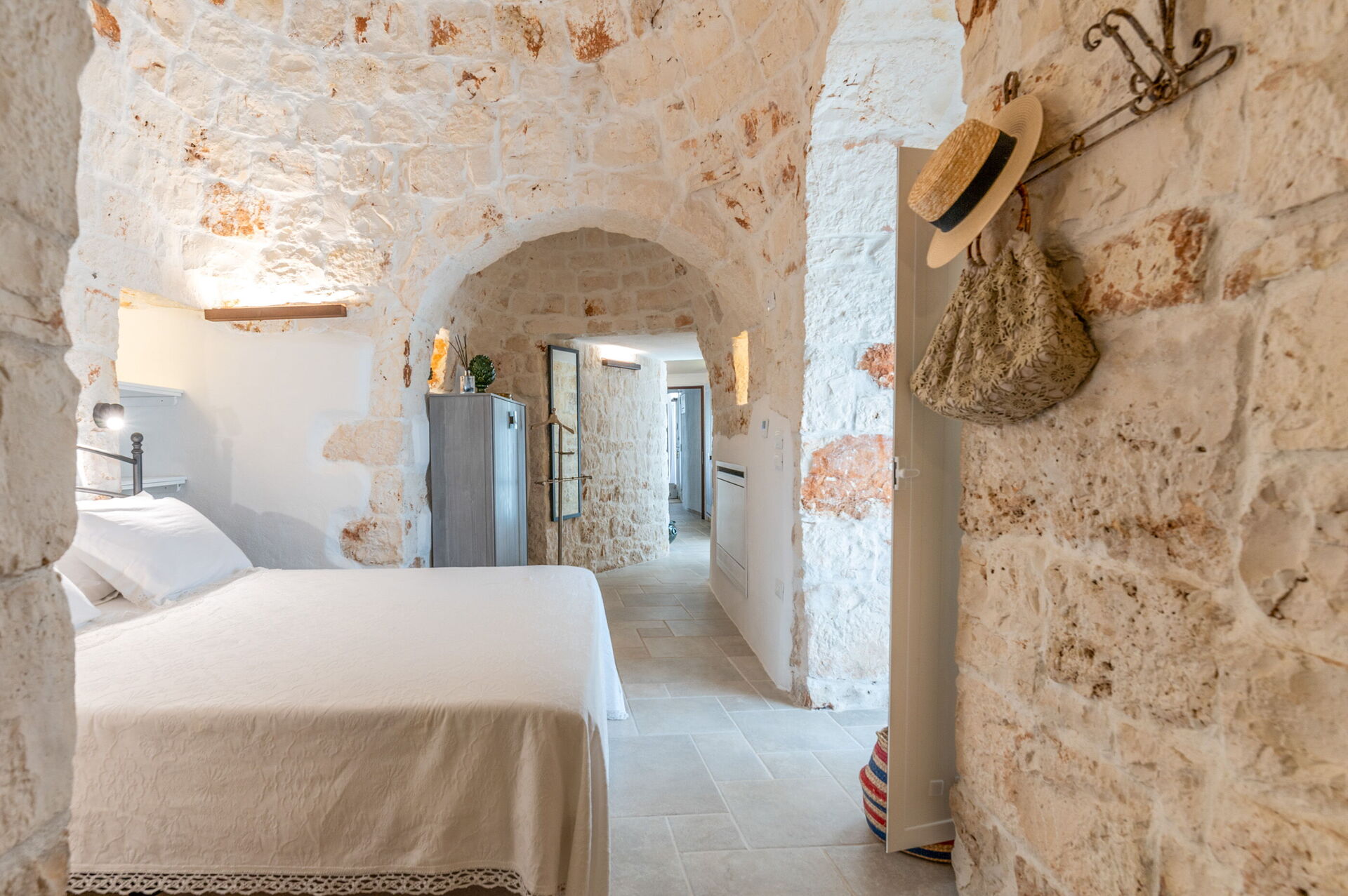 Trulli di Luccio er en trullo med privat basseng til leie for ferie i Puglia, på landsbygda ved den berømte "hvite byen" Ostuni. Denne karakteristiske tradisjonelle apuliske boligen ligger i en flott landlig kontekst omgitt av hundre år gamle oliventrær. Hvis du leter etter en ferie preget av ro og natur, er denne eiendommen perfekt for dine behov. Innvendig er den smakfullt og enkelt innredet, med en kontrast mellom klassisk stil og tradisjonelle materialer som lokal stein og tre. De koselige rommene er utstyrt med alle fasiliteter og har plass til opptil 6 personer fordelt på 3 soverom. Ute har eiendommen, i tillegg til et flott basseng til eksklusiv bruk for gjestene, store områder for å nyte ferien utendørs: en stor veranda nær bassenget med utekjøkken, grill og et fint avslapningsområde står til gjestenes disposisjon. Trulli di Luccio er strategisk plassert bare 8 km fra den vakre byen Ostuni, og ved å leie denne villaen kan du enkelt utforske de viktigste turistmålene i området: fra strendene i Baia dei Camerini til naturreservatet Torre Guaceto og de berømte historiske sentrene som Alberobello, Locorotondo, Carovigno og Polignano a Mare.