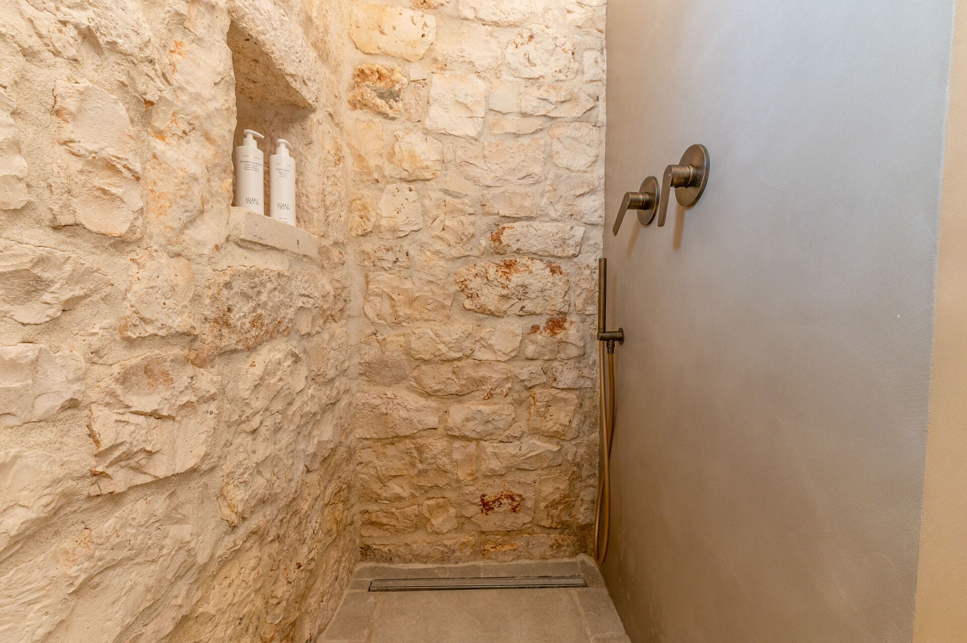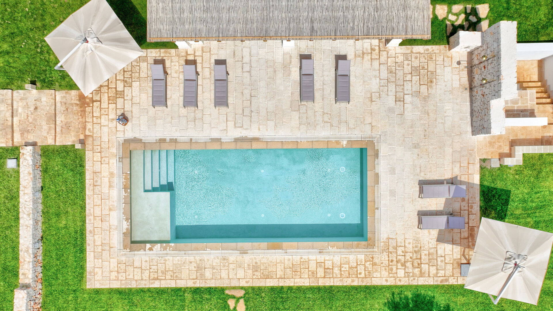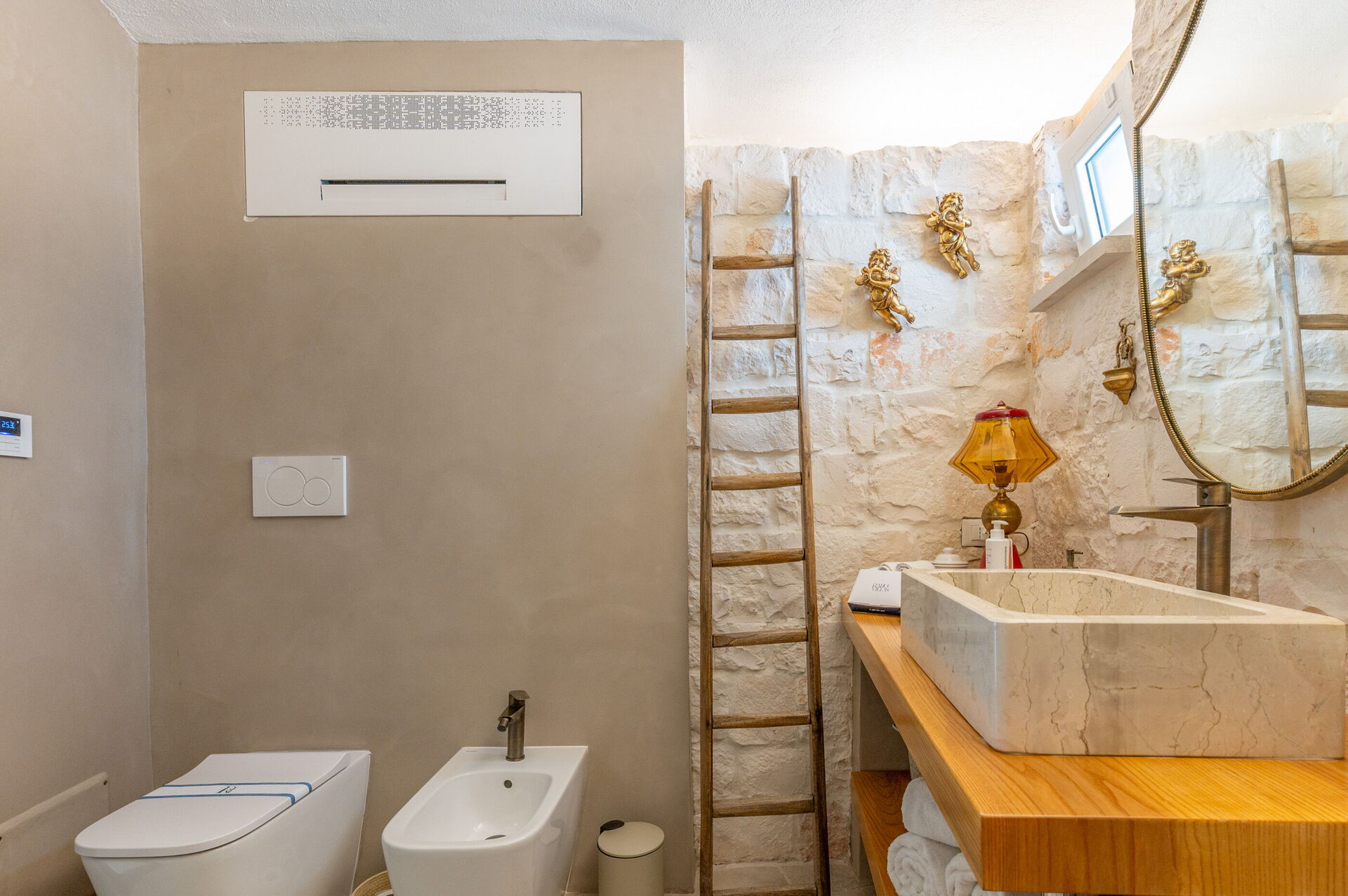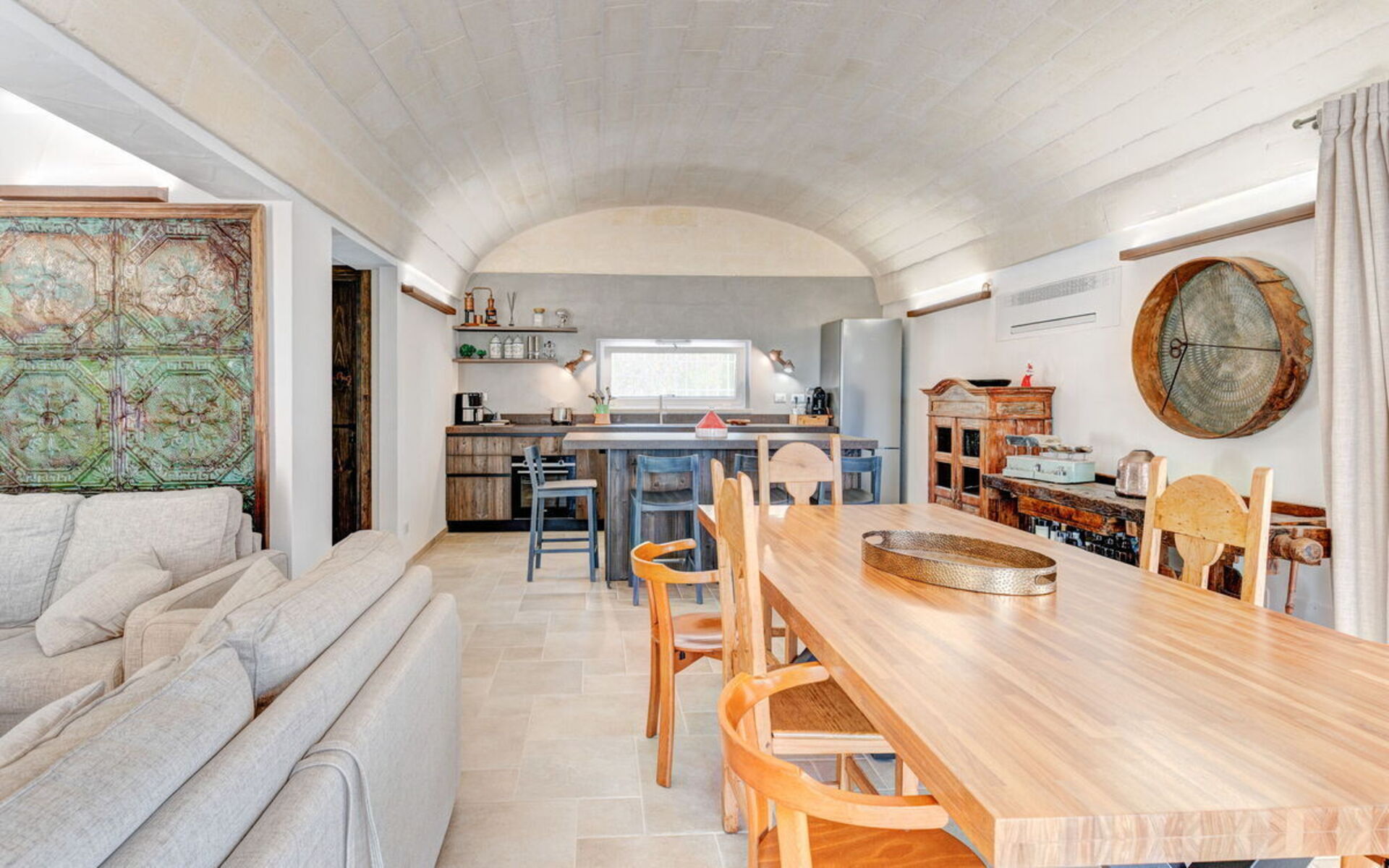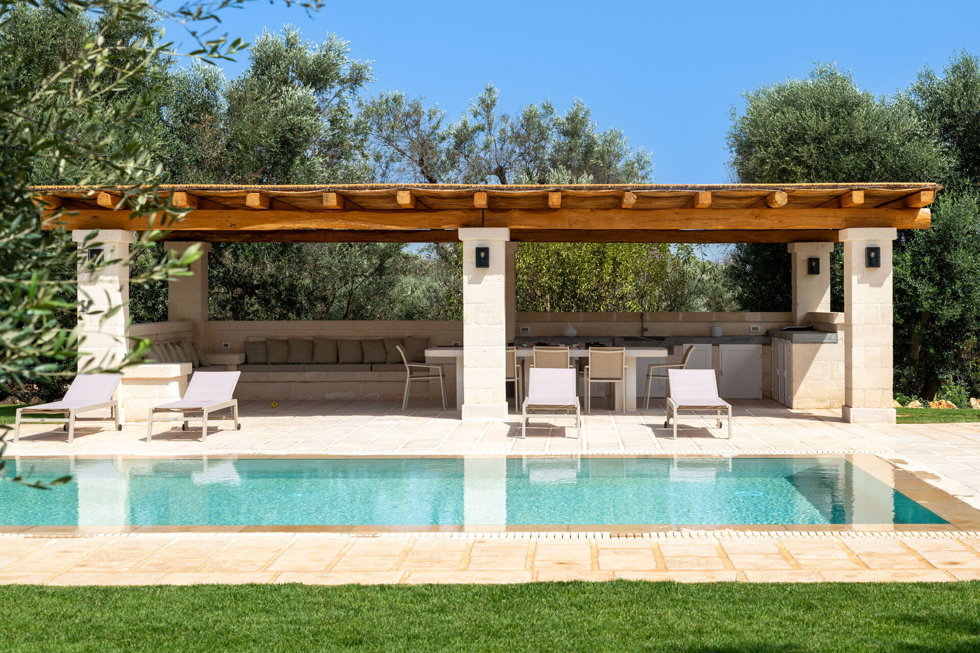 Trulli di Luccio er en trullo med privat basseng til leie for ferie i Puglia, på landsbygda ved den berømte "hvite byen" Ostuni. Denne karakteristiske tradisjonelle apuliske boligen ligger i en flott landlig kontekst omgitt av hundre år gamle oliventrær. Hvis du leter etter en ferie preget av ro og natur, er denne eiendommen perfekt for dine behov. Innvendig er den smakfullt og enkelt innredet, med en kontrast mellom klassisk stil og tradisjonelle materialer som lokal stein og tre. De koselige rommene er utstyrt med alle fasiliteter og har plass til opptil 6 personer fordelt på 3 soverom. Ute har eiendommen, i tillegg til et flott basseng til eksklusiv bruk for gjestene, store områder for å nyte ferien utendørs: en stor veranda nær bassenget med utekjøkken, grill og et fint avslapningsområde står til gjestenes disposisjon. Trulli di Luccio er strategisk plassert bare 8 km fra den vakre byen Ostuni, og ved å leie denne villaen kan du enkelt utforske de viktigste turistmålene i området: fra strendene i Baia dei Camerini til naturreservatet Torre Guaceto og de berømte historiske sentrene som Alberobello, Locorotondo, Carovigno og Polignano a Mare.