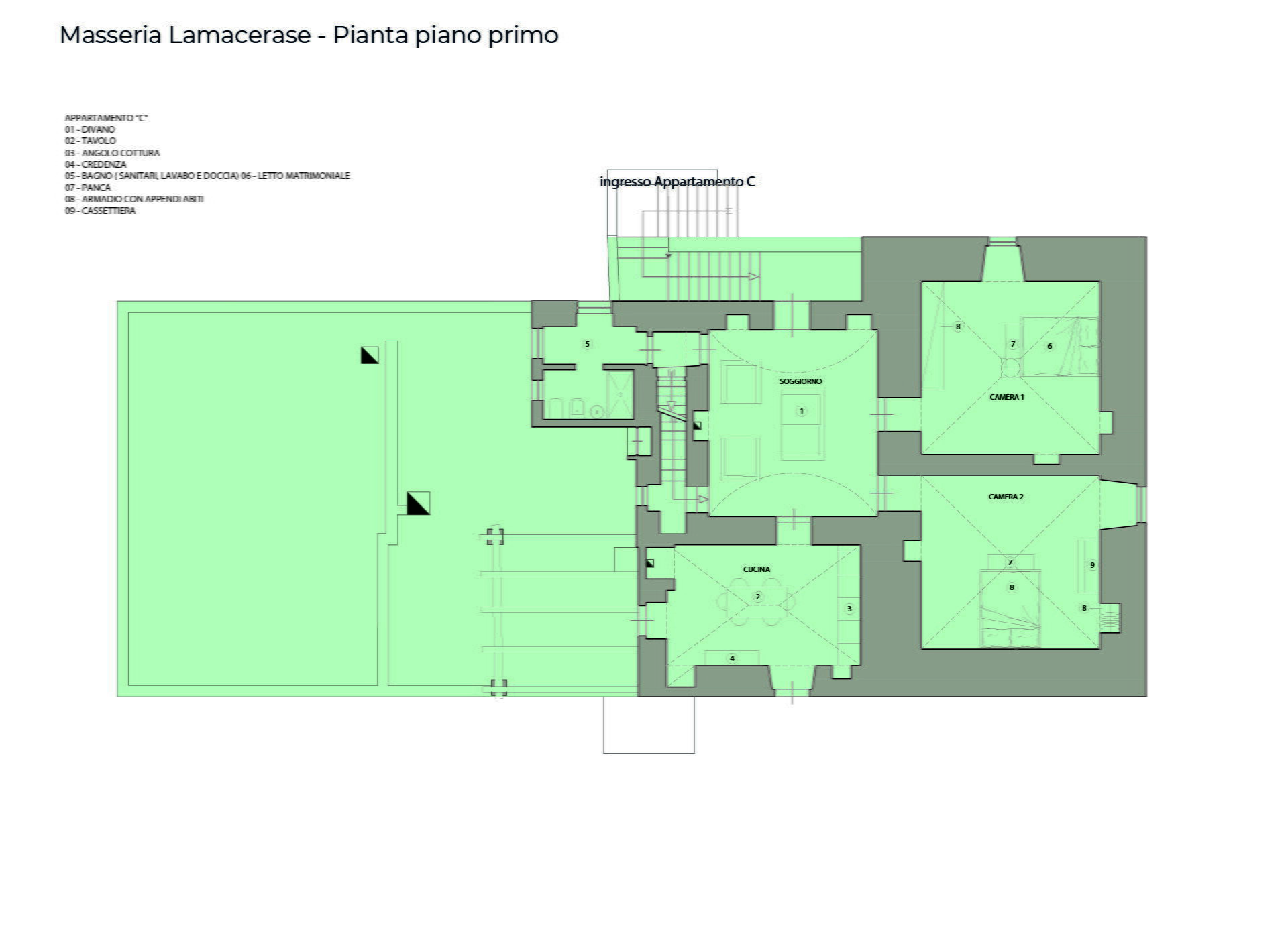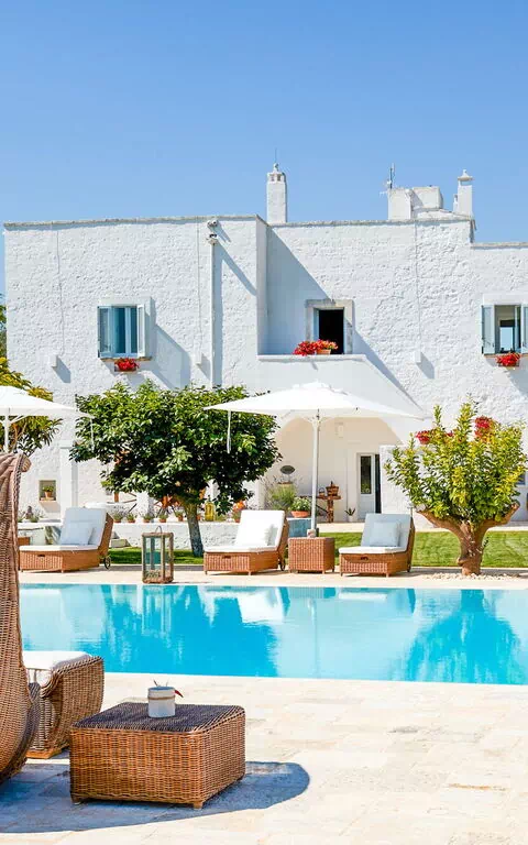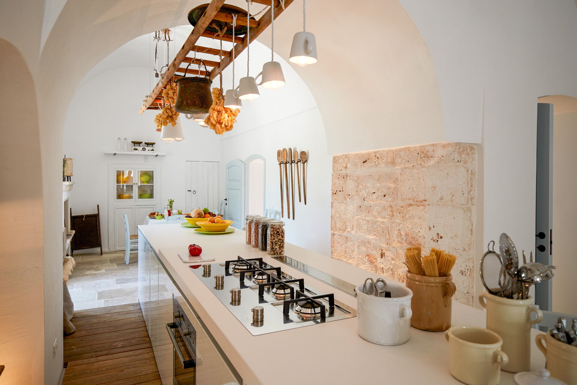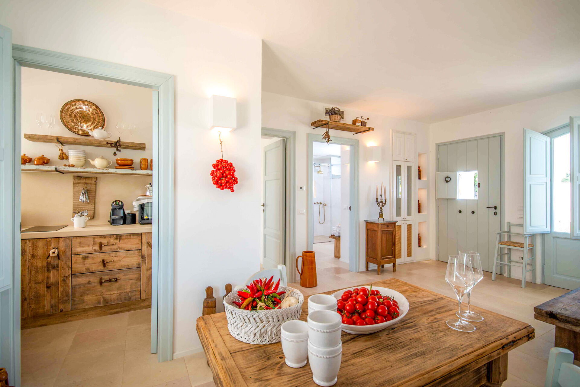 De typiske trekkene i Salento er hvitt, tre og tuff. Disse trekkene kombineres på en harmonisk og smakfull måte med alle bekvemmeligheter en gjest kan ønske seg i et luksus feriehus.