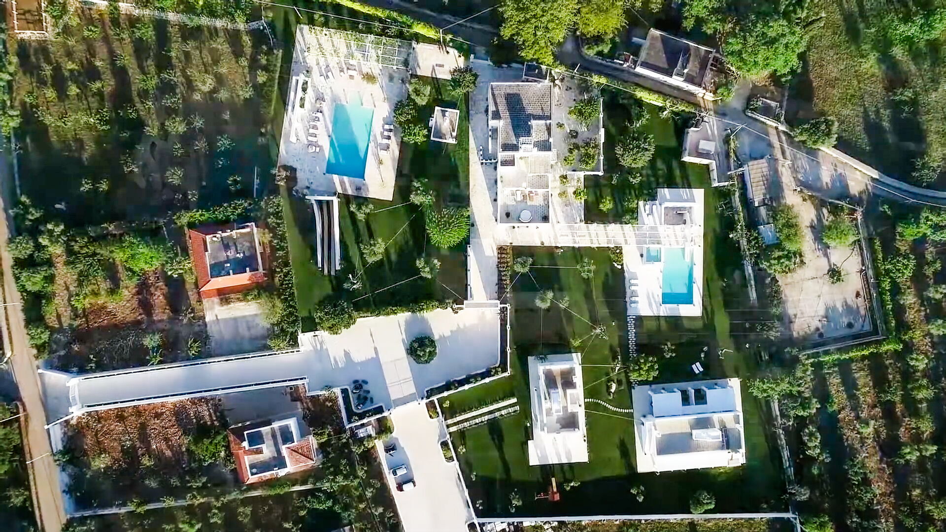 Ferie-eiendommen består av to komplekser med tre leiligheter i det ene og to suiter i det andre, noe som gjør den perfekt for en luksuriøs og fredelig ferie med familie og venner.
