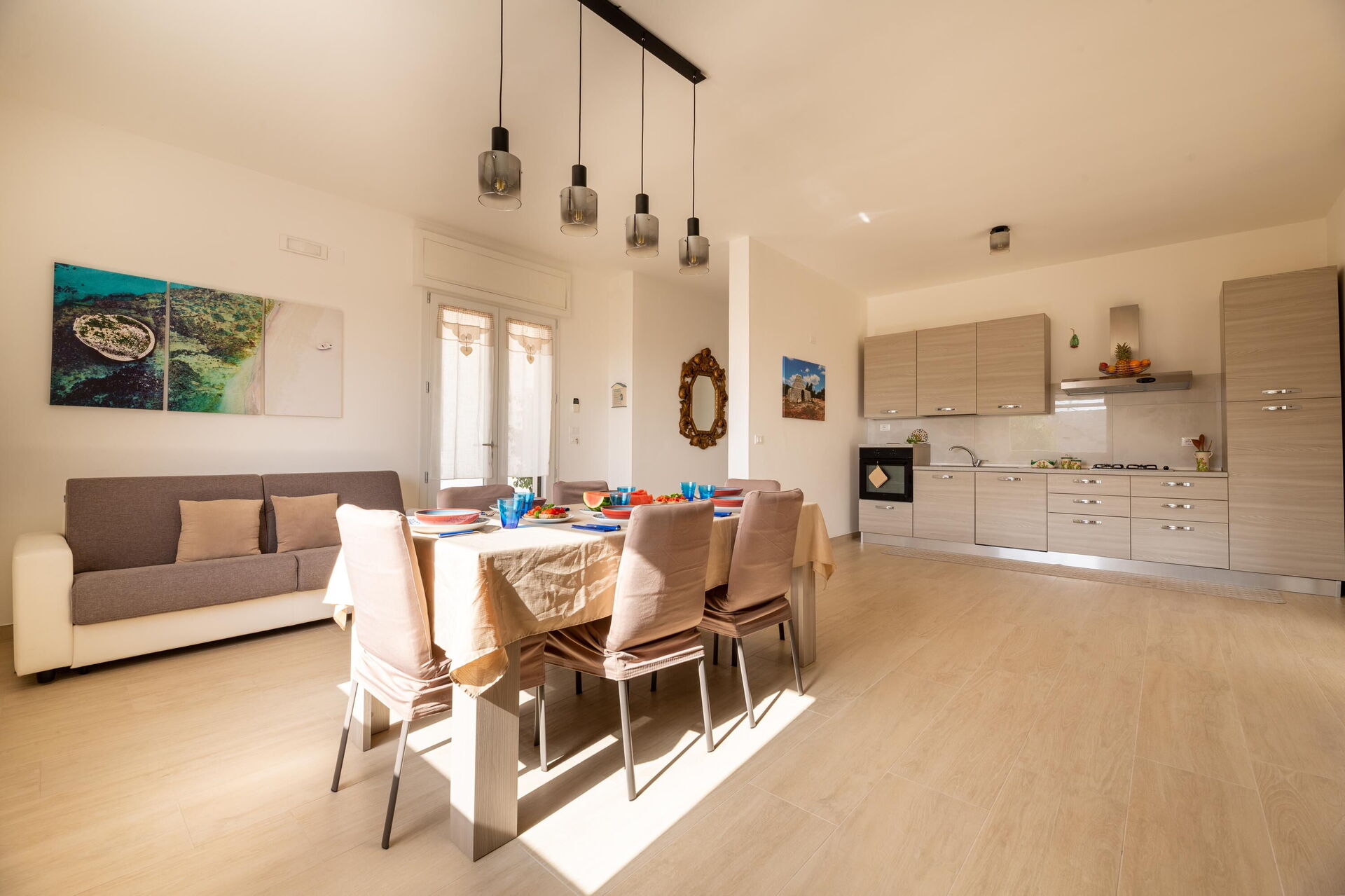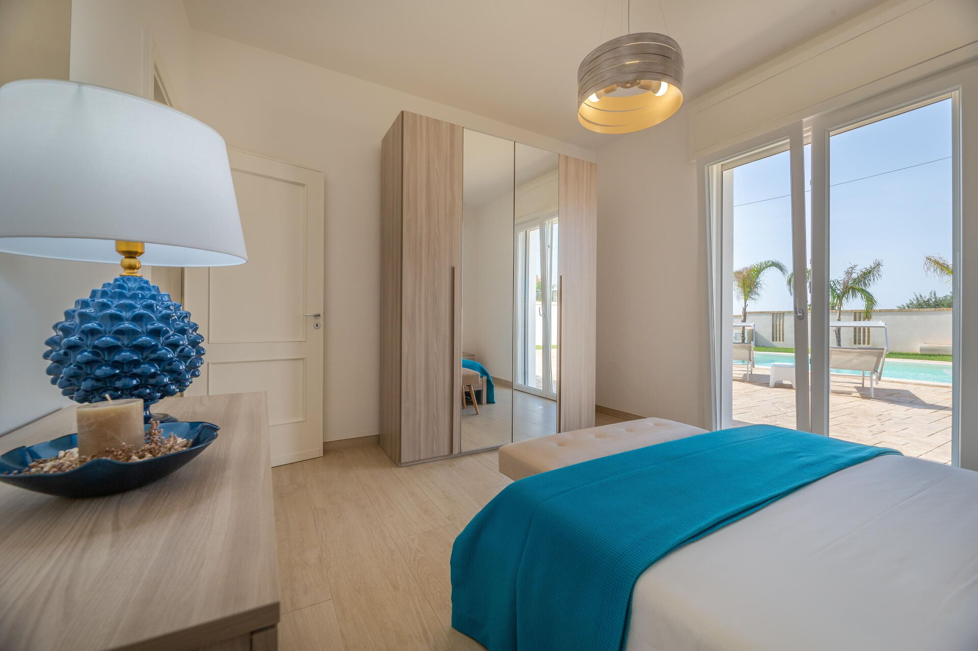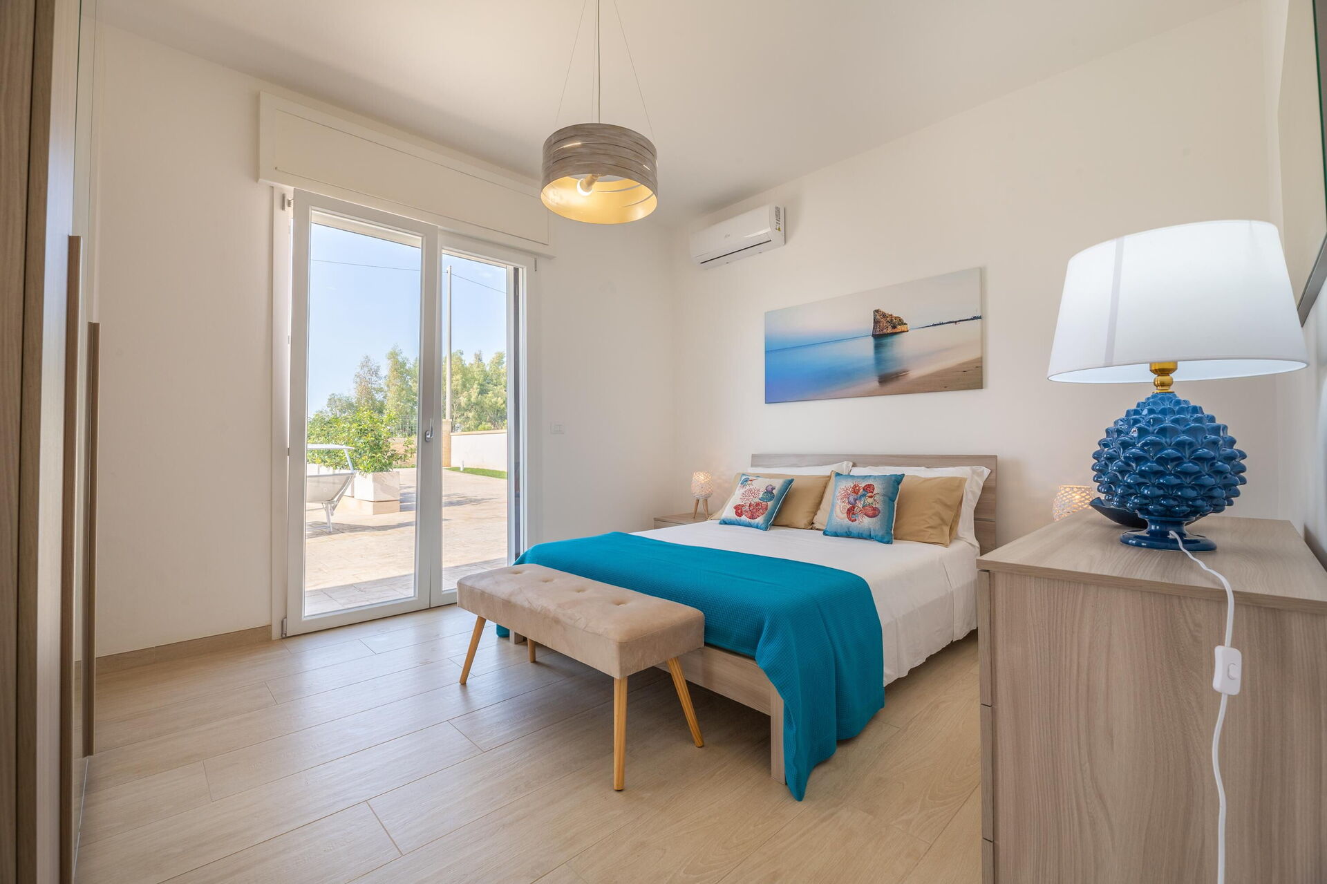 Interiøret er koselig, lyst og smakfullt innredet for å imøtekomme behovene til en moderne livsstil. Villa Palibella har plass til opptil sju personer med tre soverom og en enkel sovesofa i stuen.