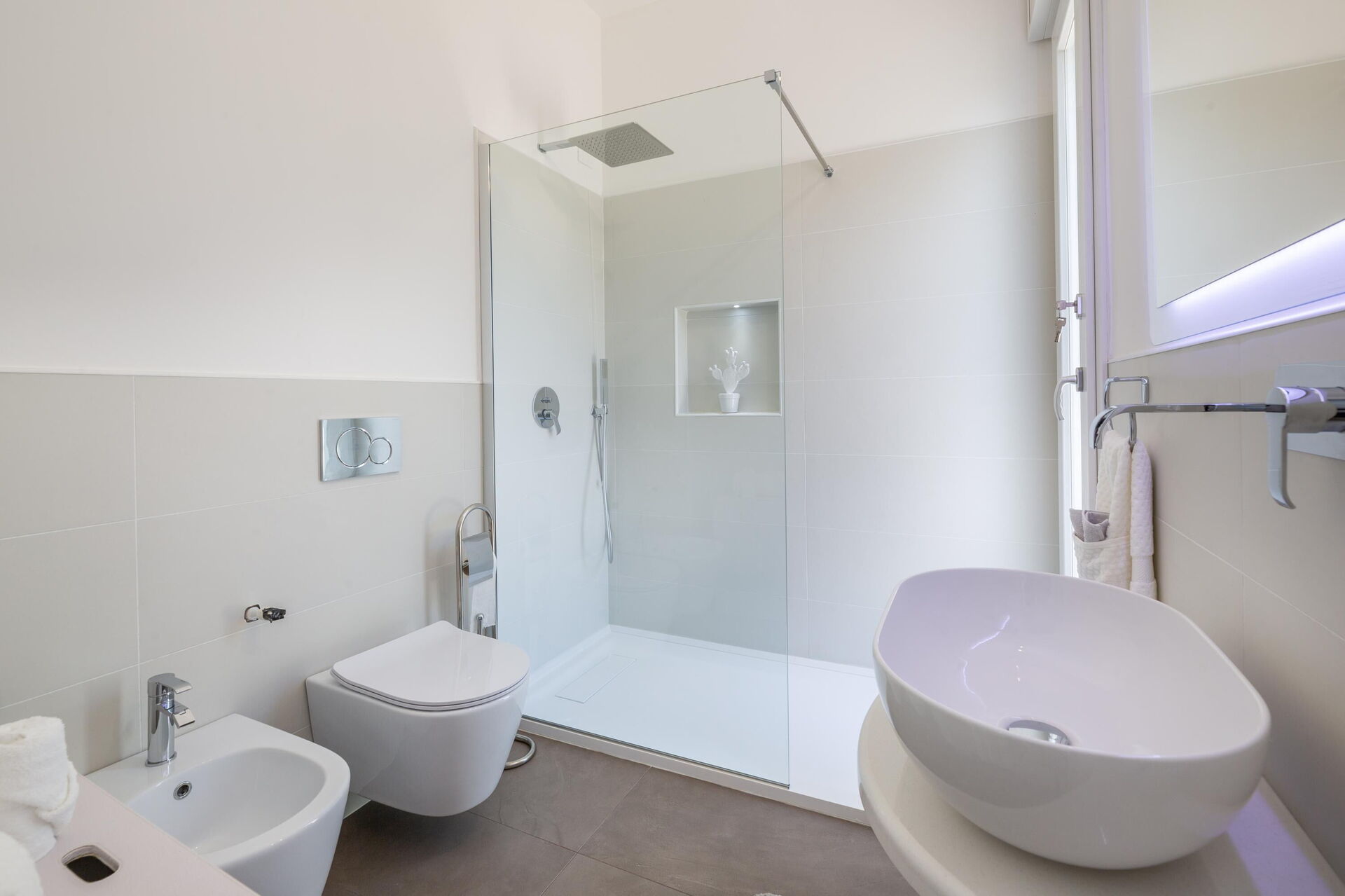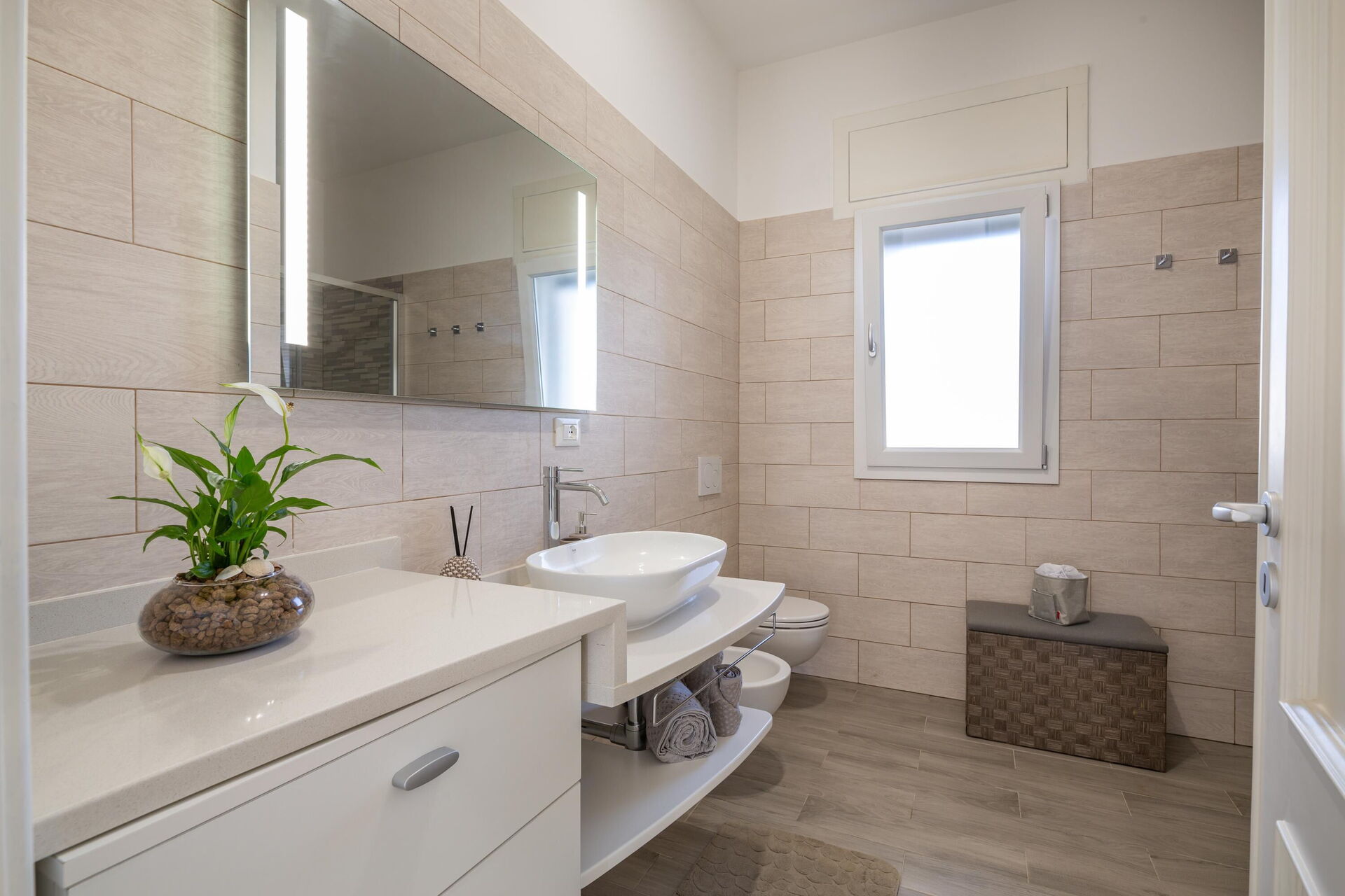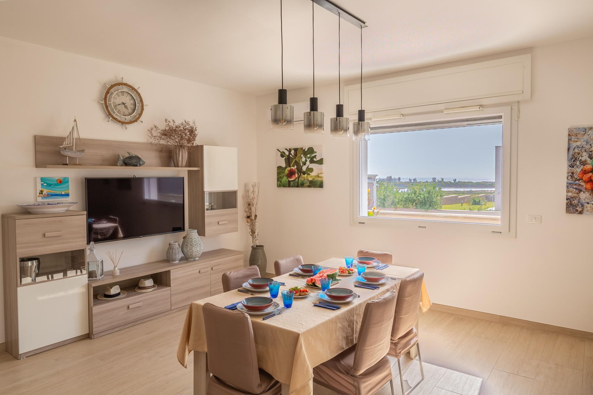 Interiøret er koselig, lyst og smakfullt innredet for å imøtekomme behovene til en moderne livsstil. Villa Palibella har plass til opptil sju personer med tre soverom og en enkel sovesofa i stuen.
