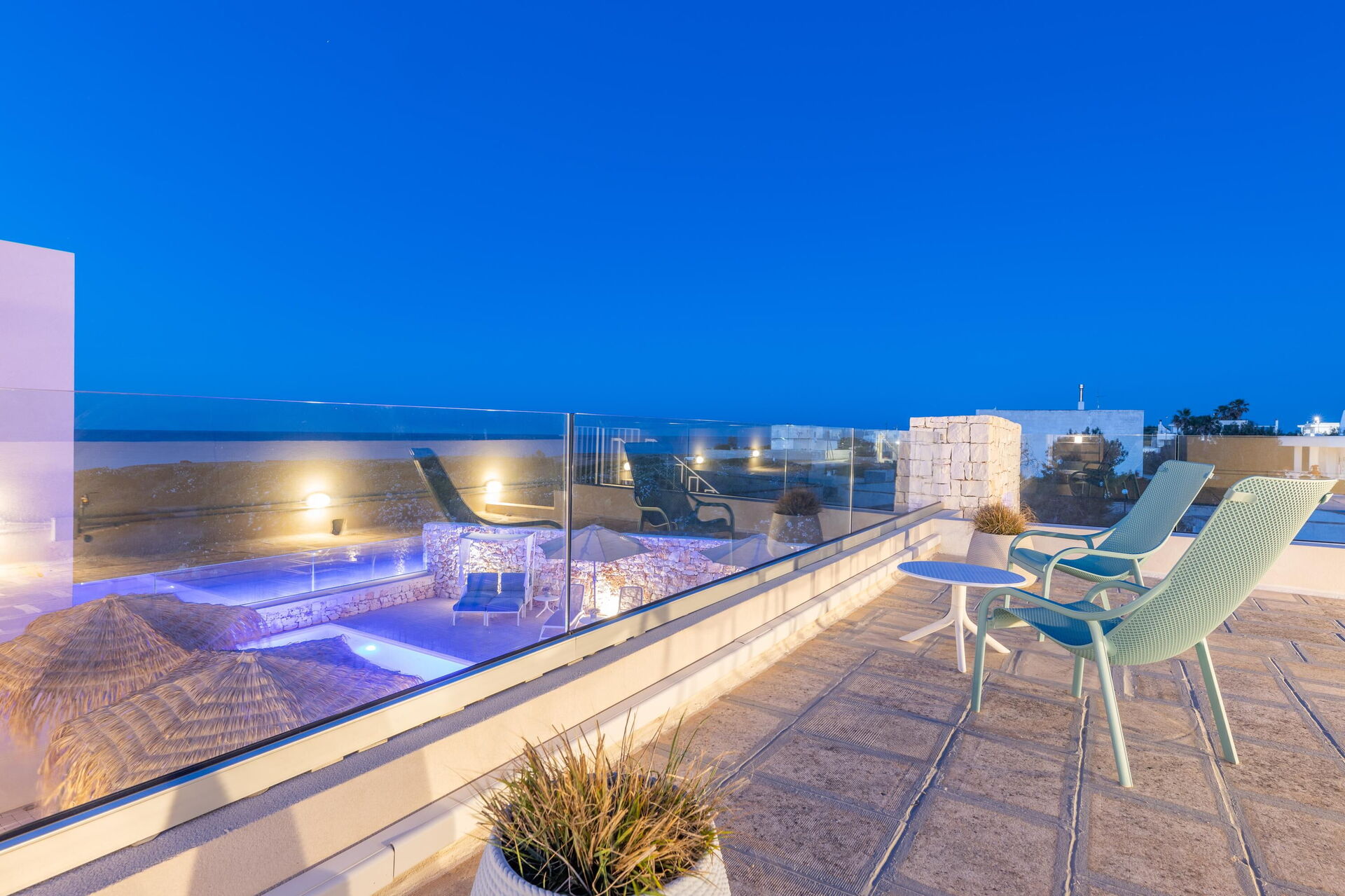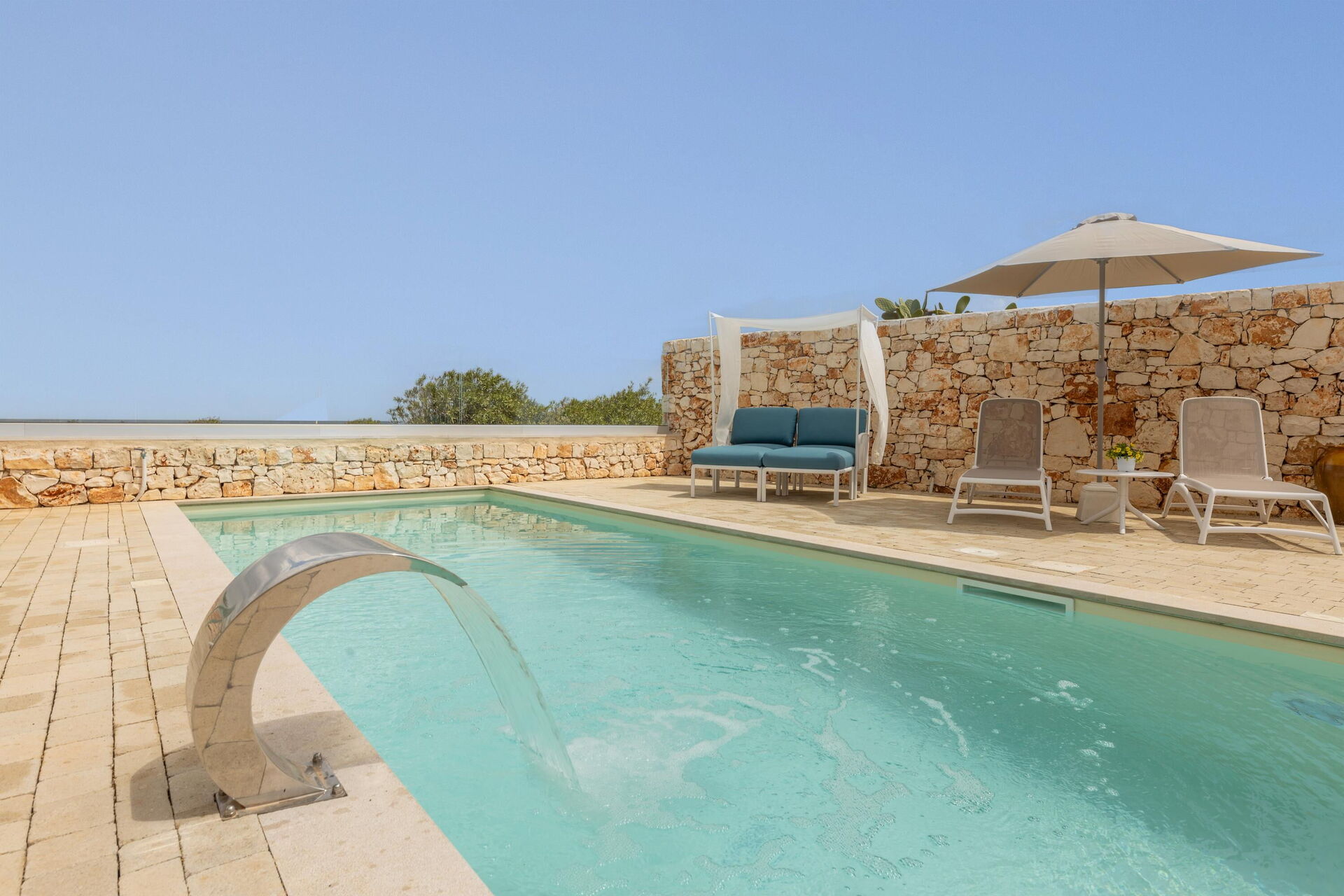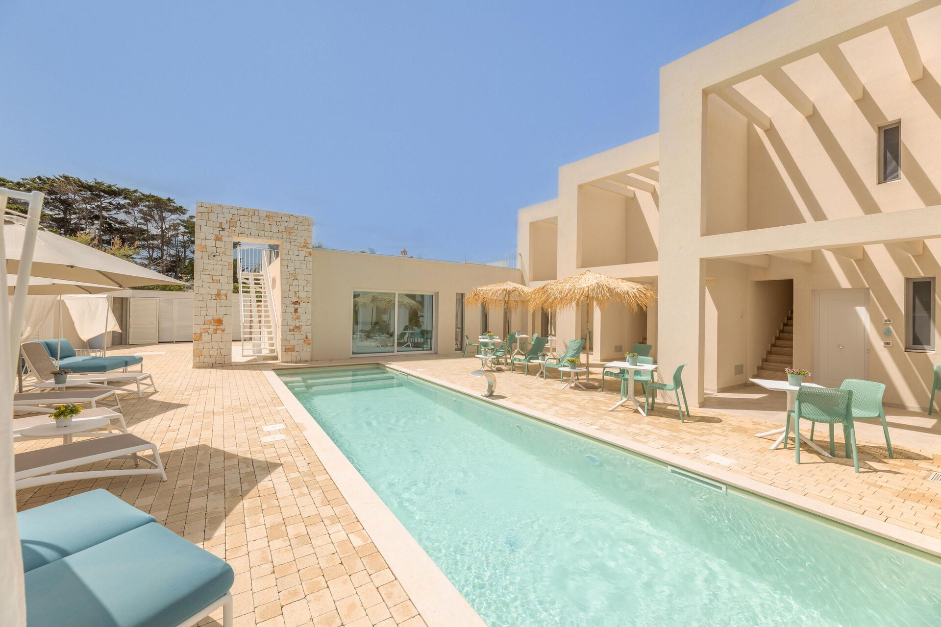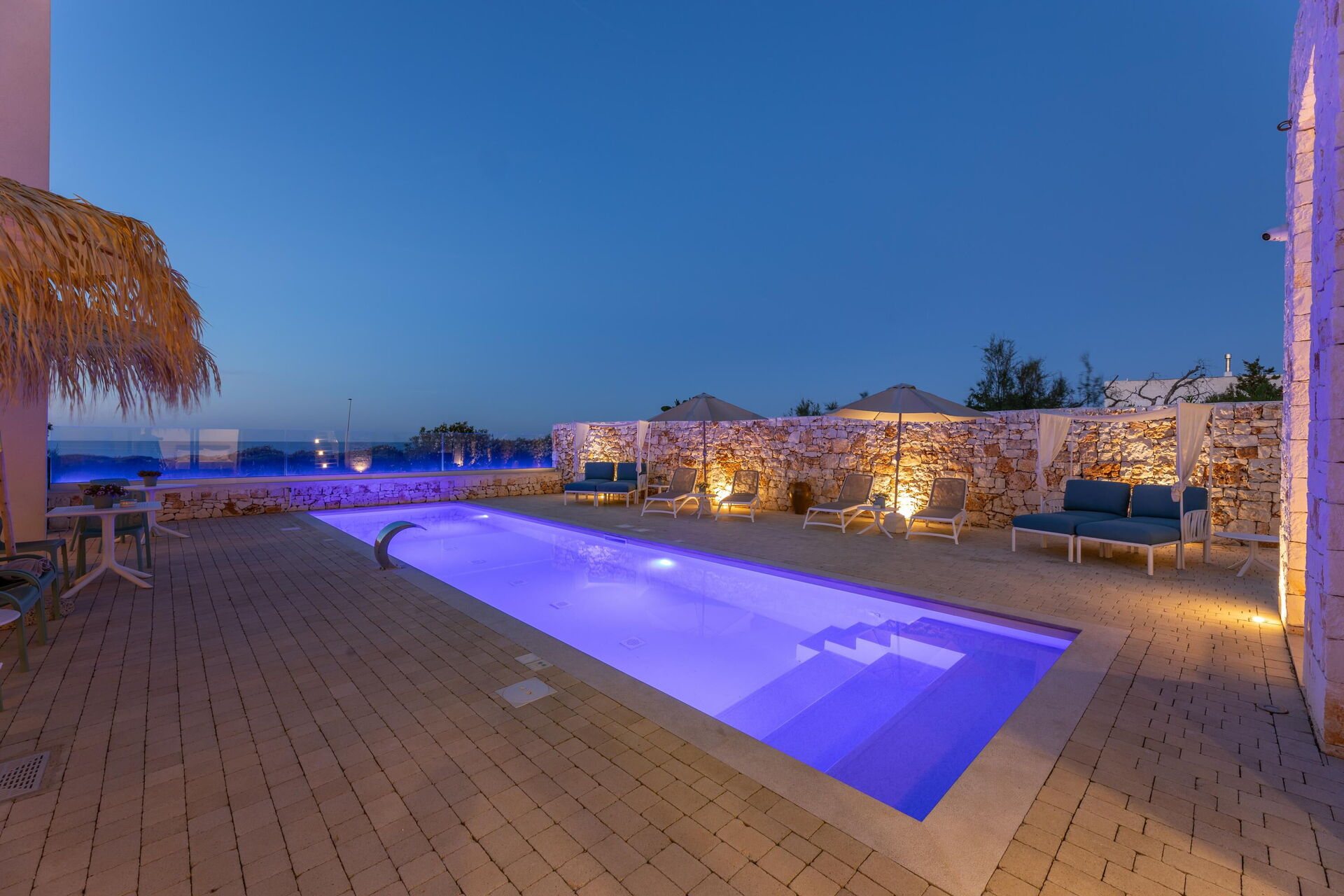 Eiendommen byr på flere fellesområder: du kan slappe av ved bassenget, på solterrassen og på terrassen med en storslått, vidstrakt havutsikt; alt dette gjør villaen perfekt for en avslappende ferie sammen med venner eller familie under Puglia sin varme sol.