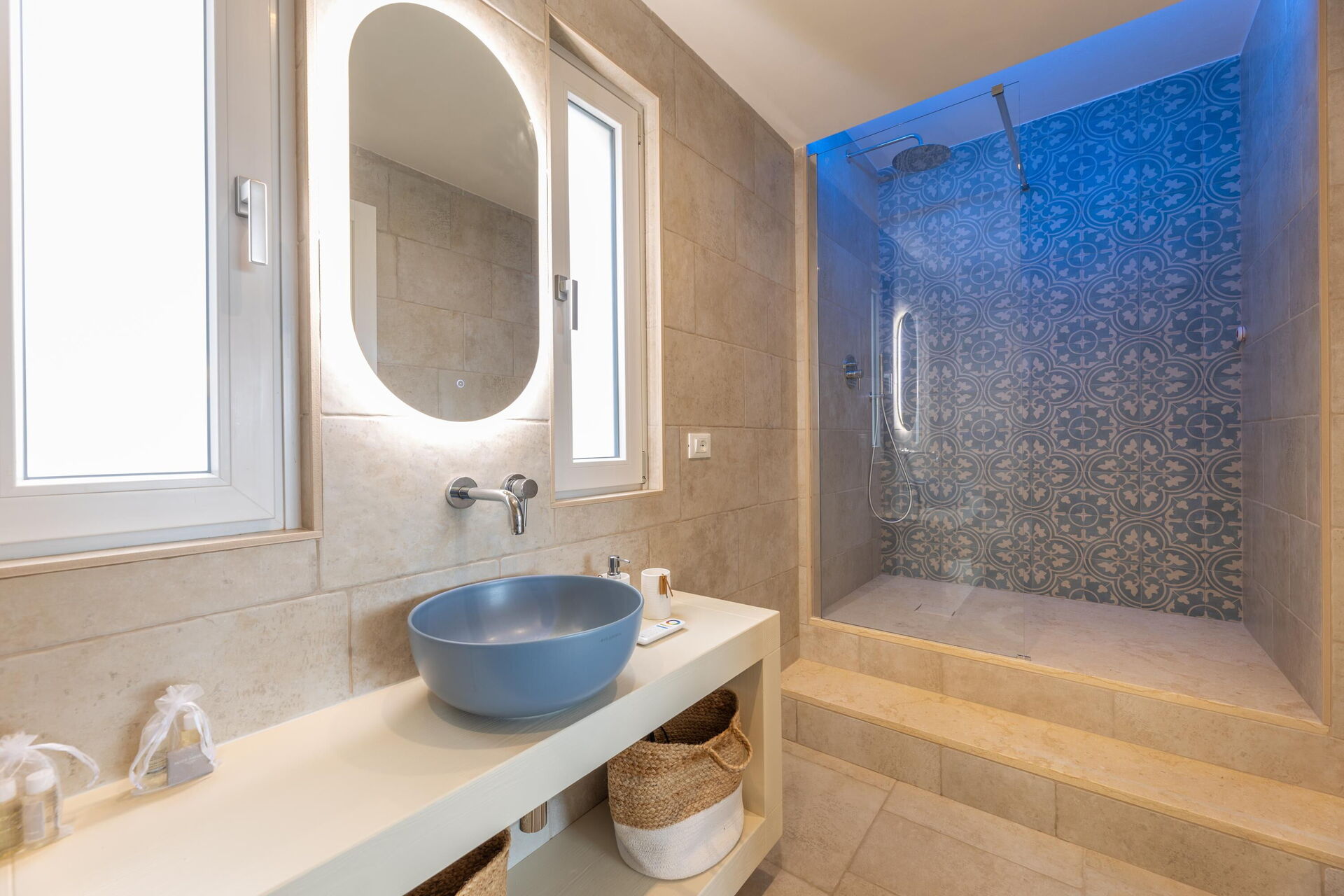 Villaen er innredet med et lyst innbydende interiør, og er designet for å kunne tilby gjestene alle moderne fasiliteter under oppholdet.