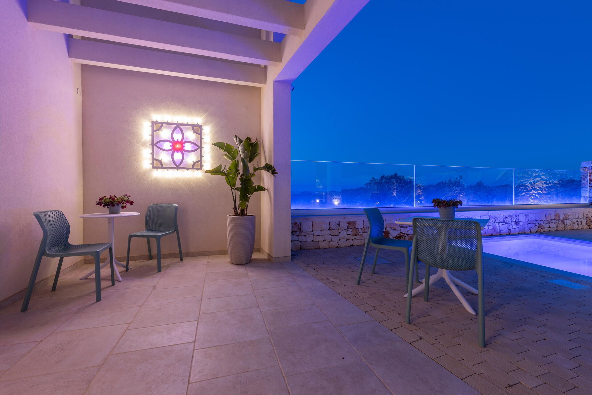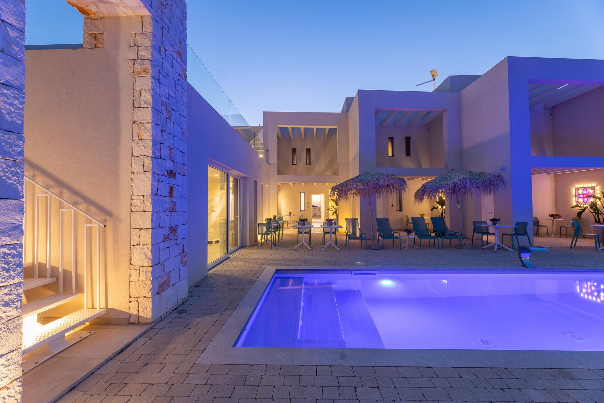 - privat basseng (12 x 3 meter; dybde: 1,50 m; kan varmes opp til ca. 24–28 °C hvis forespurt minst 1 dag før ankomst)