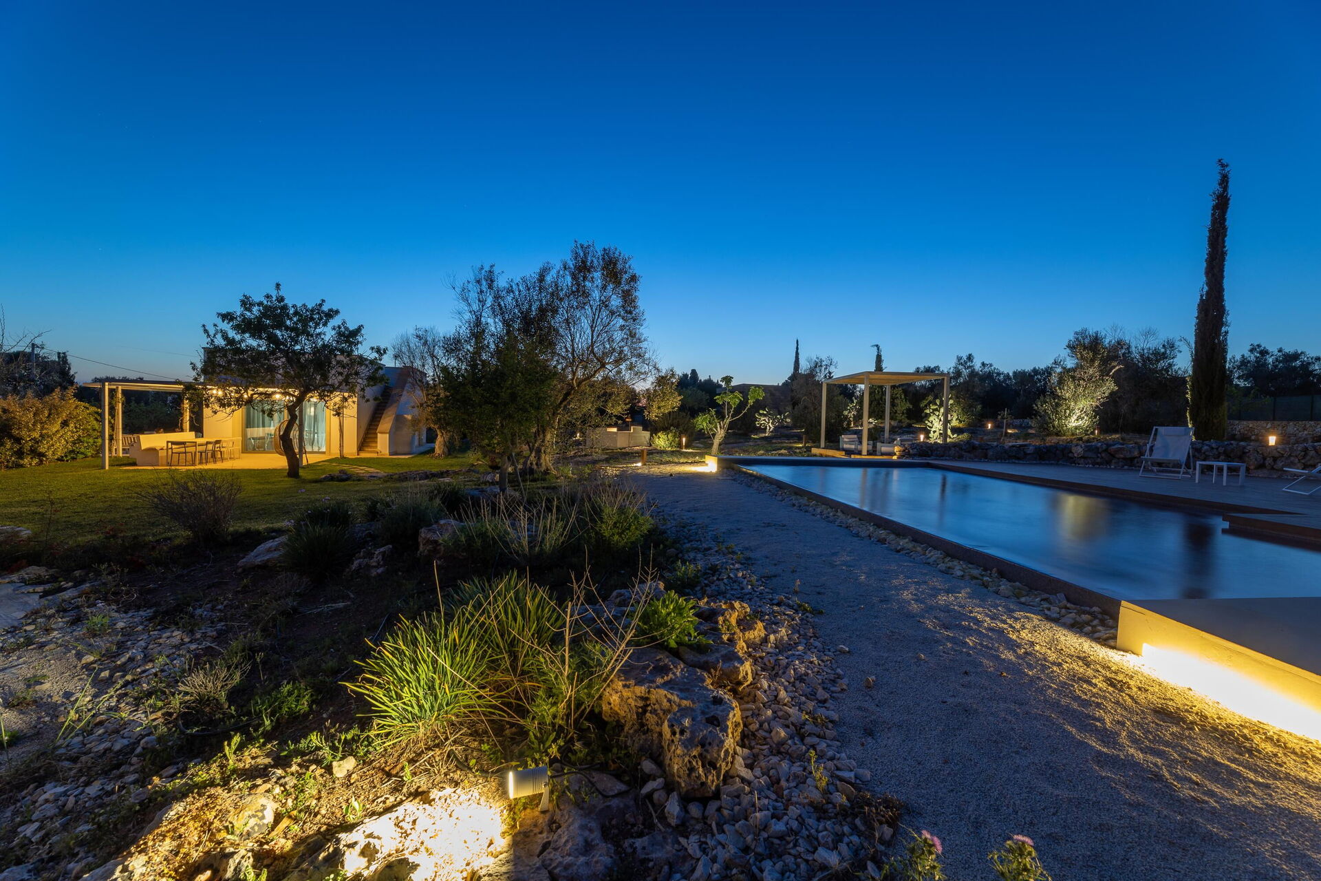 Eiendommen omgis av en vakker olivenlund og en stor hage på ca. 4000 m2 med middelhavsplanter og har en grillplass og en veranda utstyrt med bord og stoler, slik at du kan lage hyggelige grillmåltider sammen med venner og familie mens du nyter de fredelige omgivelsene.