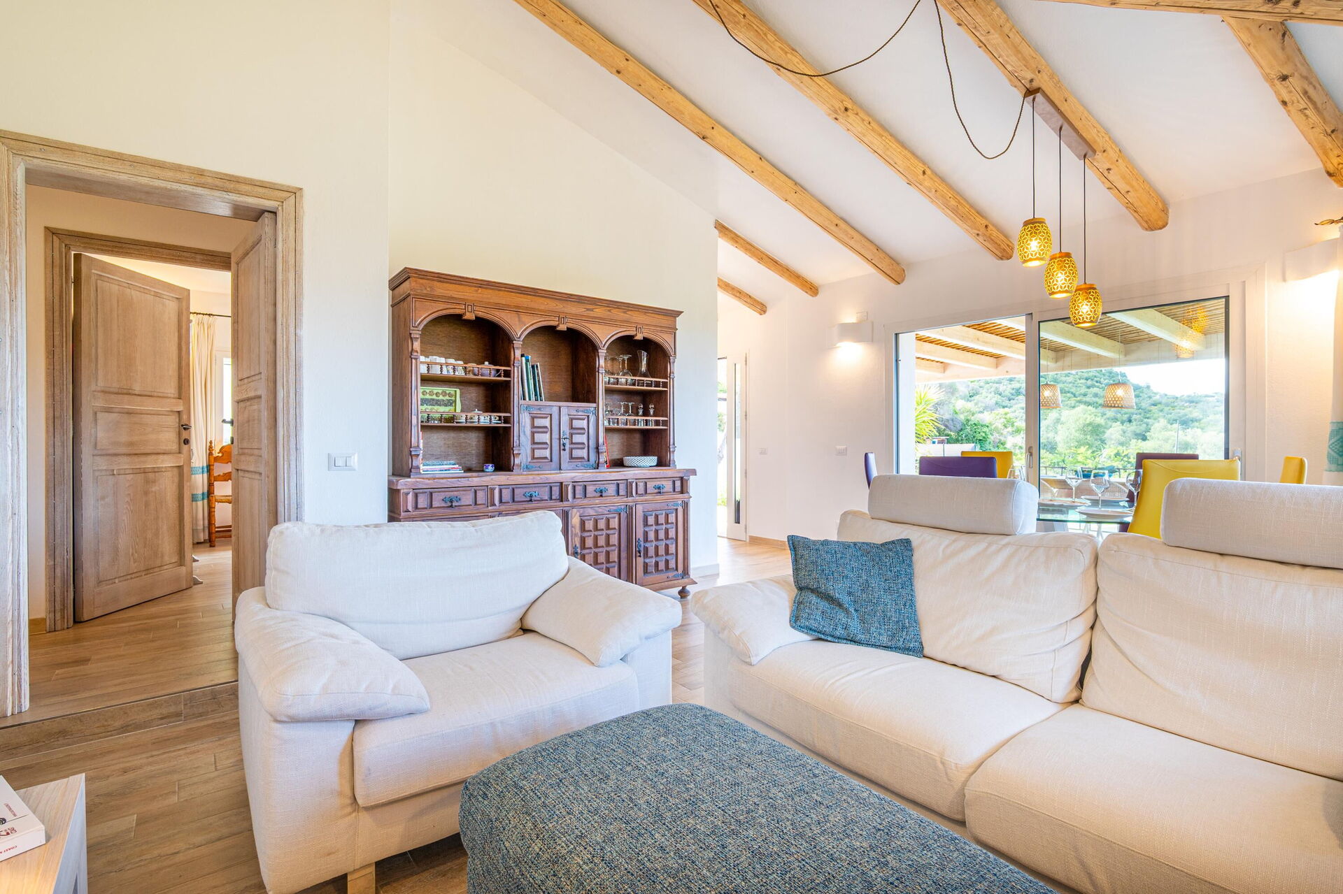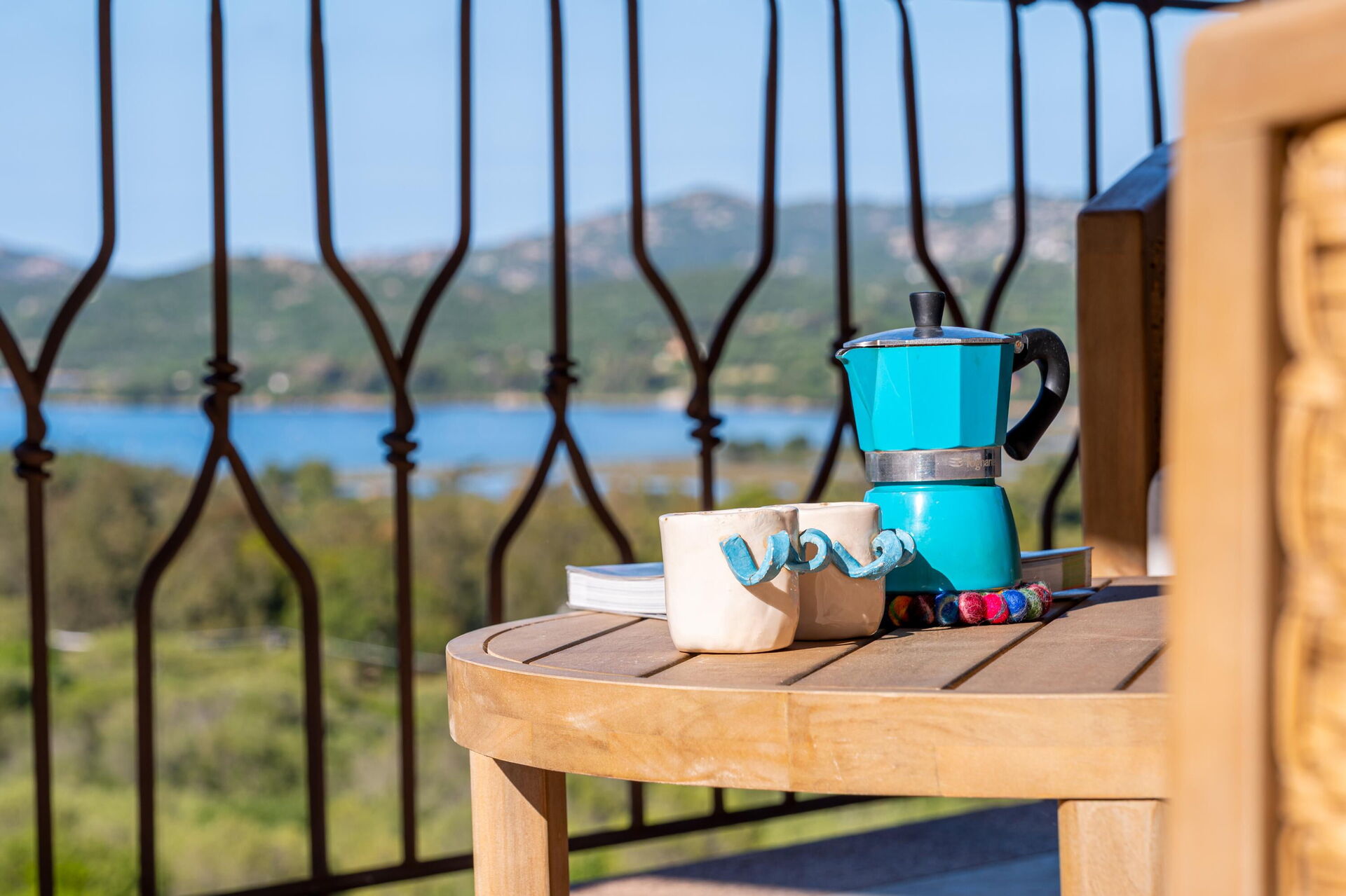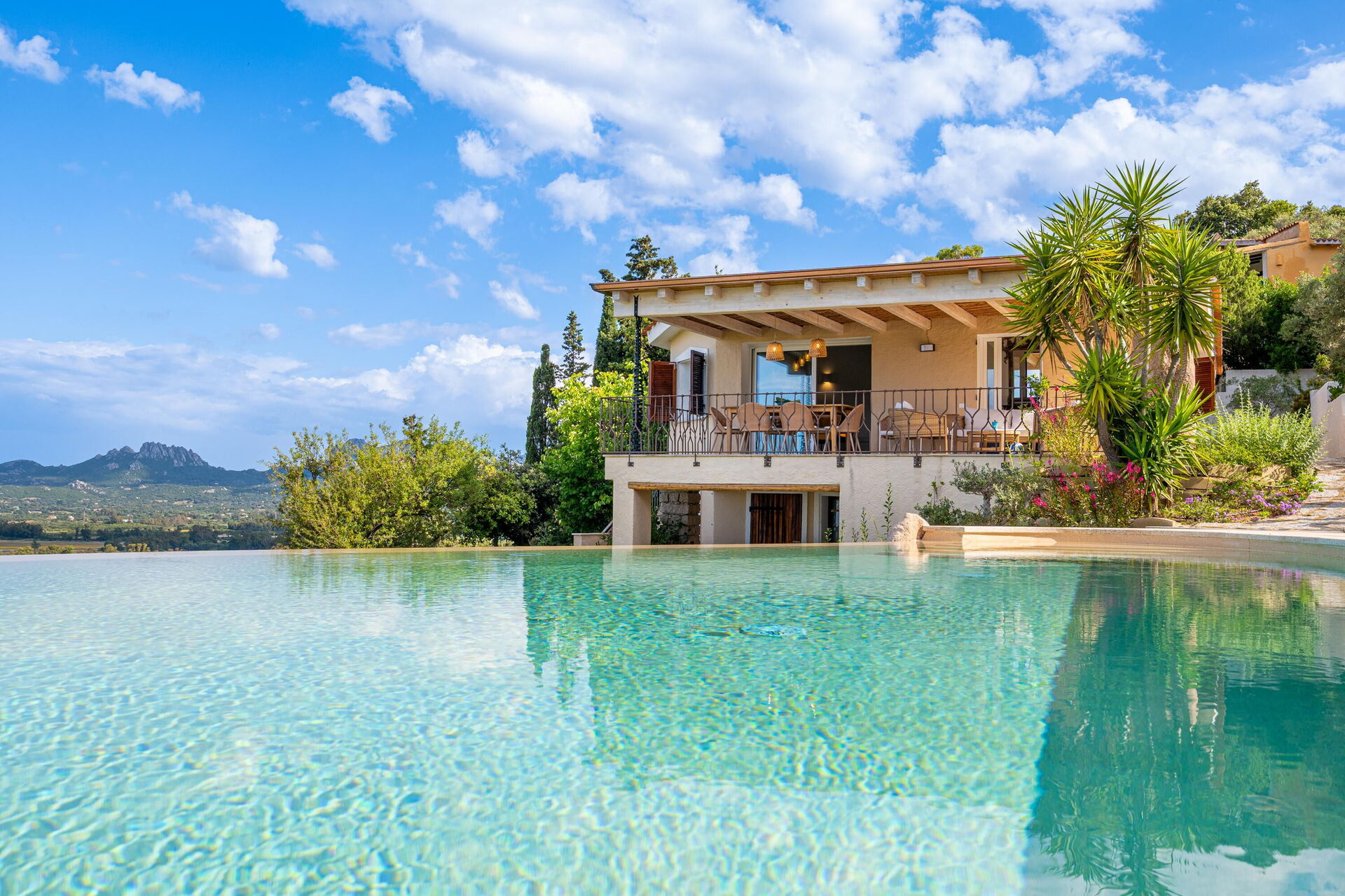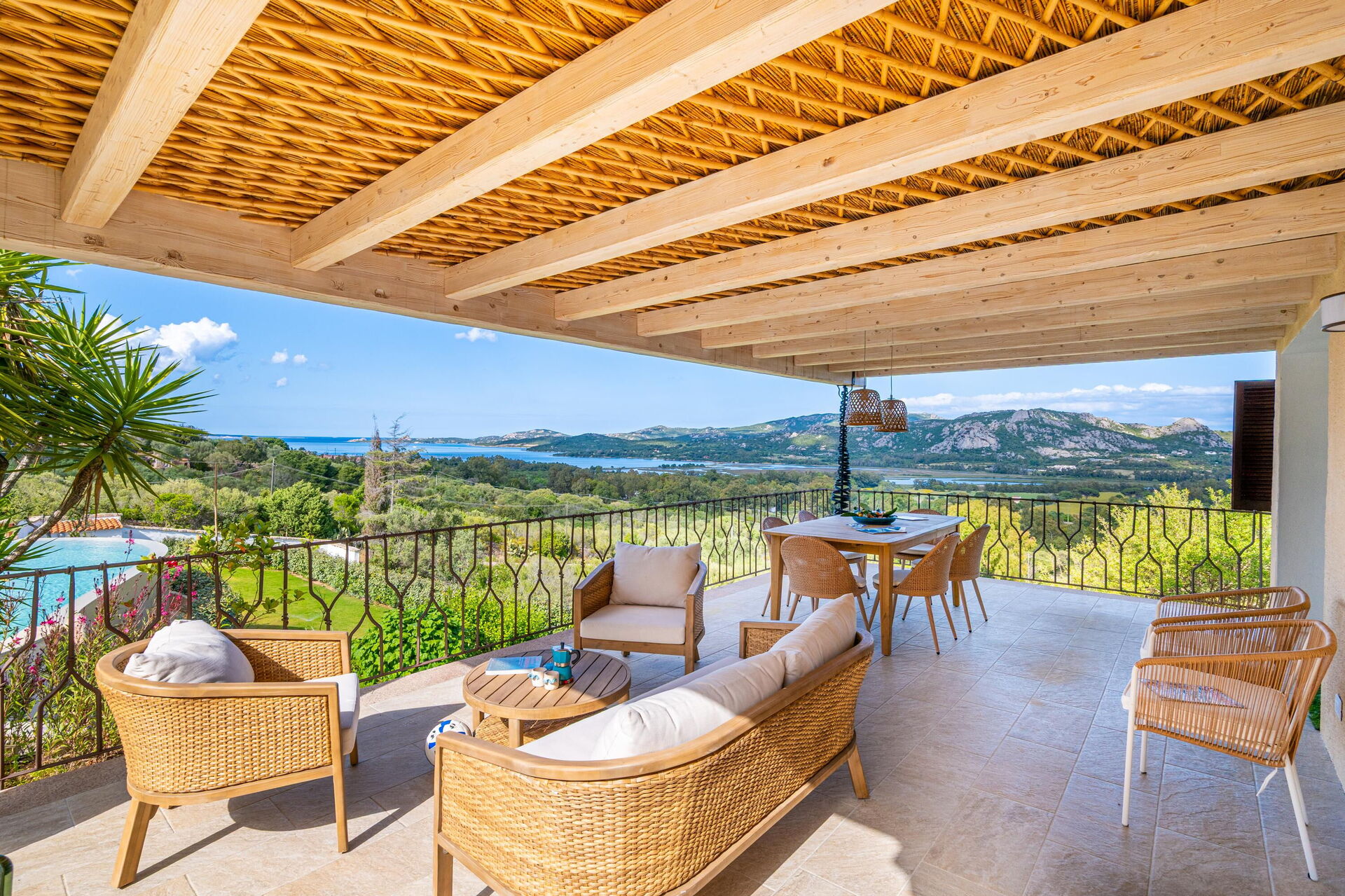 På uteområdet er det mange naturskjønne steder hvor du kan slappe av sammen med familie eller venner, fra terrassen med spisebord og stoler, til det store bassengområdet med havutsikt – perfekt for uforglemmelige øyeblikk under solen på Sardinia.