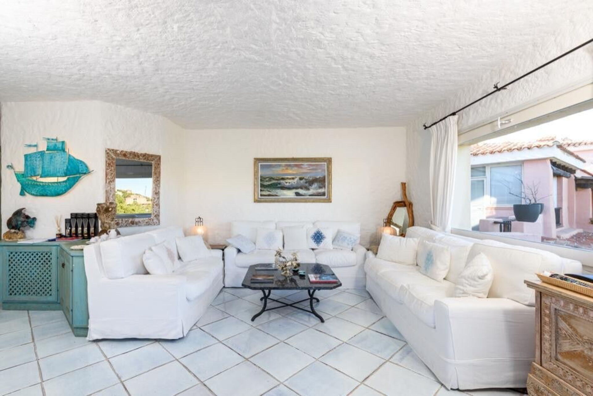 Avstander: Sentrum av Porto Cervo (butikker, elegante butikker, restauranter av alle slag) 400 m, Havet (Giglio-stranden) 2. 3 km, Pevero (golfklubb) 7 km, Porto Rotondo 27 km, Olbia (flyplass og fergeforbindelser til Genova, Livorno, Piombino og Civitavecchia) 29 km, Palau 30 km, Golfo Aranci (havn med fergeforbindelser til Genova, Livorno, Piombino og Nice) 31 km, Porto Rafael 31 km, Santa Teresa di Gallura 54 km, San Teodoro 60 km, Stintino (La Pelosa strand) 158 km, Alghero 165 km