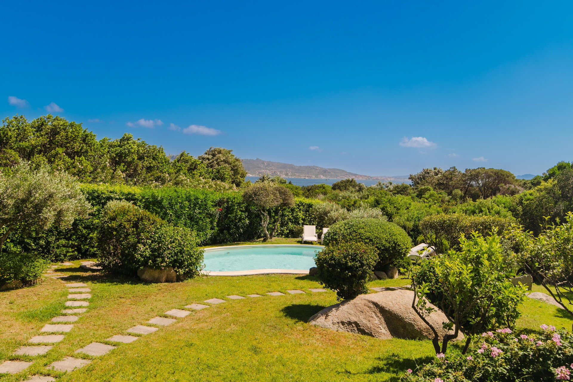Avstander: havet (Cala Inglese-stranden) 200 m, Porto Rafael (dagligvarebutikker) 250 m, Palau (butikker av alle slag) 4 km, havet (La Sciumara-stranden) 4 km, Arzachena 16 km, Santa Teresa di Gallura 26 km, San Pantaleo 27 km, Baja Sardinia 29 km, Pevero (golfklubb) 32 km, Porto Cervo 34 km, Olbia (flyplass og havn med ferger til Genova, Livorno, Piombino og Civitavecchia) 42 km, Porto Rotondo 43 km, Golfo Aranci (fergehavn til Genova, Livorno, Piombino og Nice) 49 km, San Teodoro 70 km, Stintino (La Pelosa-stranden) 146 km.