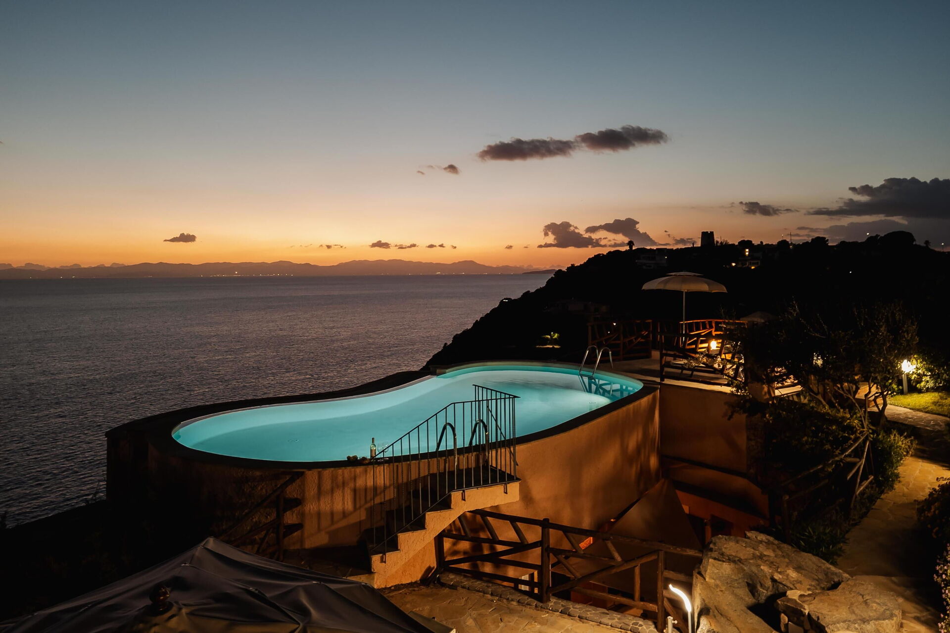 Villa Atlantide er helt unik: den er bygget i en åsside som skråner ned mot havet. Feriehuset har 5 soverom og har god plass til opptil 10 personer. På uteområdet er det flere terrasser, alle med praktfull utsikt over det blå havet, og én av dem har et privat basseng.