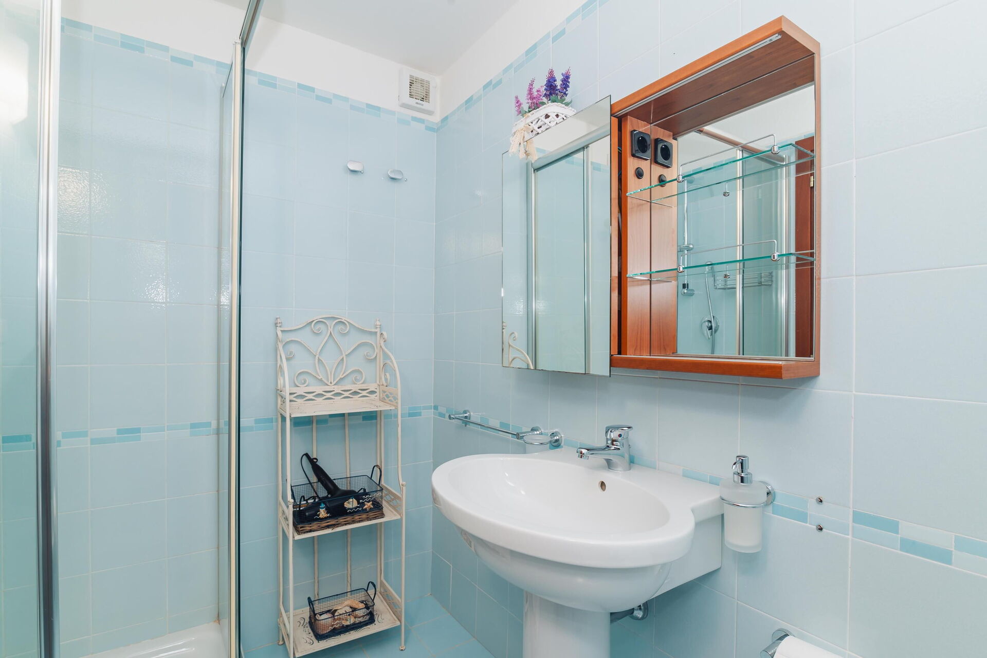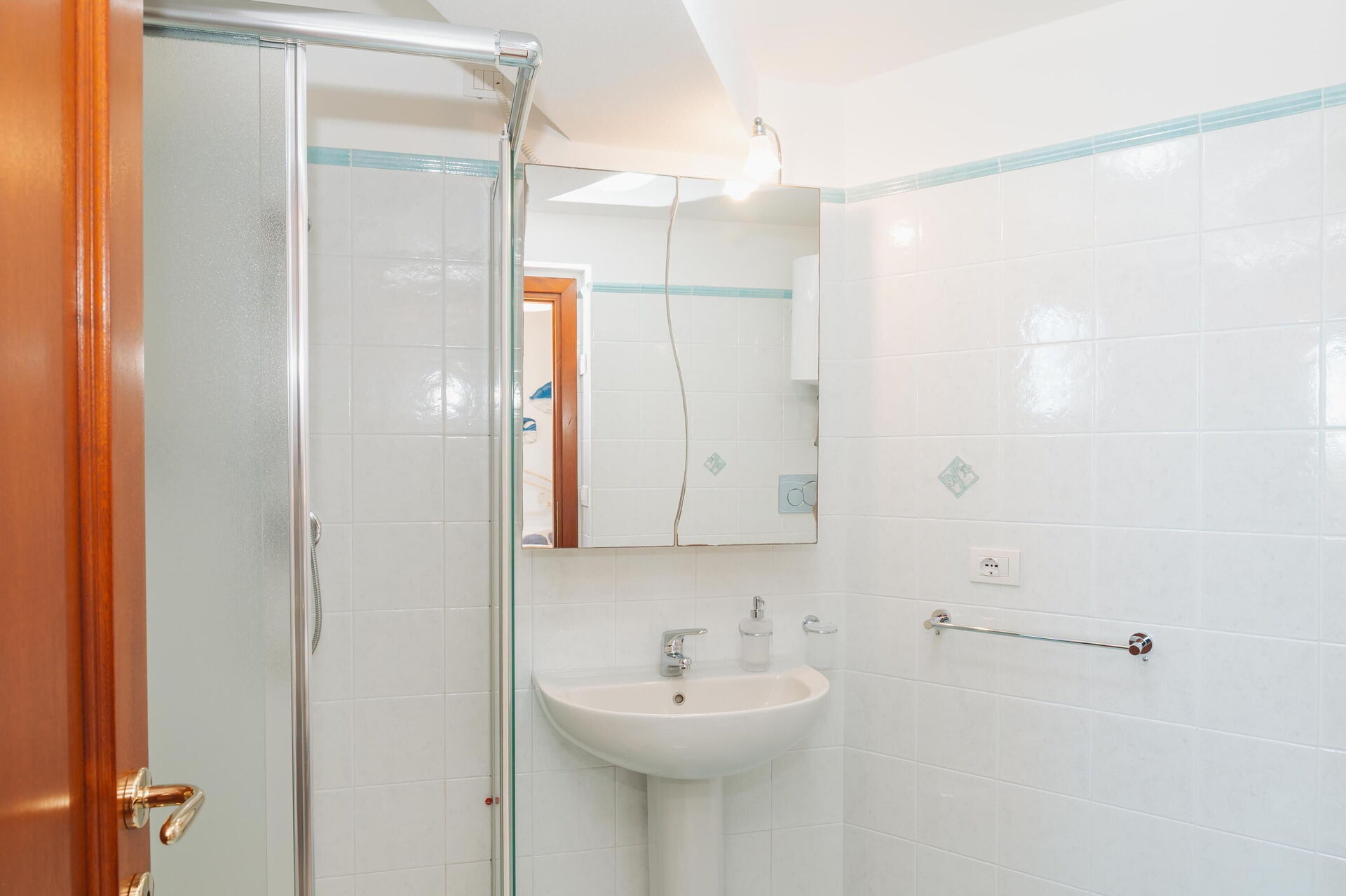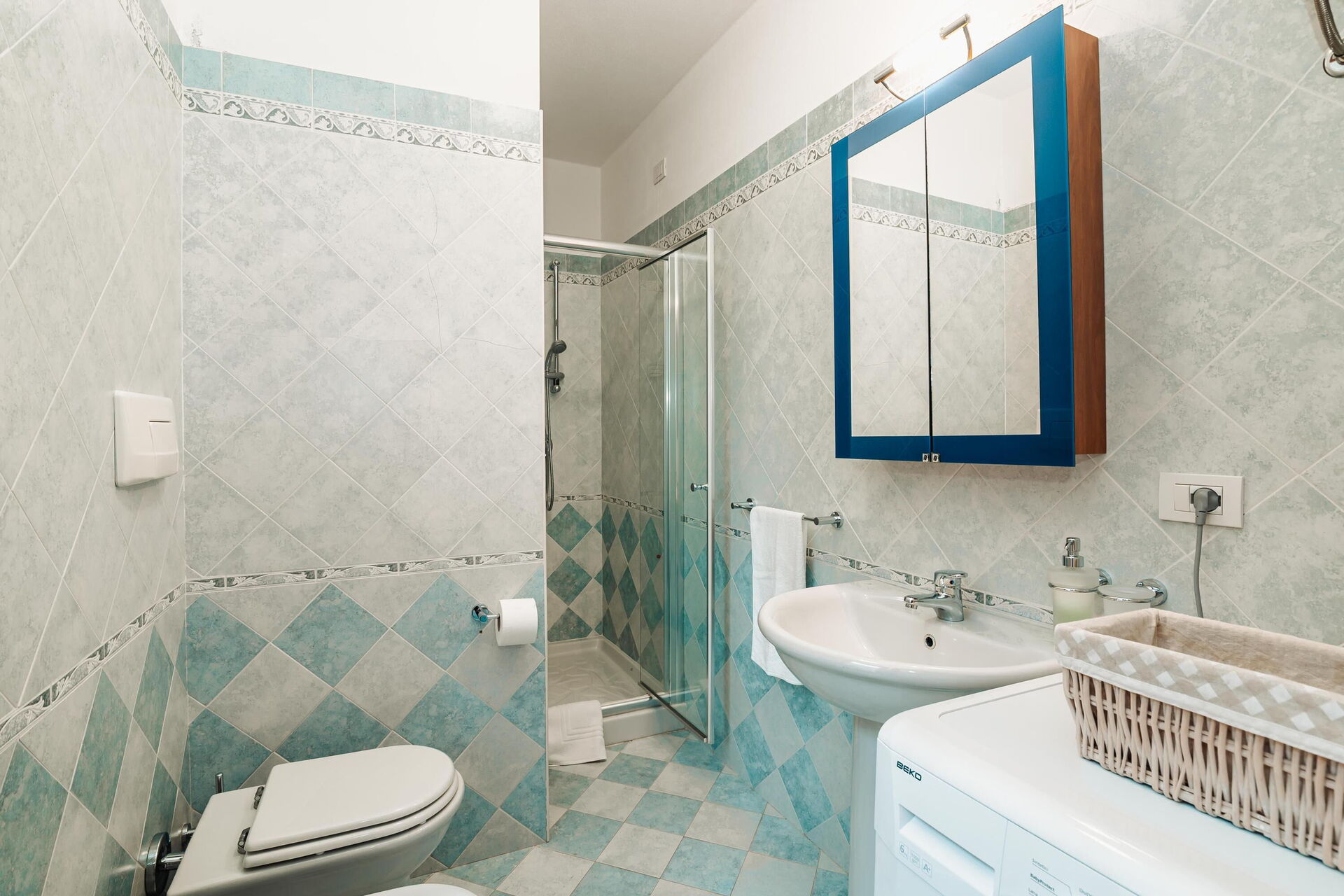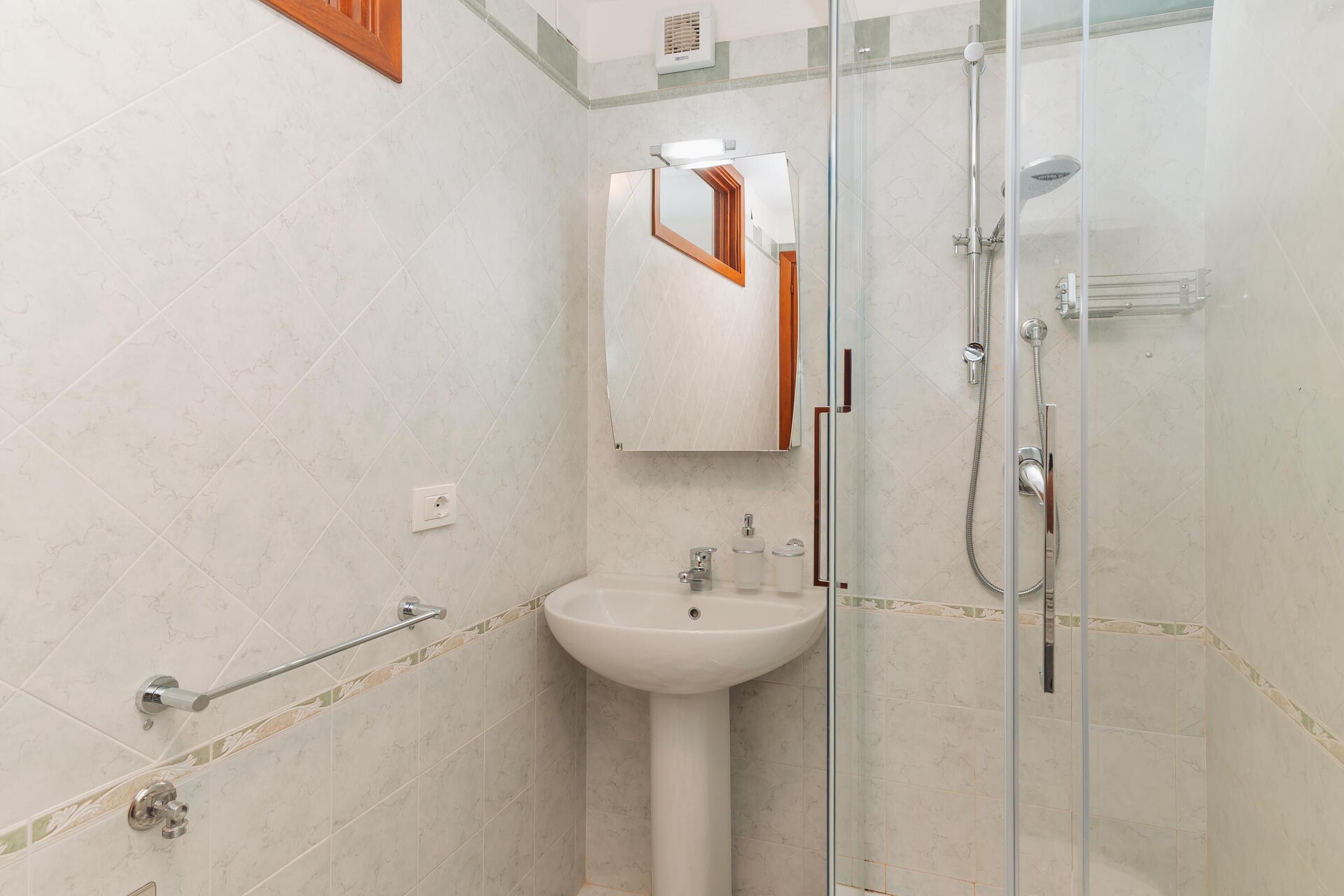 4 trinn opp: spisestue (aircondition), kjøkken (koketopp, stekeovn, kjøleskap, fryser, oppvaskmaskin, mikrobølgeovn, espressomaskin, brødrister), bad med dusj (vaskemaskin), dobbeltrom (aircondition) med utgang til uteområdet, bad med dusj.