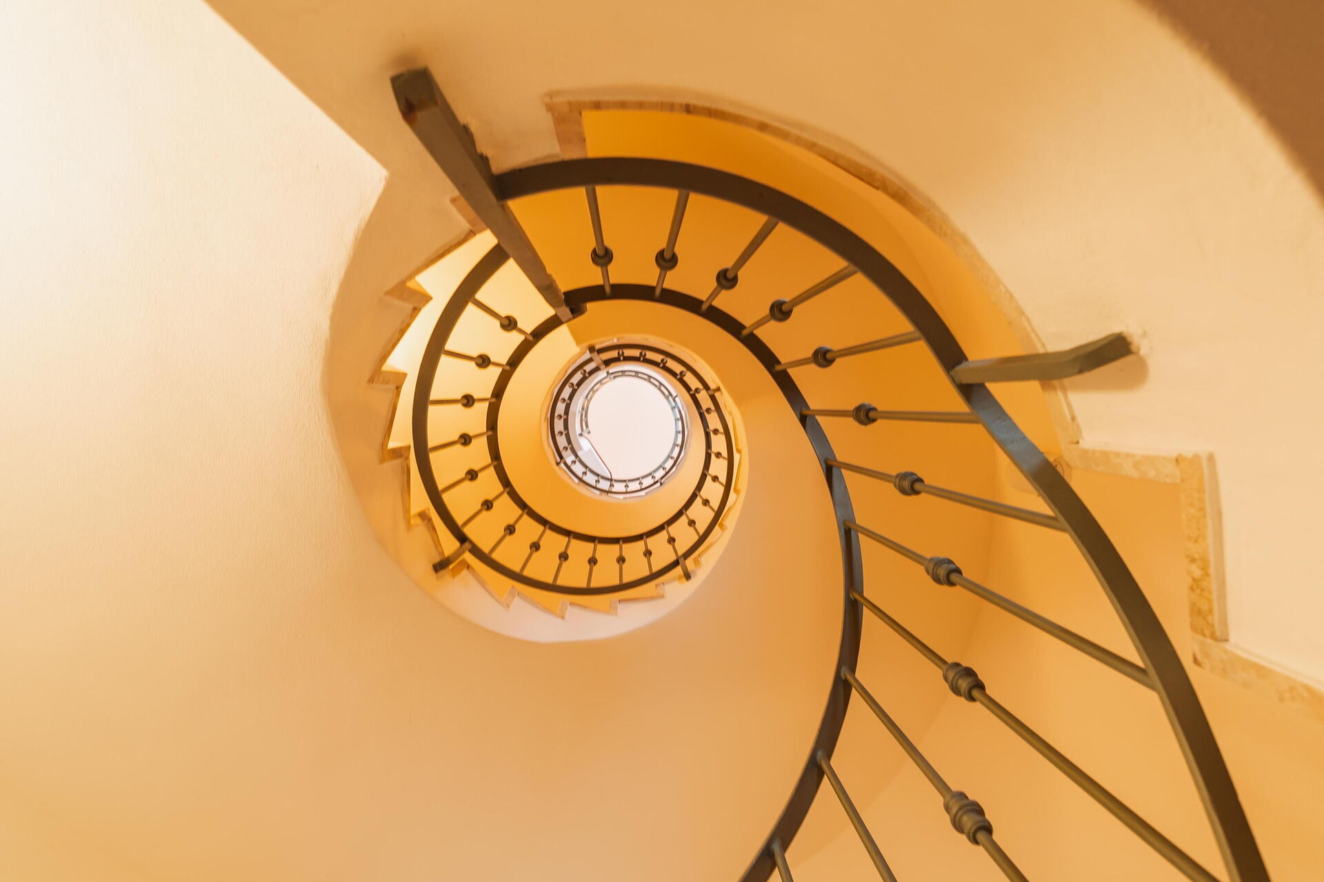 Alle etasjene er forbundet innvendig via en spiraltrapp.