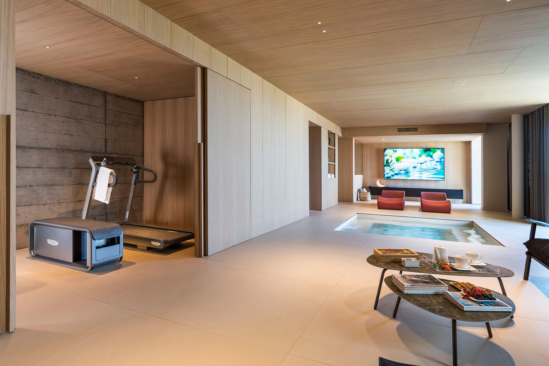 - treningsområde og velværeområde med boblebad (2,70 x 2,70 meter; minimum dybde: 0,40 meter; maksimum dybde: 0,90 meter; plass til 8 personer), badstue, dampbad, multisensorisk dusj