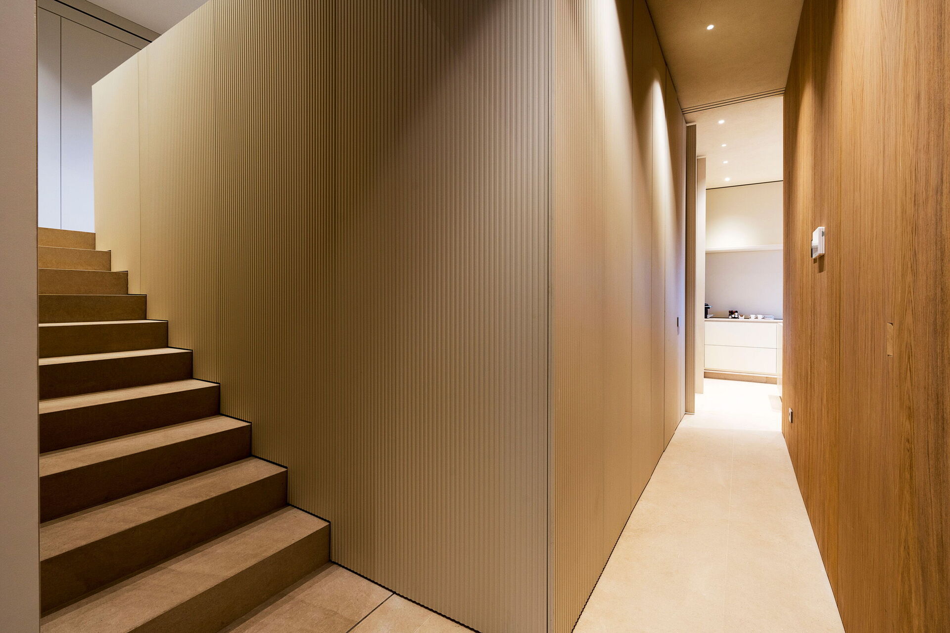 Hevet første etasje: romslig, lys stue med store vinduer, bestående av en stue (smart-TV) med spiseplass med utendørs tilgang, kjøkken (komfyr, ovn, kjøleskap, fryser, oppvaskmaskin, mikrobølgeovn, brødrister, espressomaskin, amerikansk kaffetrakter, brødrister), wc, vaskerom.
