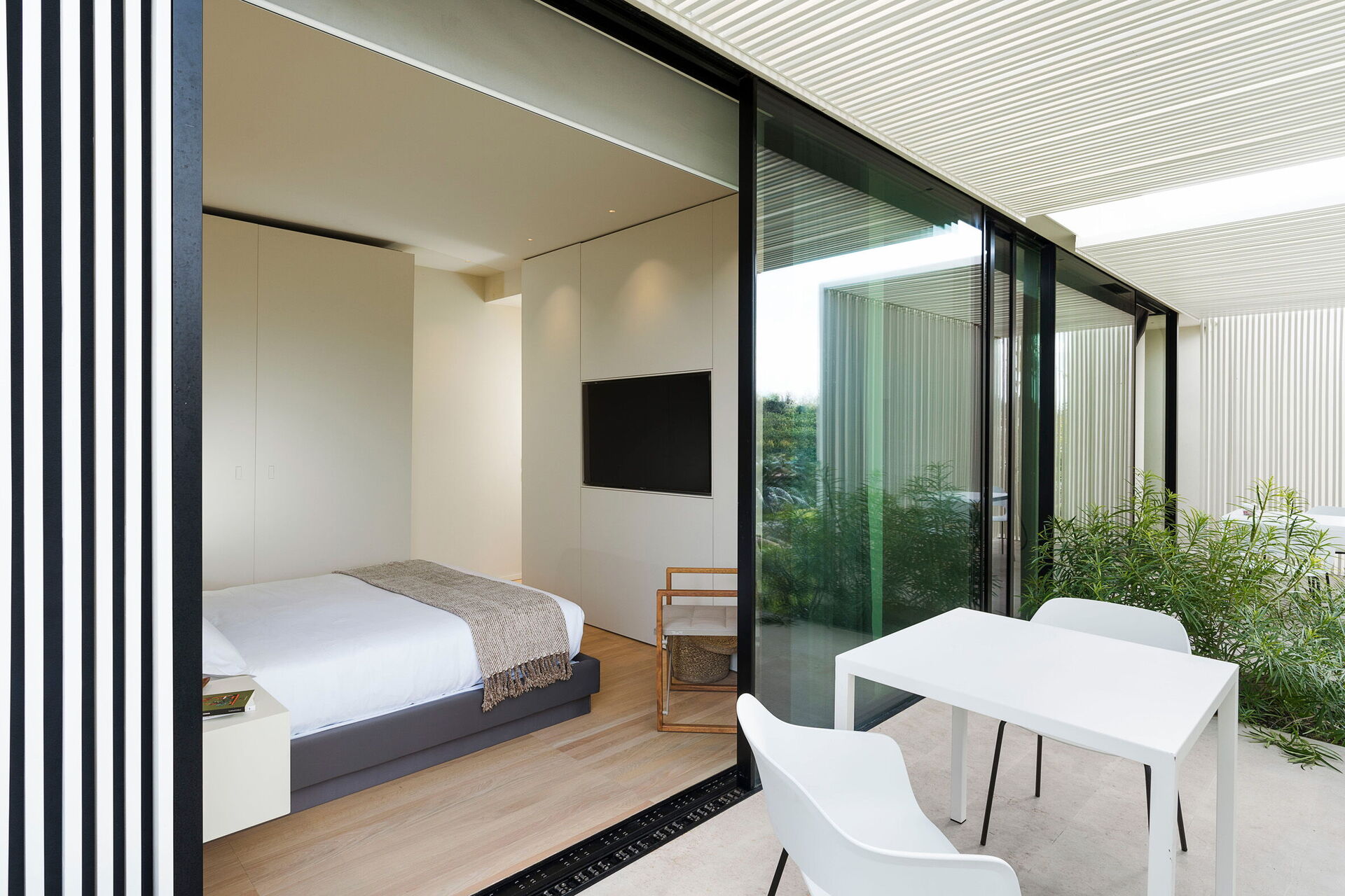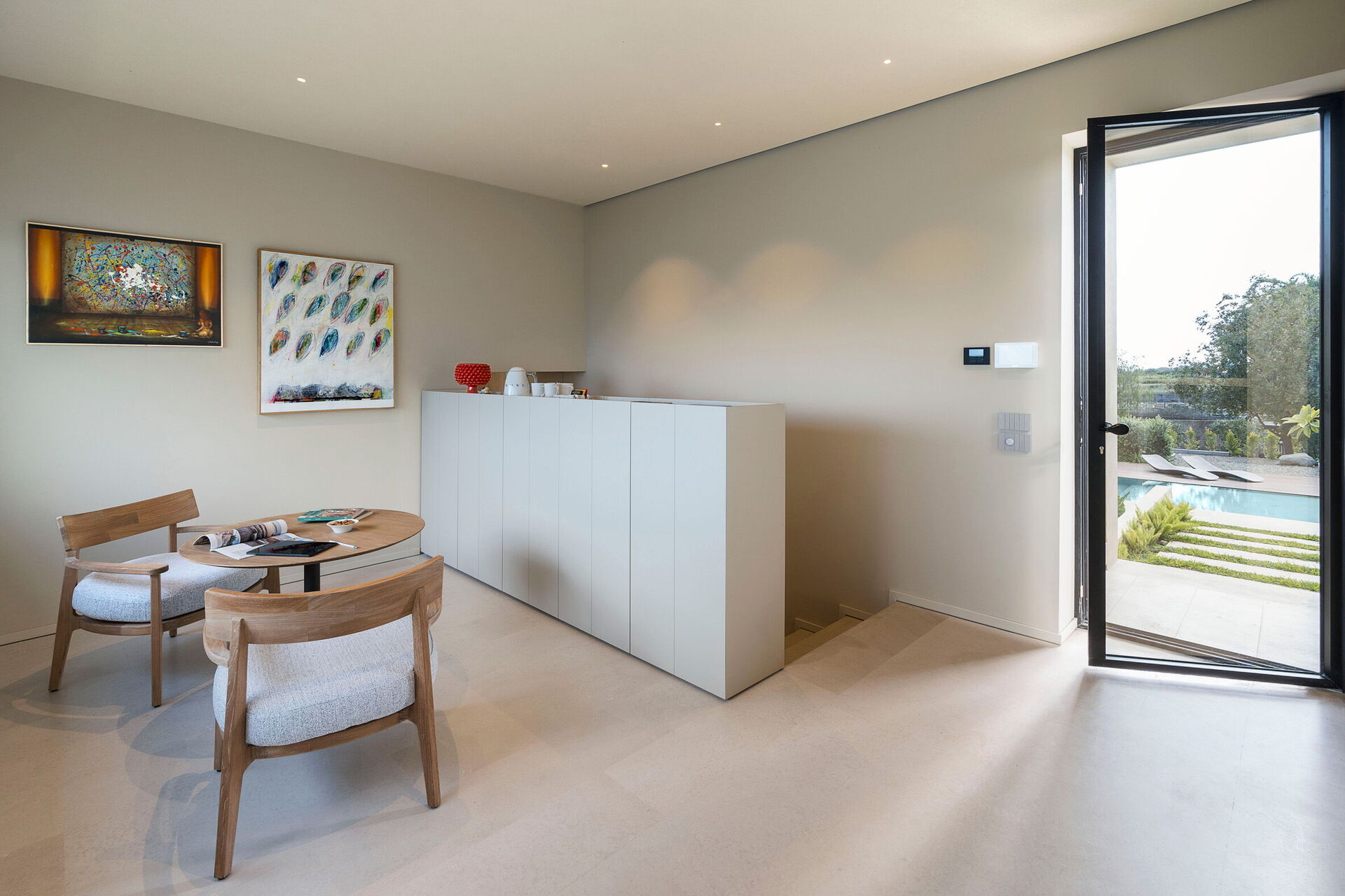 I et anneks på en privat del av eiendommen bor et ungt par som diskret tar seg av vedlikehold av huset, bassenget og hagen med stor profesjonalitet. De har adgang til eiendommen via en sekundær port og benytter aldri hagen, bassenget eller de ulike utendørsområdene, som er eksklusivt til gjestenes bruk!