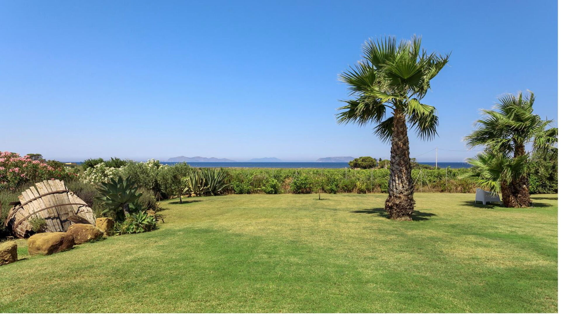 - Terrasse med utsikt over havet, Egadi-øyene og vingården