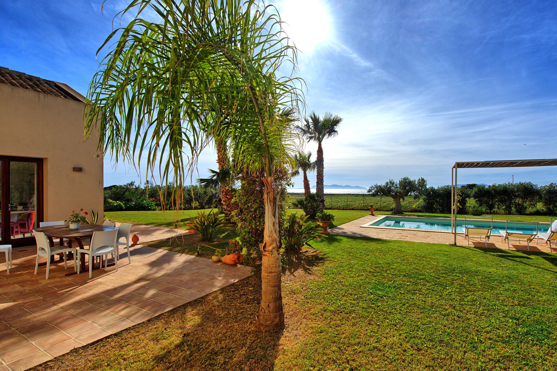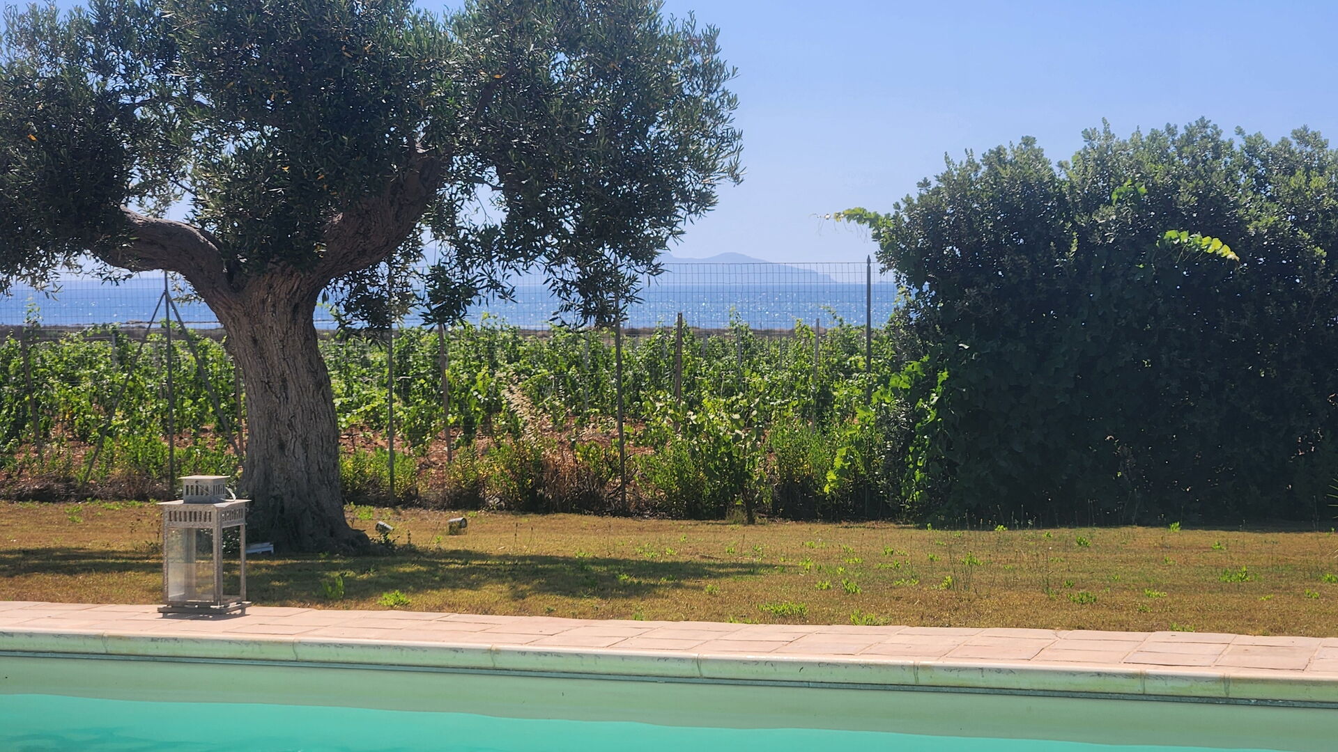 Feriehuset har nydelig panorama-havutsikt fra bassenget og de romslige terrassene, og ikke minst mot nabotomta som er en vingård.