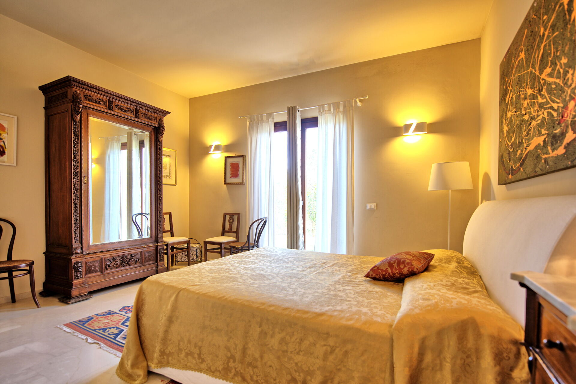 Villa Casale er en nylig renovert 1800-tallsresidens fordelt over to etasjer med 5 soverom med private bad, og har plass til opptil 10 personer. Huset er innredet med eleganse med moderne kunst, marmorgulv og moderne møbler, og hagen har flere fellesområder, et stort basseng med bassengdekk med solsenger og et idyllisk spiseområde.