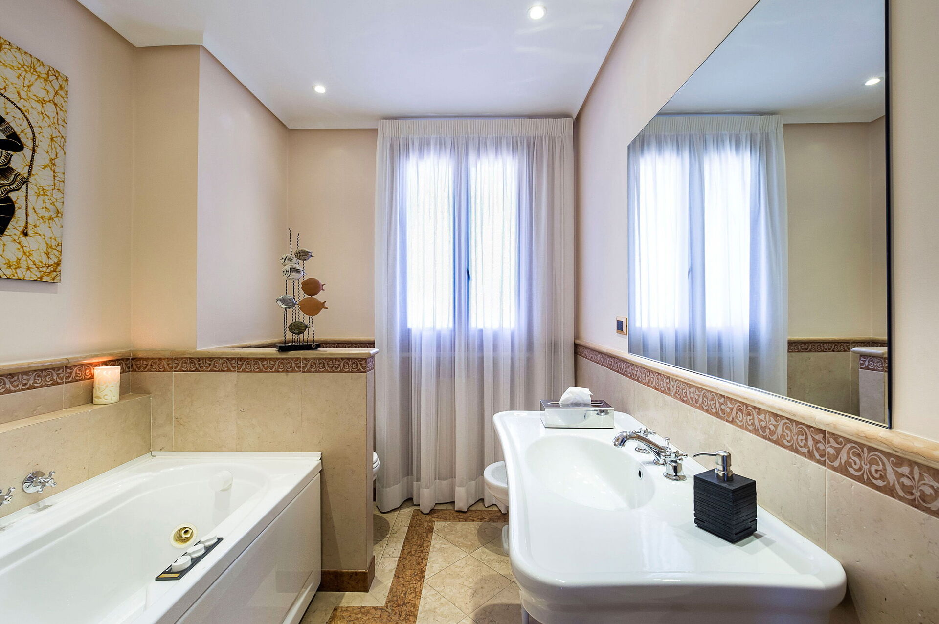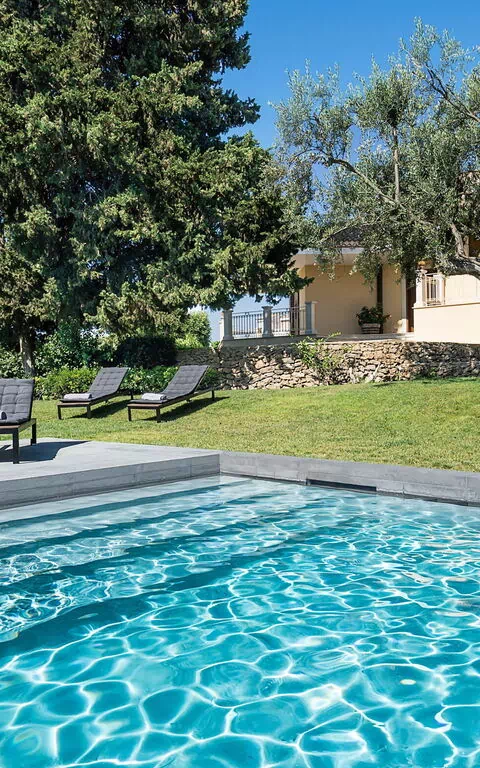 En steinlagt sti fører deg til Villa Profumo d’Oriente, som ligger omgitt av en pen hage med middelhavsplanter. Her finner du et basseng som kan varmes opp til ca. 26 °C – det perfekte stedet for å koble av på solrike dager i Italia sammen med familie eller venner.