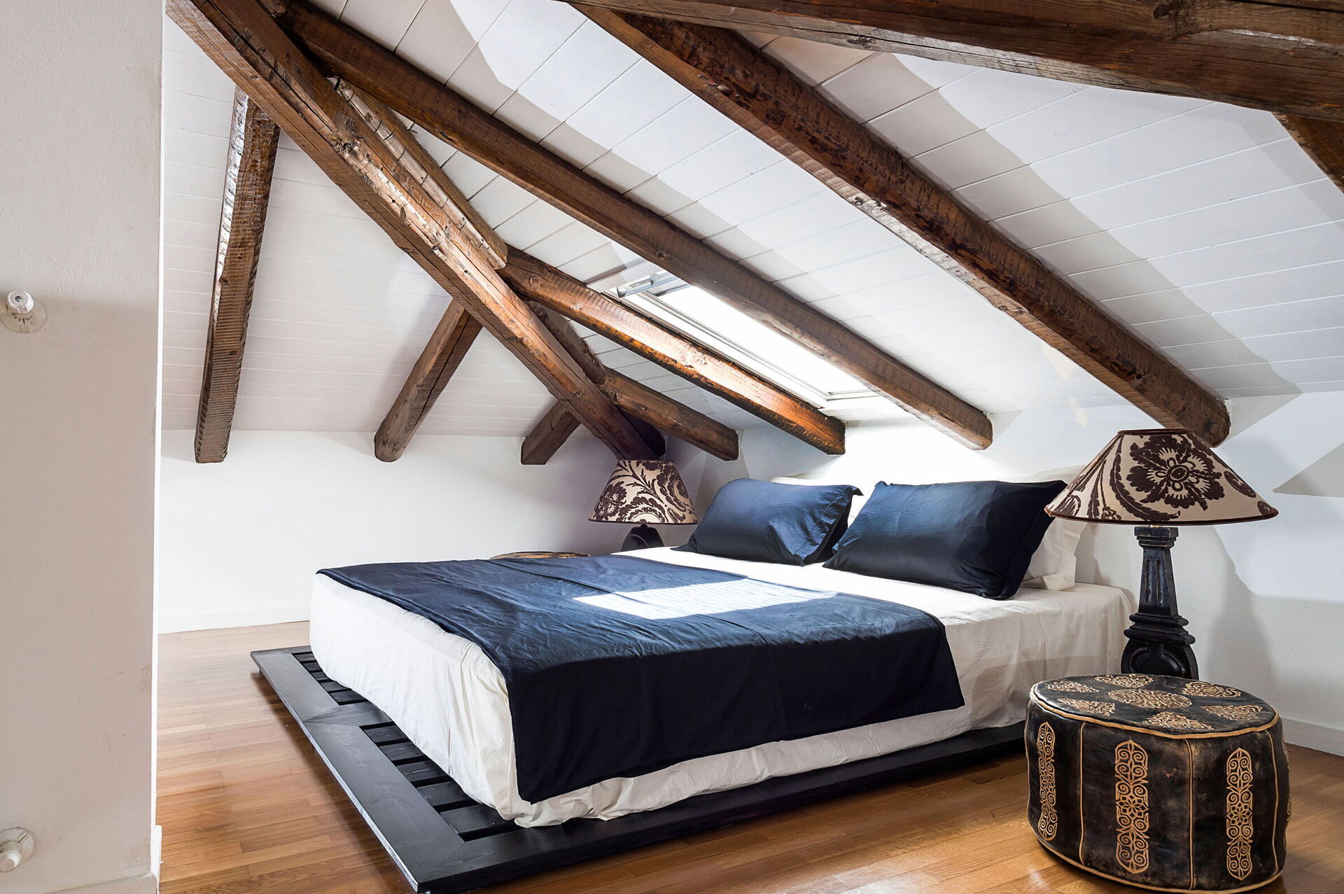 Andre etasje (loft): dobbeltrom, bad med badekar.
