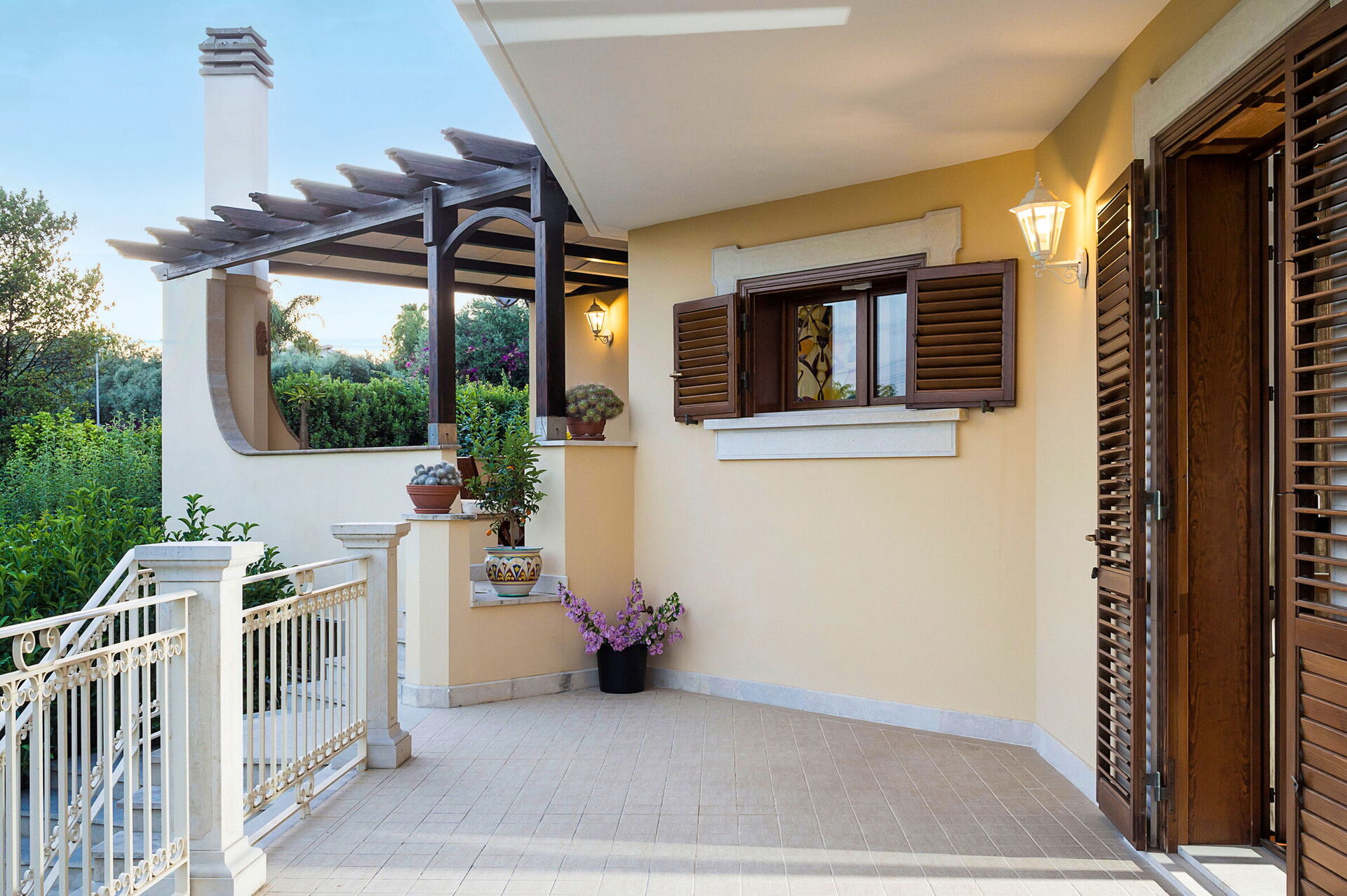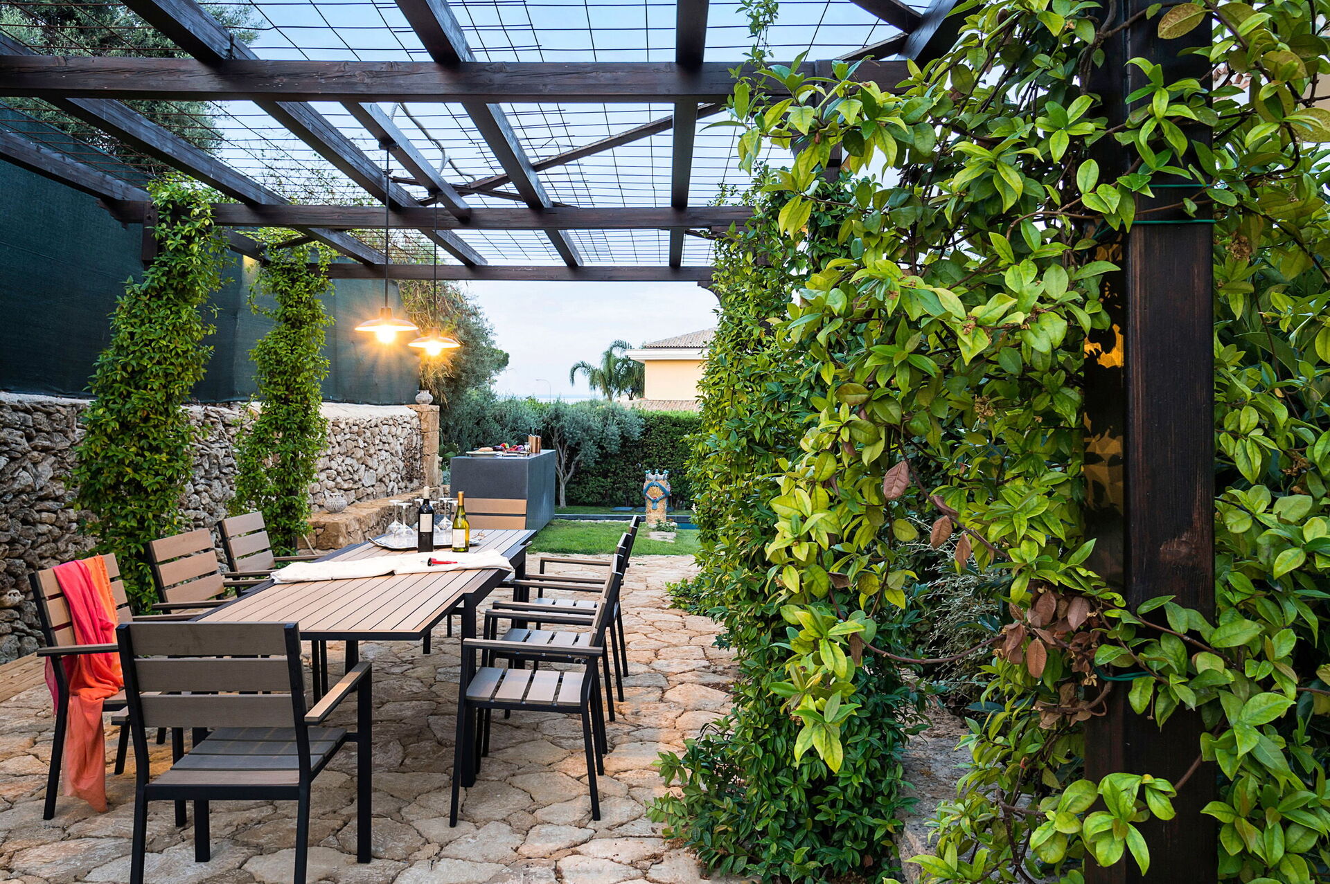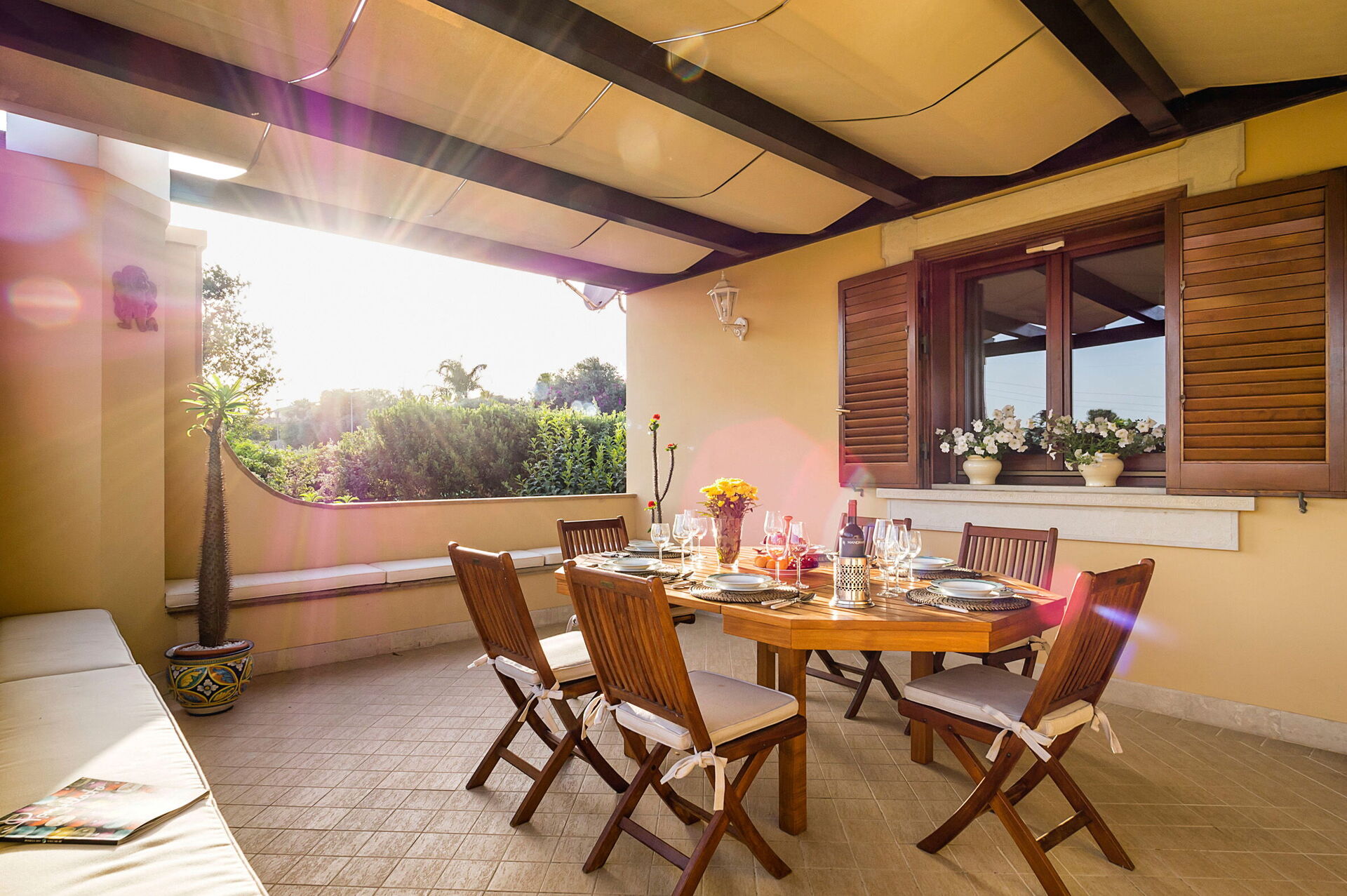 Feriehuset har også en stor veranda med grill, hvor du kan slappe av og nyte et utendørs måltid under en helt unik ferie på Sicilia.