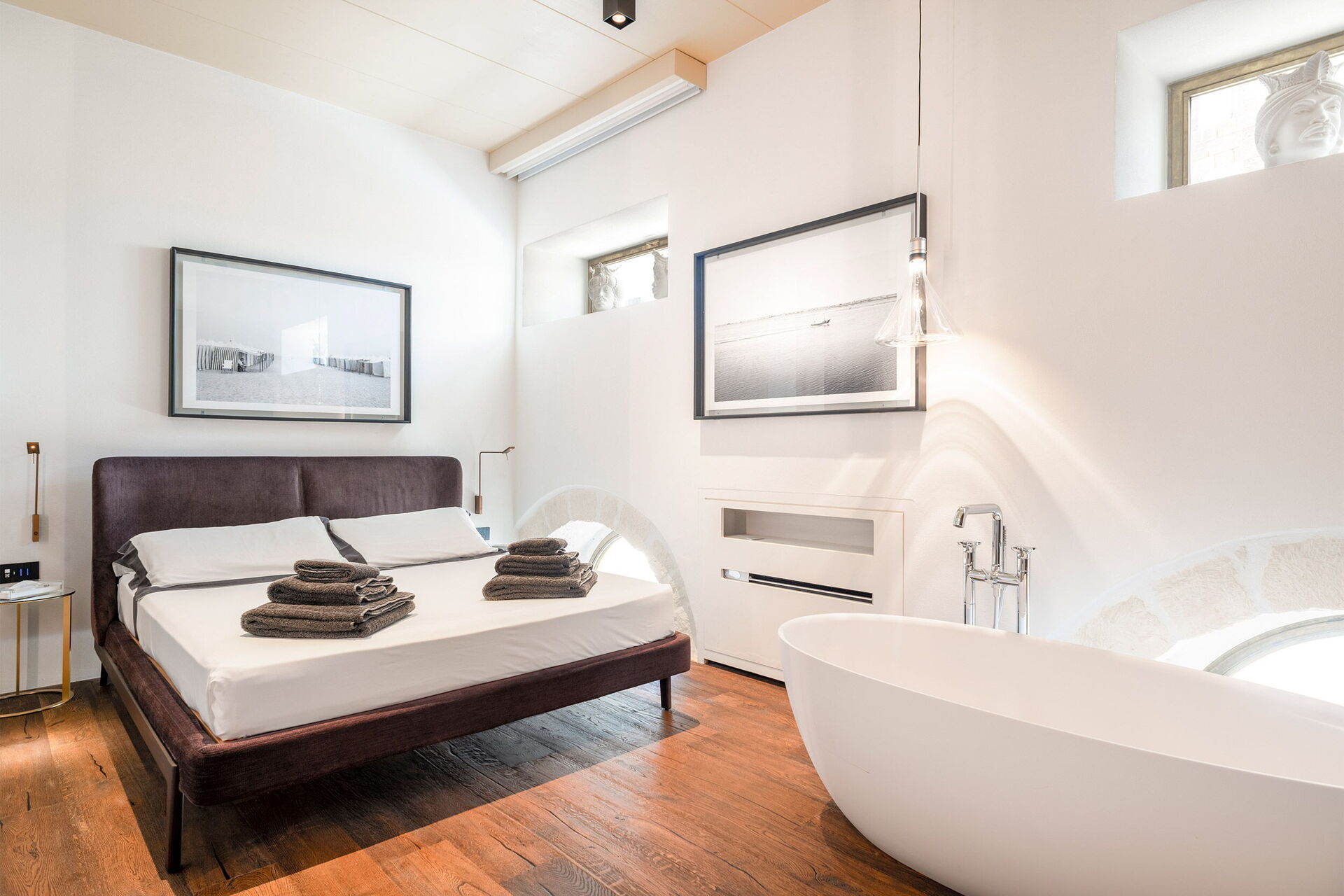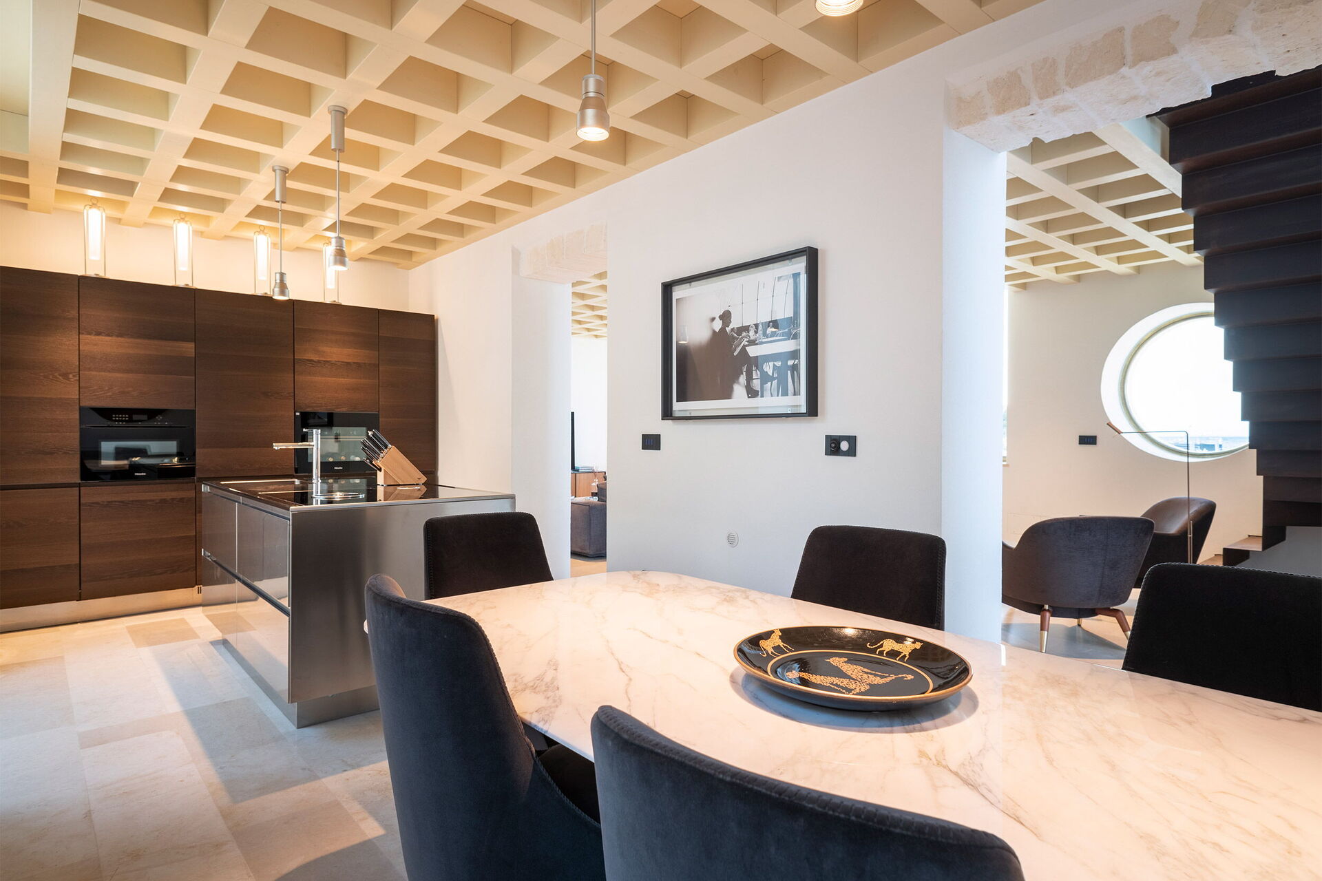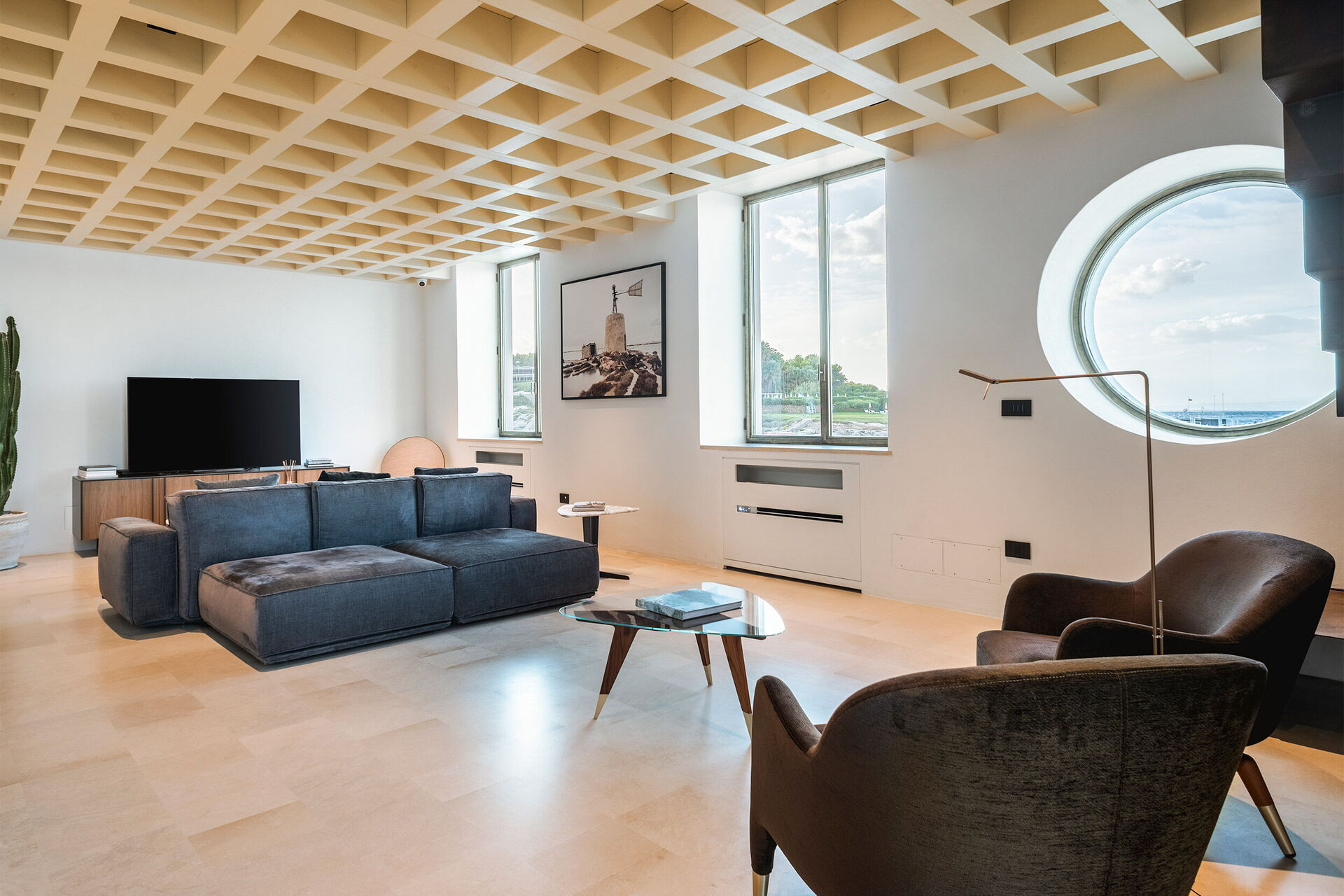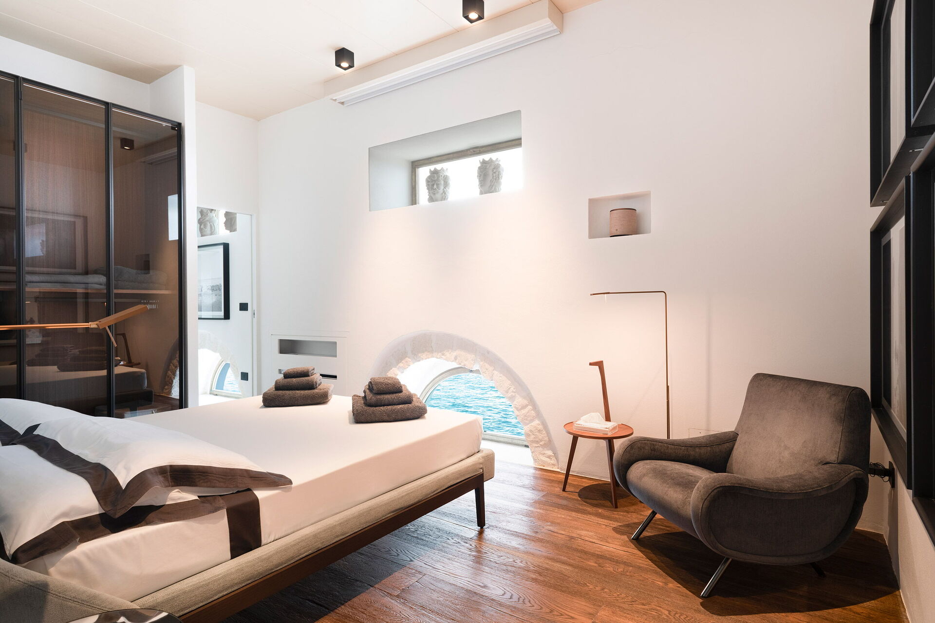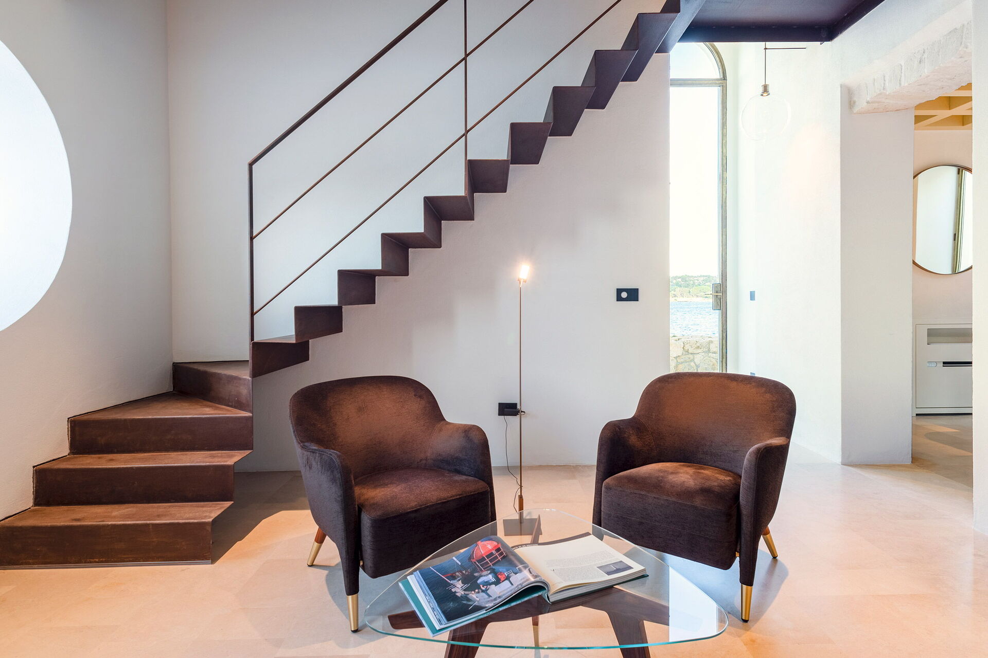 Denne eksklusive eiendommen ligger på klippene med utsikt over havet i Brucoli på Sicilias østkyst med en møblert, naturskjønn takterrasse som kan nås via en utendørstrapp, akkurat slik fyrvokteren brukte før i tiden.