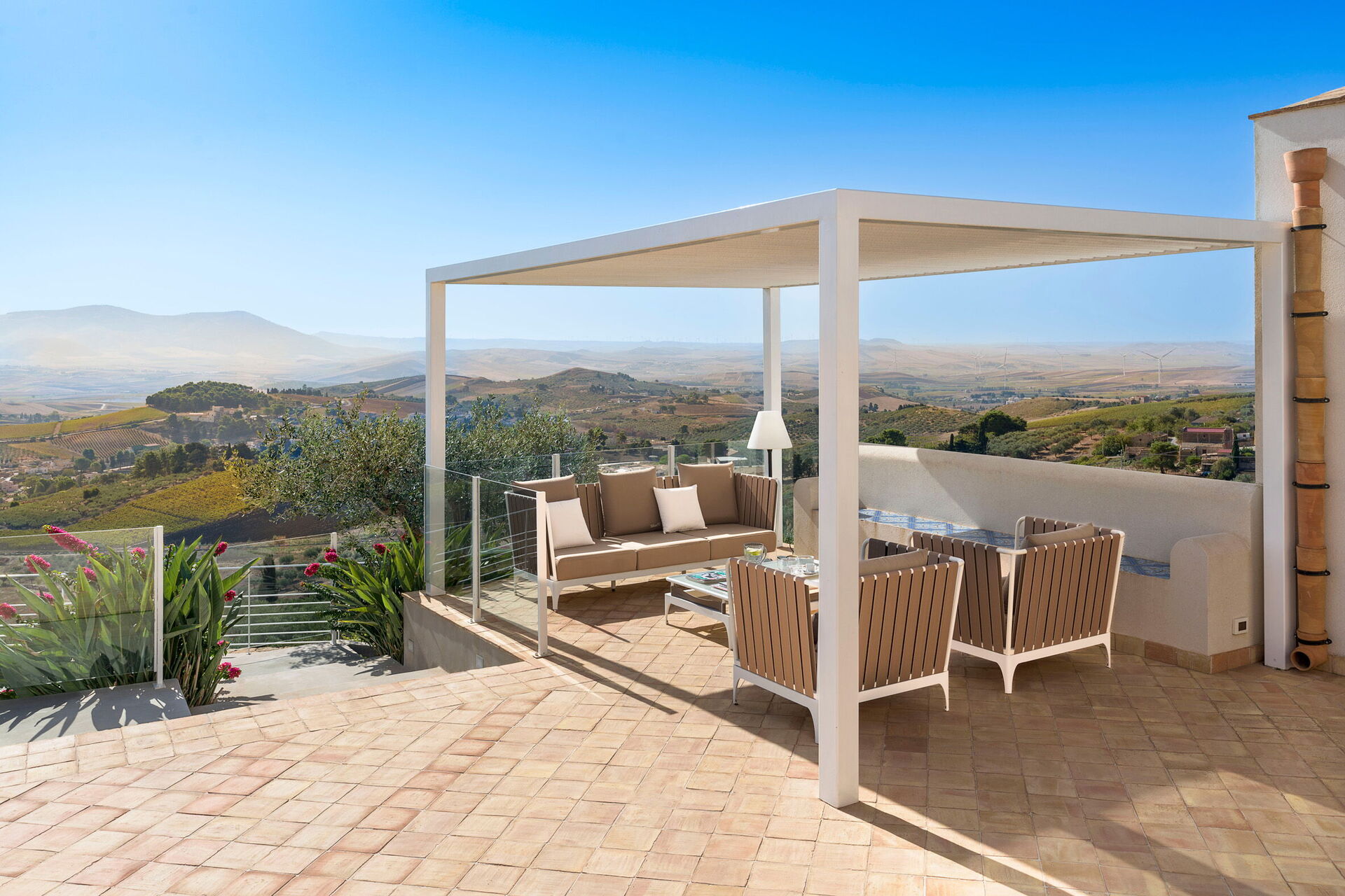 Luksusvilla med privat basseng og fantastisk panoramautsikt på landsbygda i nærheten av vakre Trapani, på nord-vest spissen av Sicilia. Villa Tangi ligger i meget vakre omgivelser innrammet av myke bølgende åser og frodige daler. Huset er omgitt av en velstelt hage. På uteområdet er finner man et «infinity»-basseng og store solrike terrasser. Eiendommen er bygget ved med naturlige materialer i tråd med lokal tradisjonell arkitektur, og tilpasser seg elegant omgivelsene. Interiøret er gjennomtenkt og er koselig, med lyse flater og utstyrt med alle moderne bekvemmeligheter. Innredningen er en smakfull blanding av moderne og gamle familie møbler. Huset har fire komfortable soverom og fire bad, et velutstyrt kjøkken, spisestue og en romslig stue med peis. Huset er ideelt for flere familier eller vennegrupper. Eiendommen er et ypperlig utganspunkt for å utforske den sjarmerende provinsen Trapani: fra de vakre strendene i Cornino, Makari og San Vito Lo Capo til Zingaro naturreservatet, fra middelalderlandsbyen Erice til templene i Segesta og Selinunte og fra de livlige historiske sentrene i Trapani og Marsala til de gamle saltverket med sine vindmøller og Egadiøyene.