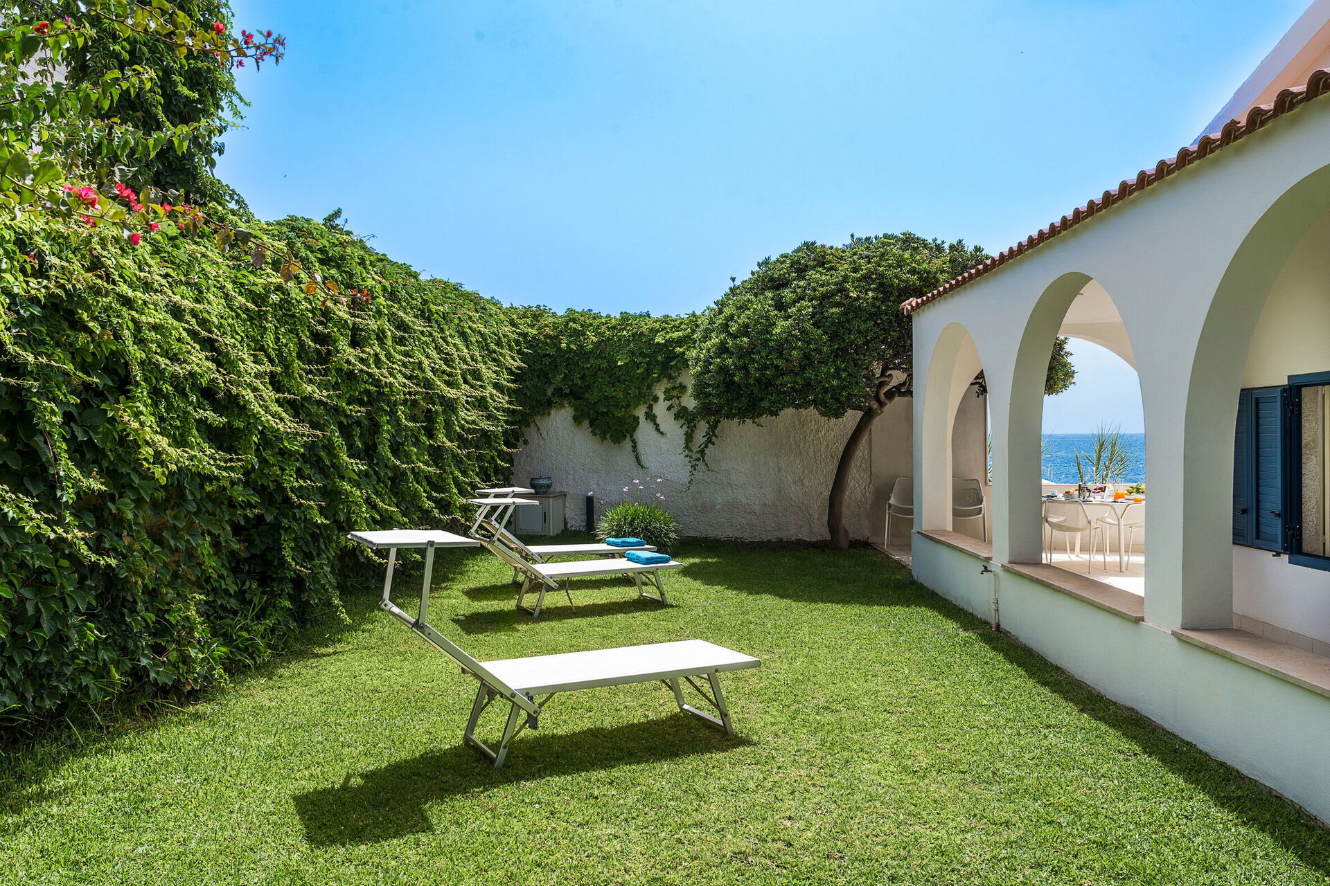 Nylig oppusset, med moderne møbler og over en etasje, 3 soverom og 3 bad, så er det plass til opptil 6 personer. Feriehusets uteplass under buene er perfekt for godt selskap og god mat, mens den flotte utsikten over havet nytes!