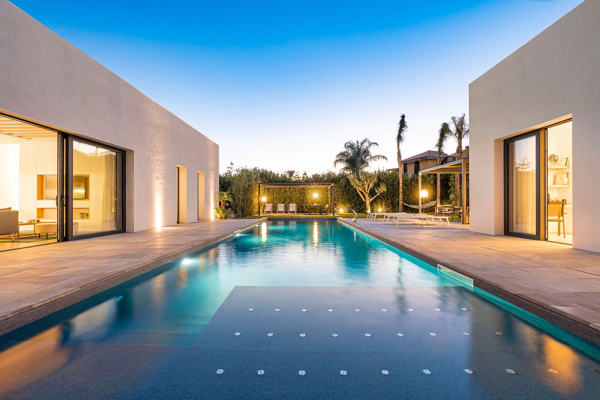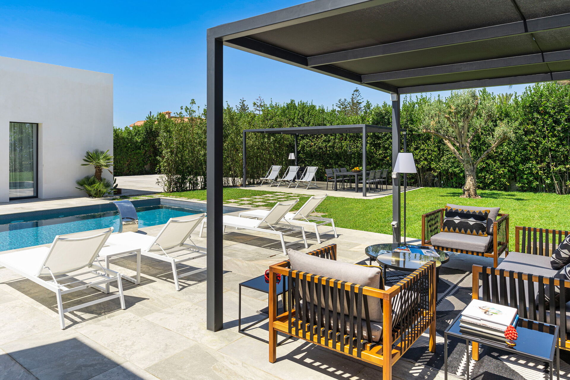 Villaen er moderne innredet med moderne designmøbler og på uteområdet er det pent møblerte terrasser for en uforglemmelig, avslappende opplevelse.