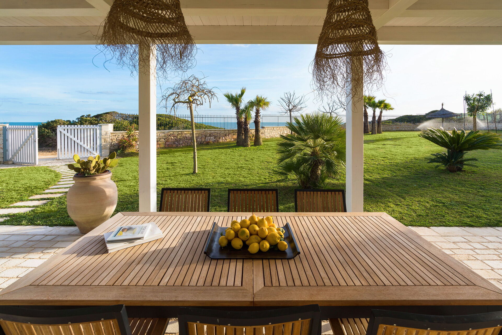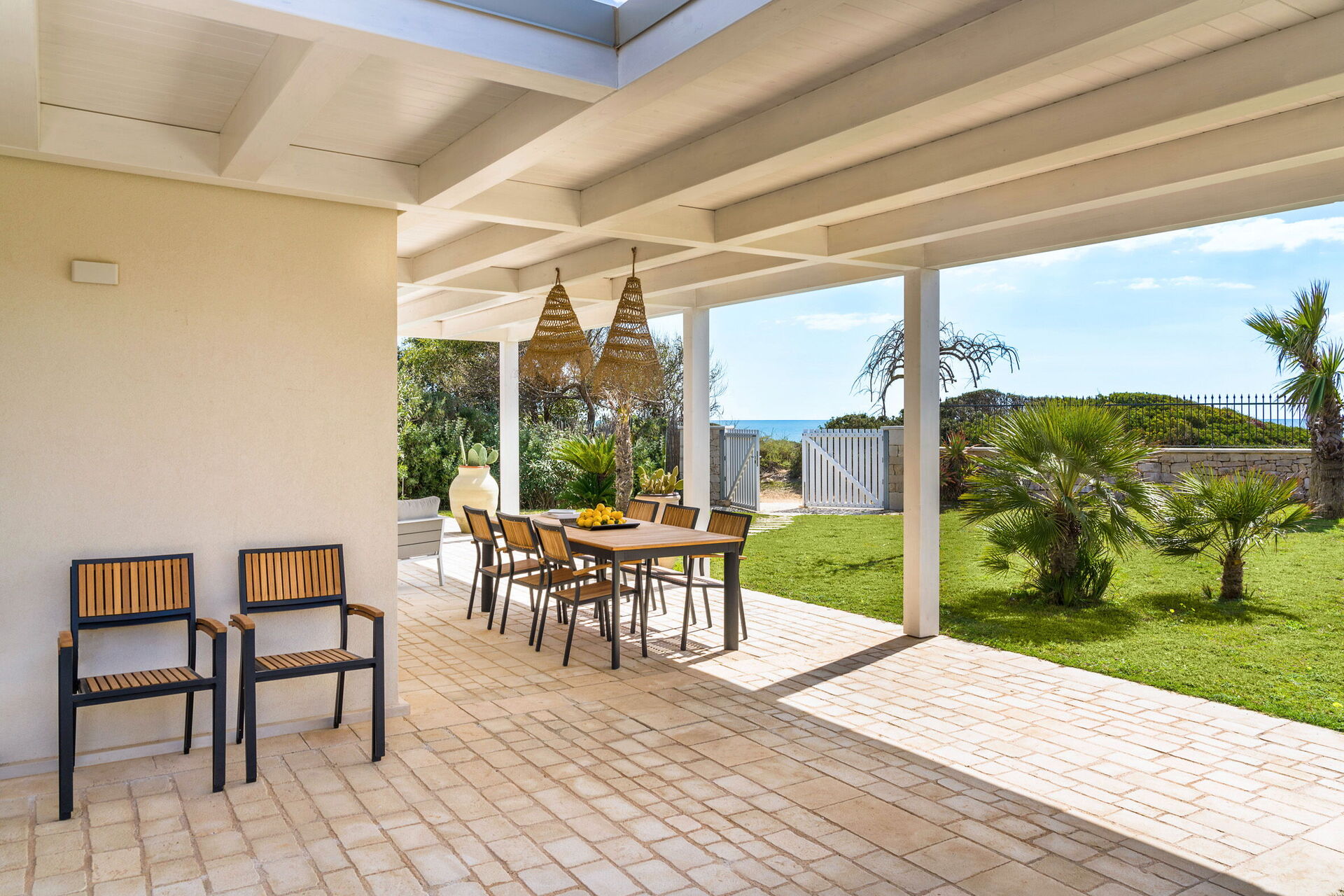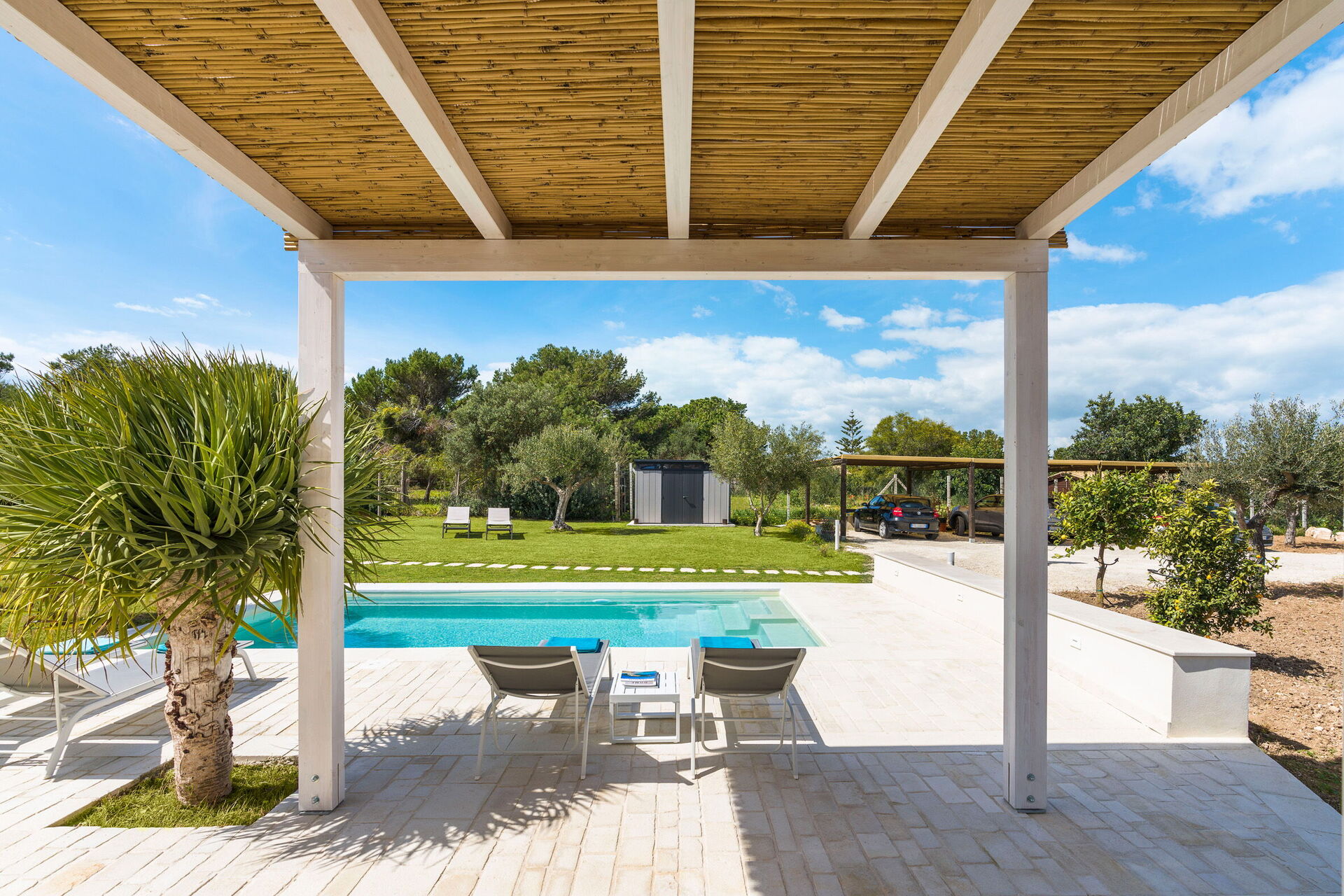 Uteområdene med panoramautsikt byr på flere områder som lar gjestene nyte et hyggelig opphold med familie eller venner. Her kan man slappe av på verandaen som er utstyrt for utendørs måltider eller i det store bassengområdet med solterrasse, perfekt for å nyte solen på Sicilia.
